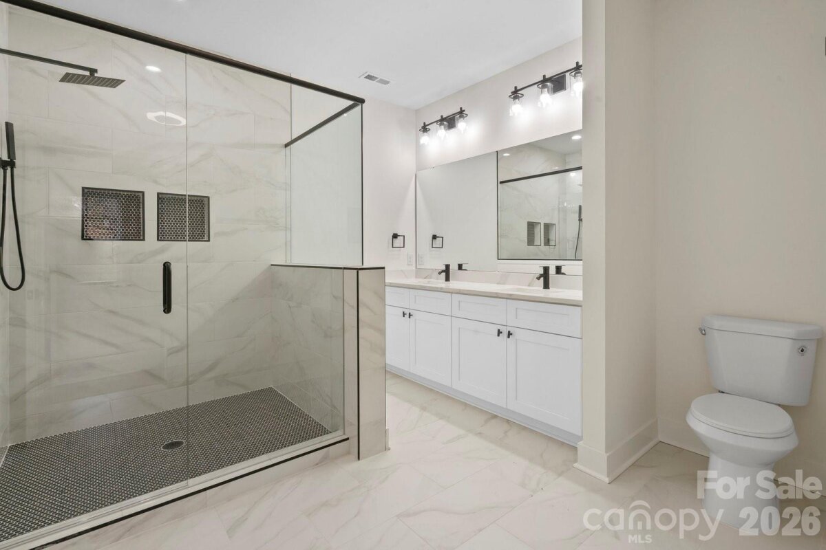 Welcome to your private dream home—where space, style, and versatility come together on over .83 acres with no HOA! This home offers the best of both worlds: the luxury and peace of mind of new construction with the freedom of a spacious place. The first floor is well-appointed with a Mahogany front door equipped with smart Wi-Fi access, a dedicated office, and a guest suite featuring a private bath. The kitchen includes an amazing smart 5-burner electric range with Wi-Fi and Bluetooth connectivity, while the modern electric fireplace also features smart controls. Additionally, the property is ready for the future with a dedicated electric vehicle charging connection. Upstairs, you will find comfortable bedrooms that include walk-in closets, vanities and custom glass showers. Outside, the backyard features a porch and a pergola surrounded by beautiful trees and a small creek, creating a wonderful setting for making unforgettable moments with family and friends.