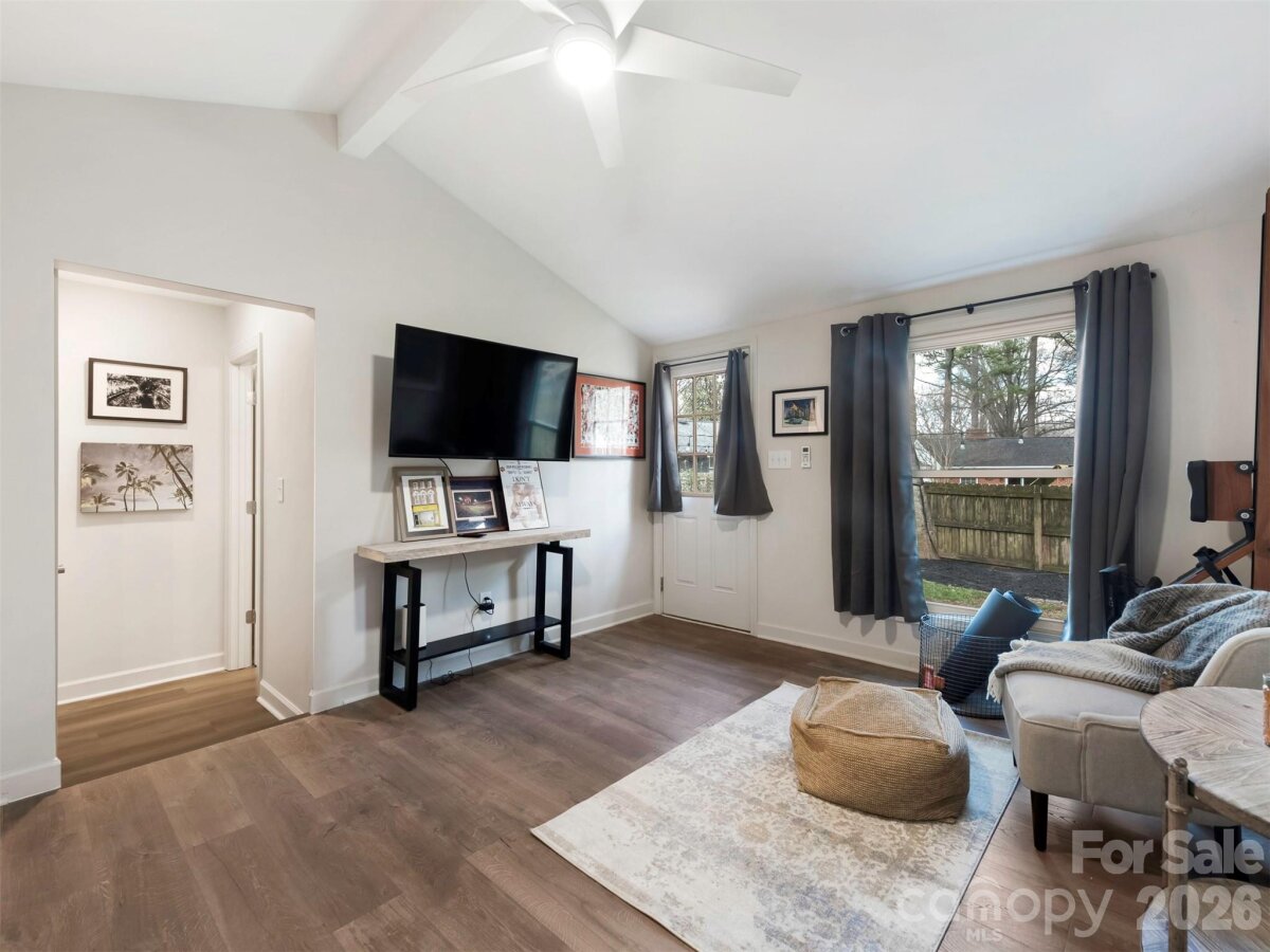 Completely renovated in 2021, this adorable 3-bedroom/2-bath house includes a guest suite with an additional bedroom and bath. Located alongside the 1-car garage, this private retreat offers additional space for entertaining, hosting guests, or a home office. Enjoy modern upgrades, including all-new appliances, updated electrical/plumbing, and high-end finishes, as well as hardwoods throughout. Parking is abundant, and the garage is a bonus. After relaxing in the bright sunroom, step outside, and enjoy the quaint backyard featuring a deck, fire pit area, and privacy fencing, which creates a secluded "oasis" feel, perfect for entertaining. New windows, doors, and hardware. New fixtures and Appliances.