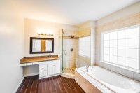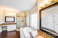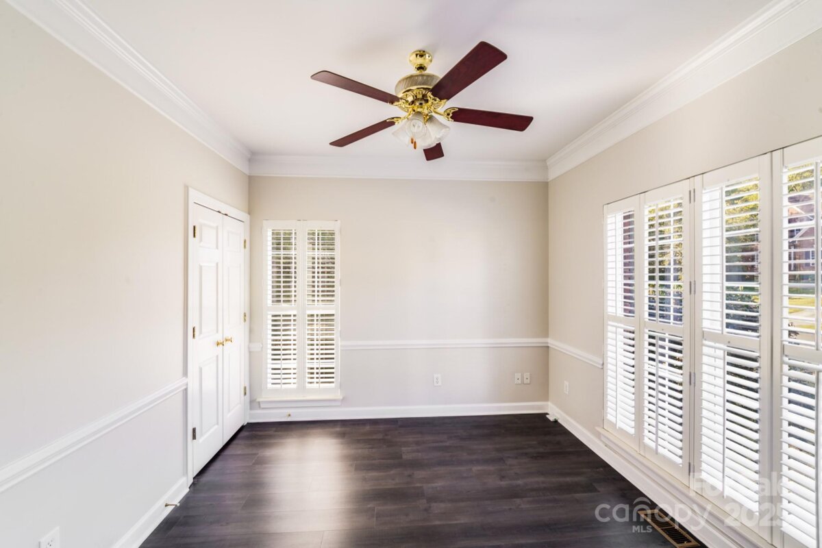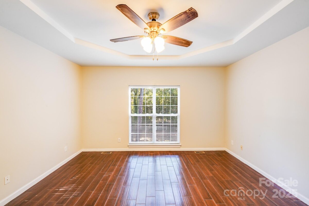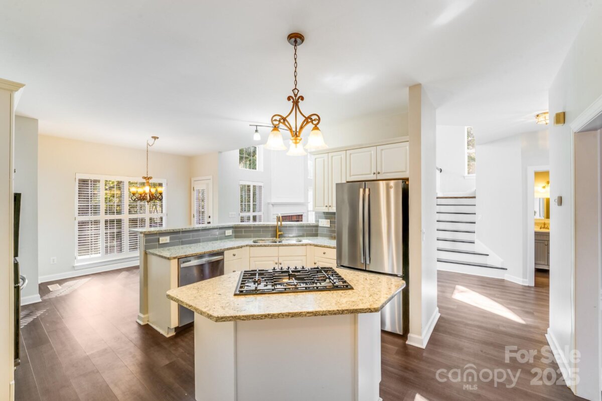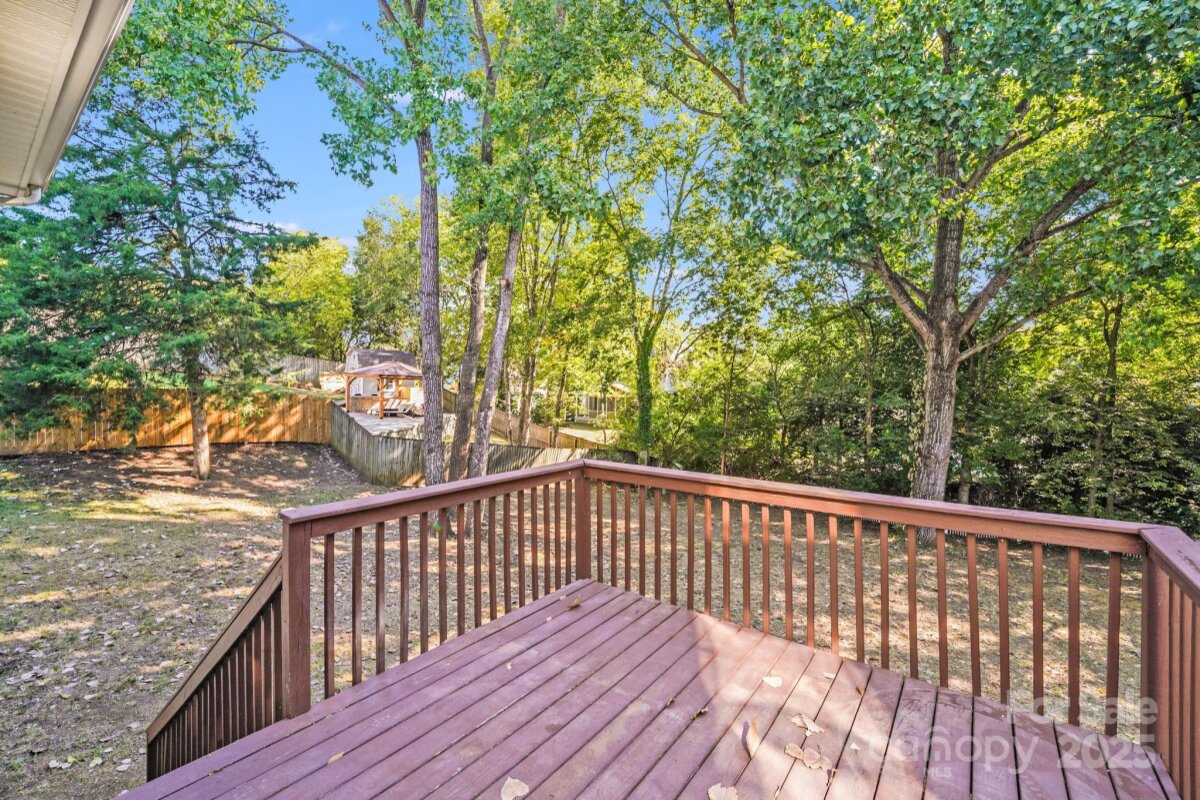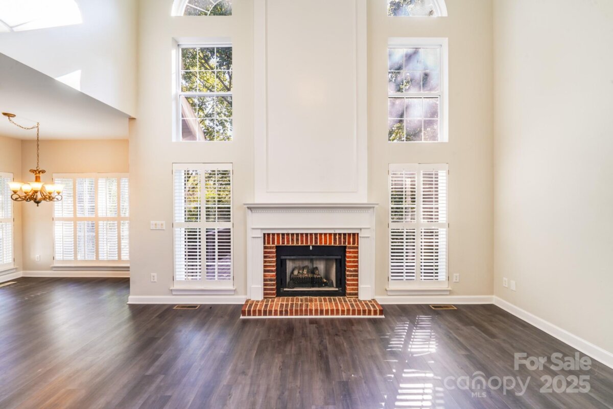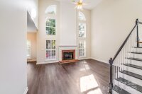 This pristine 4-bedroom, 2.5-bath home sits on a spacious 0.42-acre lot in the sought-after Rougemont community in Charlotte, NC. Step inside to find gorgeous flooring throughout the main level, with soaring ceilings and abundant natural light creating a bright, open atmosphere. The cozy living area flows seamlessly into the gourmet kitchen, complete with beautiful countertops, modern appliances, and ample storage—ideal for everyday living and entertaining. Upstairs, the sizeable primary suite features a lavish bath and walk-in closet, while three additional bedrooms provide plenty of space. An extra upstairs flex area offers the perfect spot for a second living room, office, or entertainment space. Enjoy the outdoors in your expansive backyard, complete with a wooden deck, perfect for gatherings, grilling, or simply relaxing. Conveniently located less than 10 minutes from I-77, shopping, groceries, and local parks, this home offers the perfect balance of comfort and accessibility. This home combines functionality with style—don’t miss your chance to call it your own piece of paradise!
