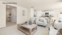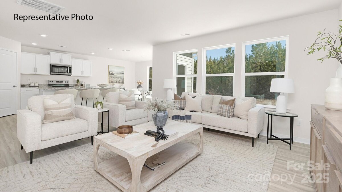 This bright and sunny home has 3 bedrooms, 2 1/2 baths and a beautiful open floor plan. Spacious kitchen with Quartz counters, large island, stainless steel electric range/microwave/dishwasher and pantry opens into family room with great yard. Charming Darwin plan boasts a "sunroom like" dining area-Many many windows and large patio. Elegant LVP durable floors throughout first floor main living space. Primary bedroom features large walk-in closet and luxurious bathroom with large shower and raised height vanity & dual sinks. Fully sodded yard garage ,opener with remote and 8' x10 rear patio all included! BRAND NEW HOME WITH COMPLETE BUILDERS WARRANTY! MODEL HOME hours: Mon-Sat 10am to 6pm and Sun 1pm to 6pm gps village drive