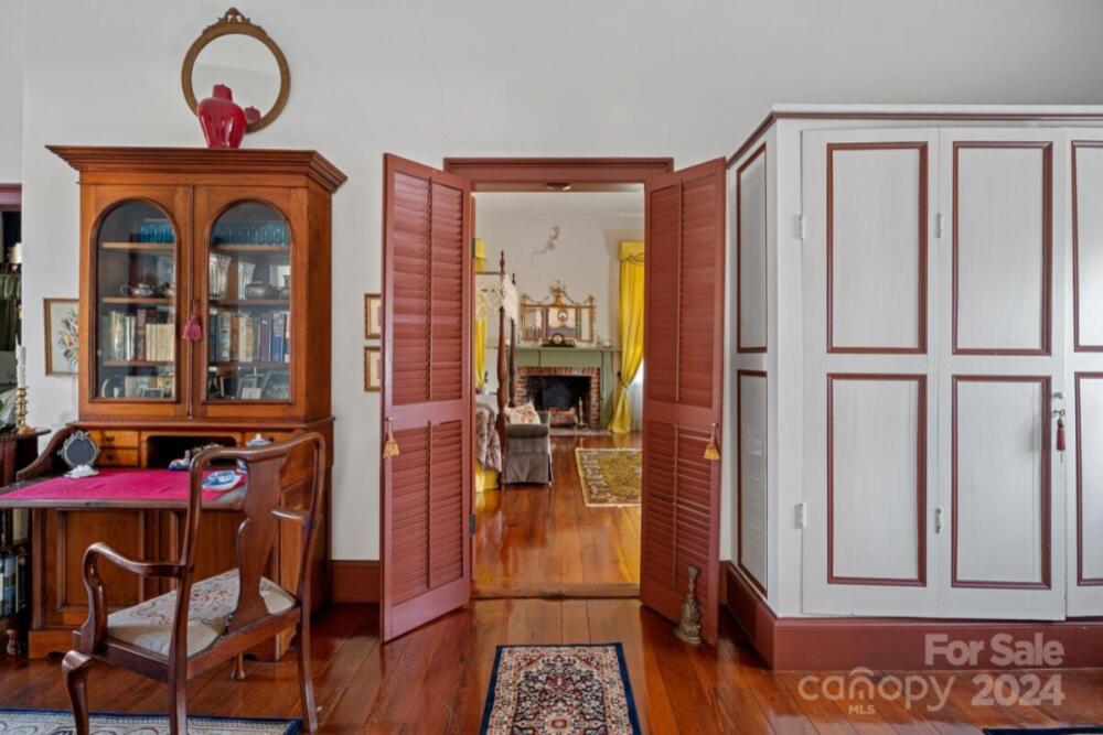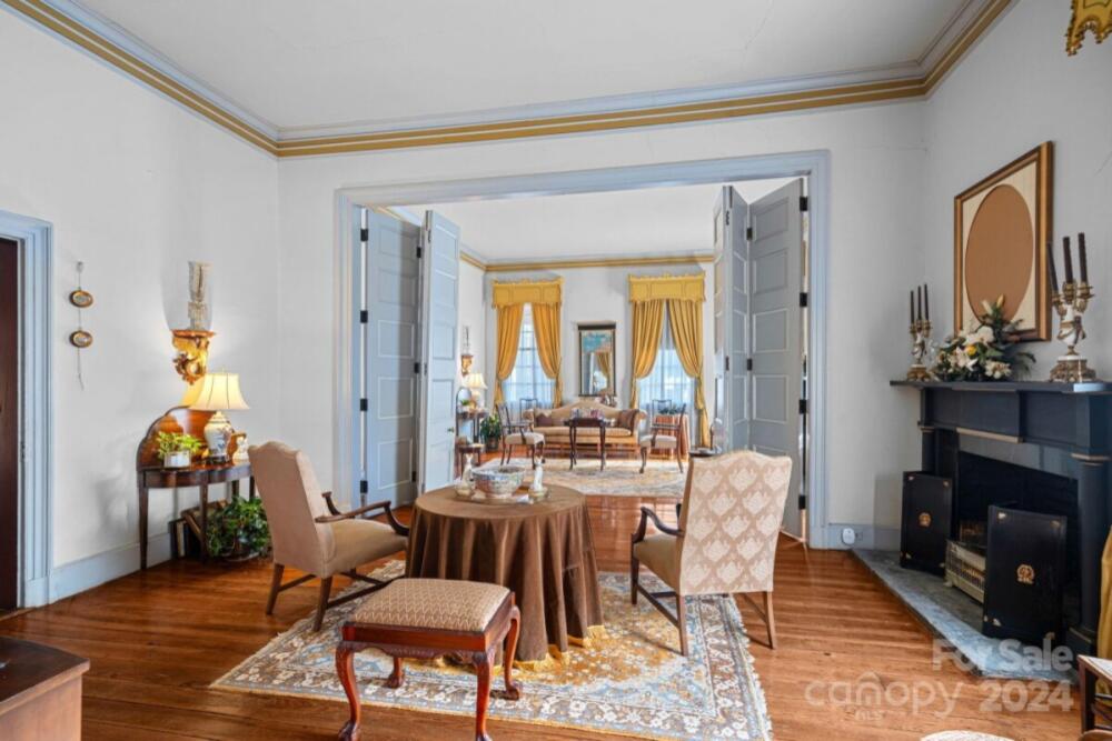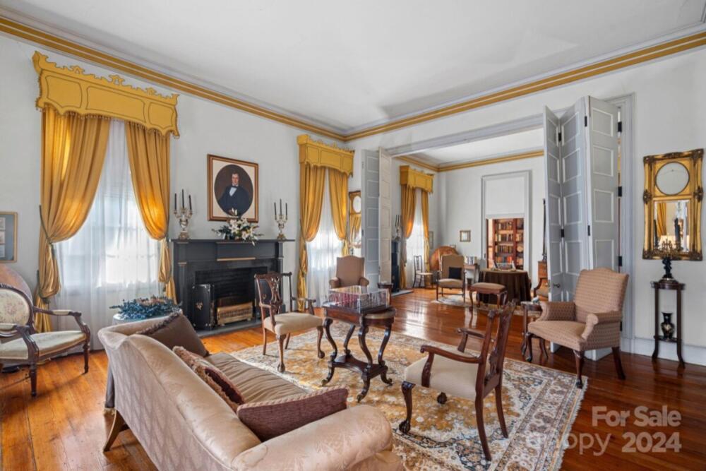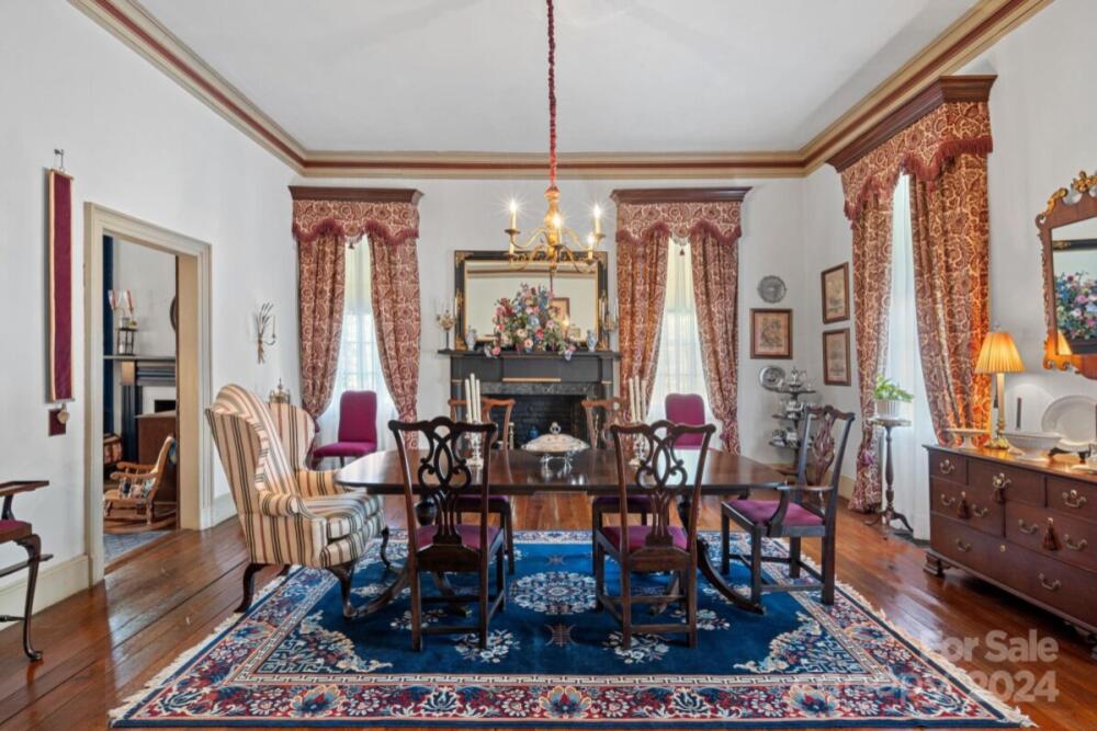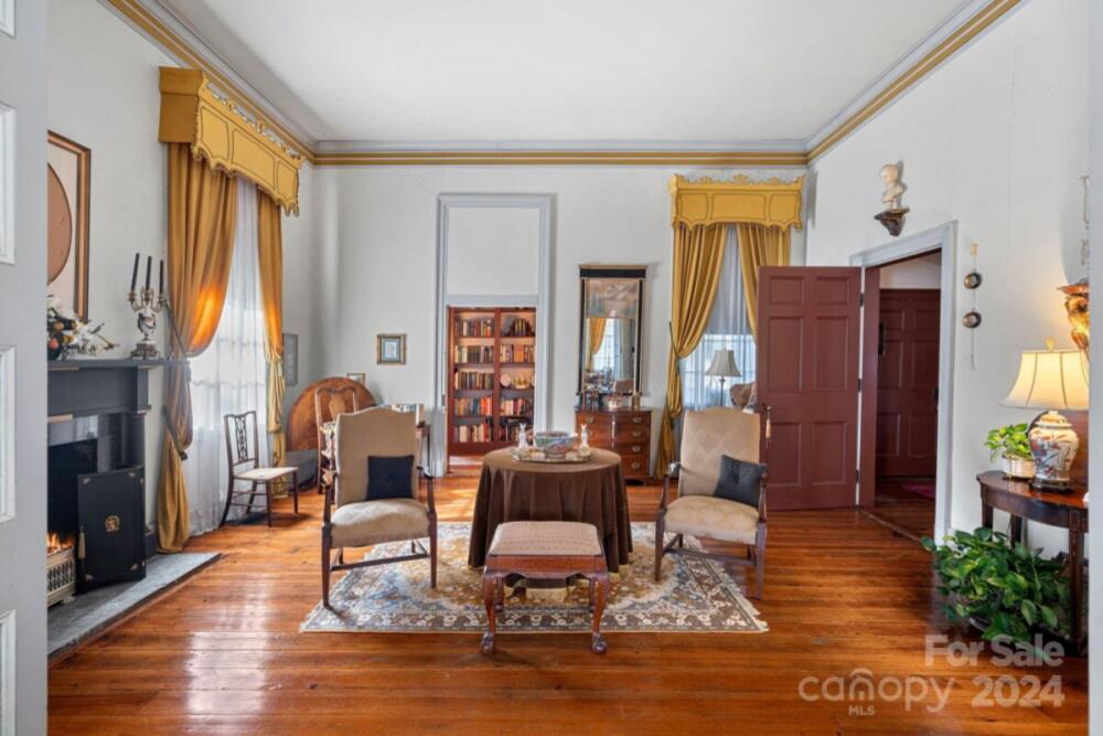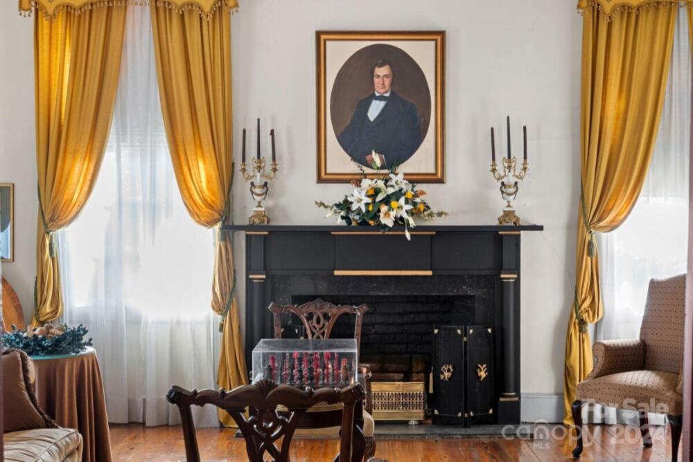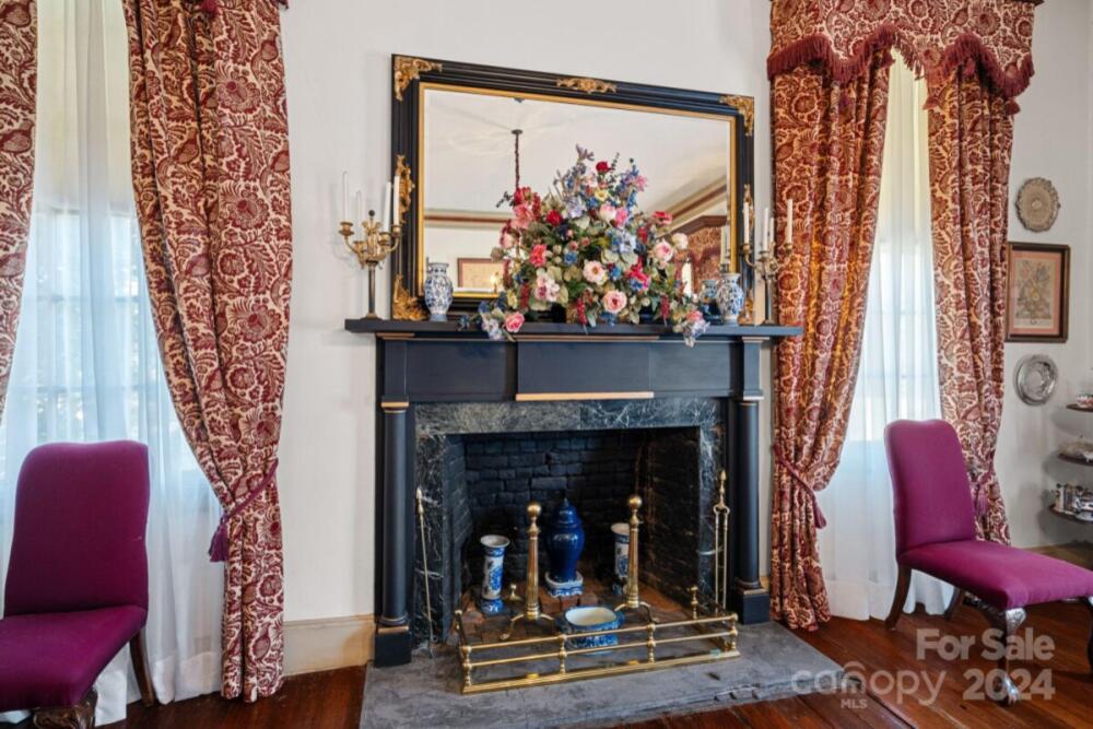 This historic home is truly a treasure! A National Register landmark, the Historic Mount Mourne Plantation, c.1836 holds significant historical & social provenance in southern Iredell Co. Built in the transitional Federal Greek Revival style with a hip-roof portico & fluted Doric columns, this 2-story home is situated on over 3 sprawling acres with private utilities. Unmatched craftsmanship and materials like heart pine floors, lath & plaster walls, 14-ft ceilings, pristine custom woodwork & mantelpieces. Lovingly restored & maintained, modern amenities include a blue-and-white chinoiserie kitchen with two sinks, gas cooktop, arched niches, modern appliances & built-in banquettes. The luxurious bathroom features a jetted soaking tub, tiled Grecian shower & a private dressing room with built-in armoires & a gas log fireplace! A full walk-up attic offers fabulous storage & future potential. The 3.45-acre property is level with fruit trees, native plantings & a log barn outbuilding.