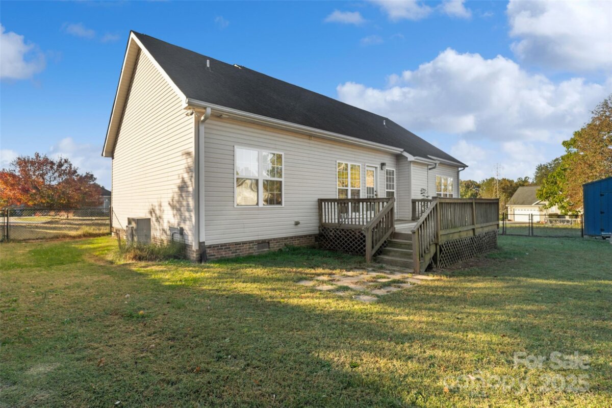 Welcome home to this charming 3-bedroom, 2-bath ranch in The Farm at Oak Grove. This home features an open floor plan with vaulted ceilings, hardwood floors, and a cozy fireplace—perfect for both relaxing and entertaining. The kitchen includes an eat-in area, tile backsplash, and plenty of cabinet space. A finished bonus room above the garage provides the ideal space for an office, playroom, or guest suite. Enjoy mornings on the covered front porch and evenings on the spacious back deck overlooking the large, fenced backyard with a storage shed that conveys. The HVAC system was replaced in 2024. Conveniently located near downtown Kings Mountain, schools, and with easy access to I-85.