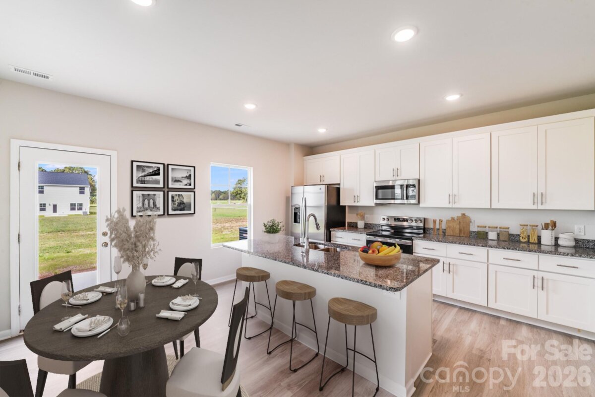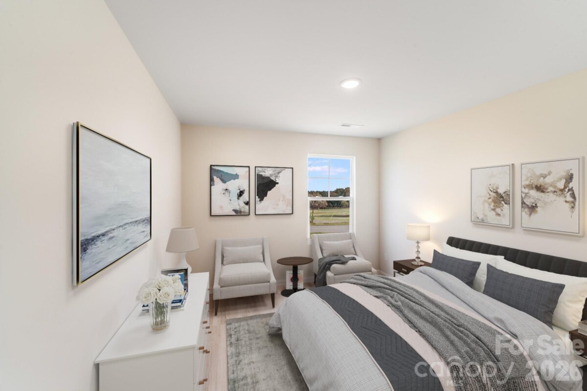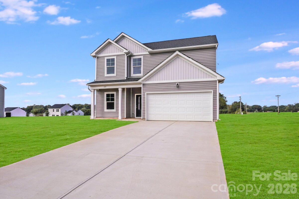 Welcome to this inviting two-story, 3-bedroom, 2.5-bath home offering the best of modern living—perfect for first-time buyers or those looking to upgrade to more space. Situated on a generous 0.53-acre lot, this property combines privacy with the convenience of quick access to I-40. The main level is designed for comfort and flexibility, featuring a spacious great room with three large windows overlooking the backyard and filling the space with natural light. The kitchen is a chef’s delight, showcasing white cabinetry, granite countertops, a large island with a breakfast bar, a pantry, stainless steel appliances, and a dedicated dining area ideal for casual meals or entertaining guests. Upstairs, the primary suite offers a roomy walk-in closet and a private bathroom with dual sinks and granite countertops. Two additional bedrooms share a full bath with matching finishes, providing comfort and style for everyone. Additional highlights include a 2-car garage with an opener, a covered front porch perfect for relaxing outdoors, and a move-in-ready home with a versatile layout and ample space to grow—a perfect place to start your next chapter.