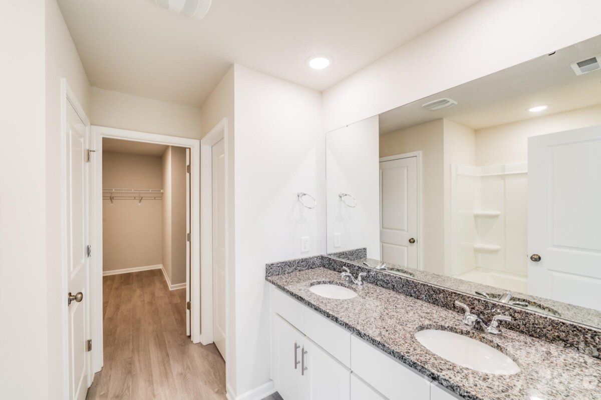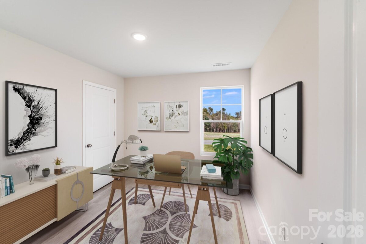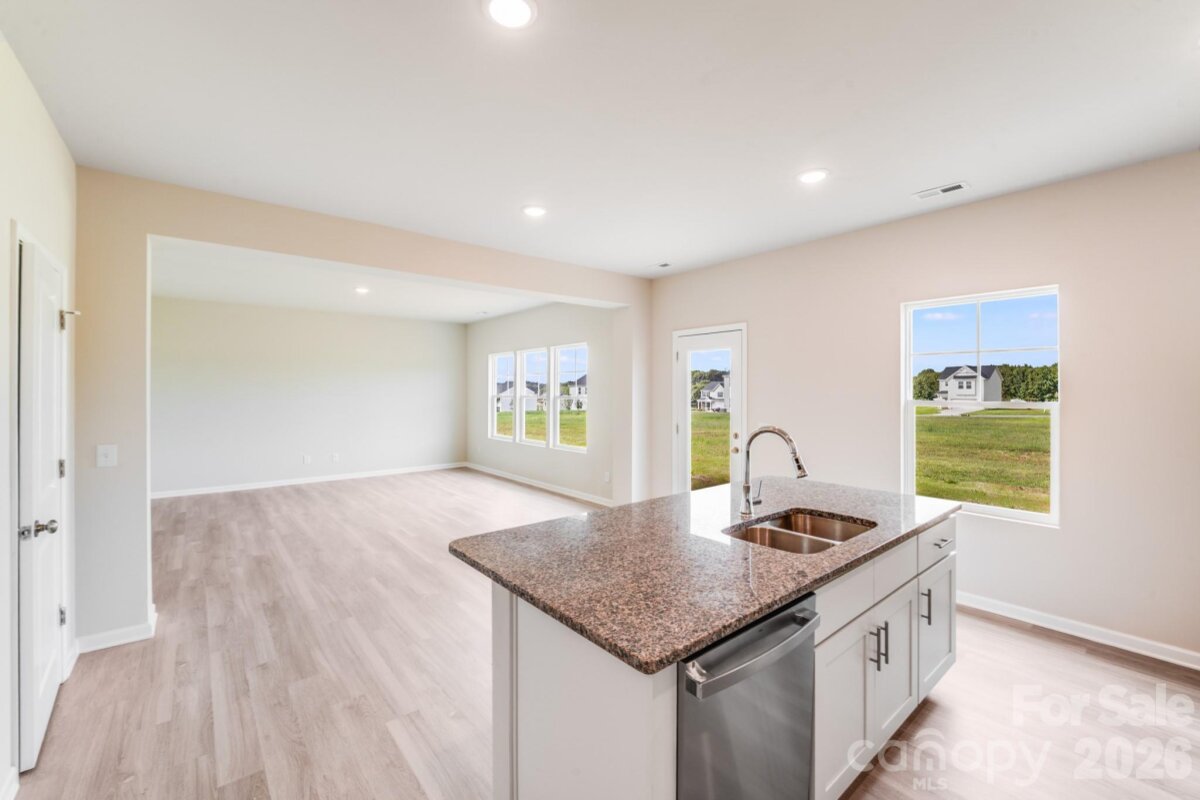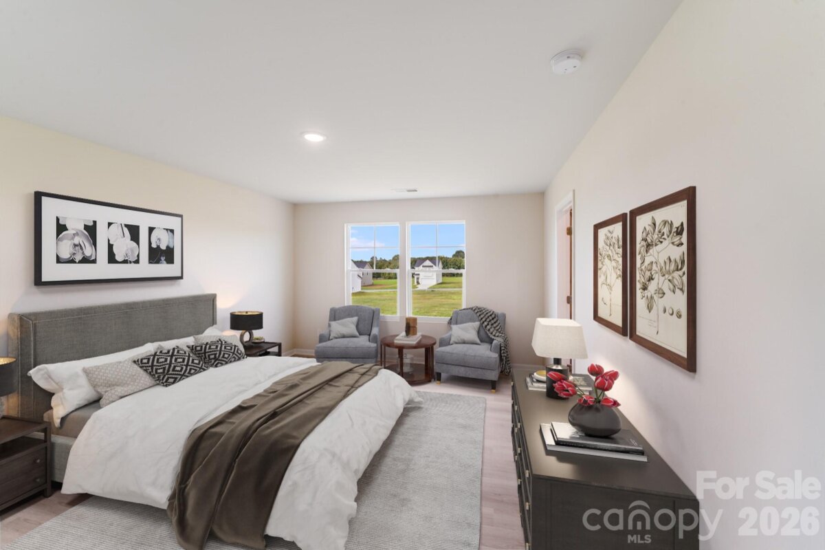 Welcome to this inviting two-story, 3-bedroom, 2.5-bath home offering the best of modern living—perfect for first-time buyers or those looking to upgrade to more space. Situated on a generous 0.53-acre lot, this property combines privacy with the convenience of quick access to I-40. The main level is designed for comfort and flexibility, featuring a spacious great room with three large windows overlooking the backyard and filling the space with natural light. The kitchen is a chef’s delight, showcasing white cabinetry, granite countertops, a large island with a breakfast bar, a pantry, stainless steel appliances, and a dedicated dining area ideal for casual meals or entertaining guests. Upstairs, the primary suite offers a roomy walk-in closet and a private bathroom with dual sinks and granite countertops. Two additional bedrooms share a full bath with matching finishes, providing comfort and style for everyone. Additional highlights include a 2-car garage with an opener, a covered front porch perfect for relaxing outdoors, and a move-in-ready home with a versatile layout and ample space to grow—a perfect place to start your next chapter.
