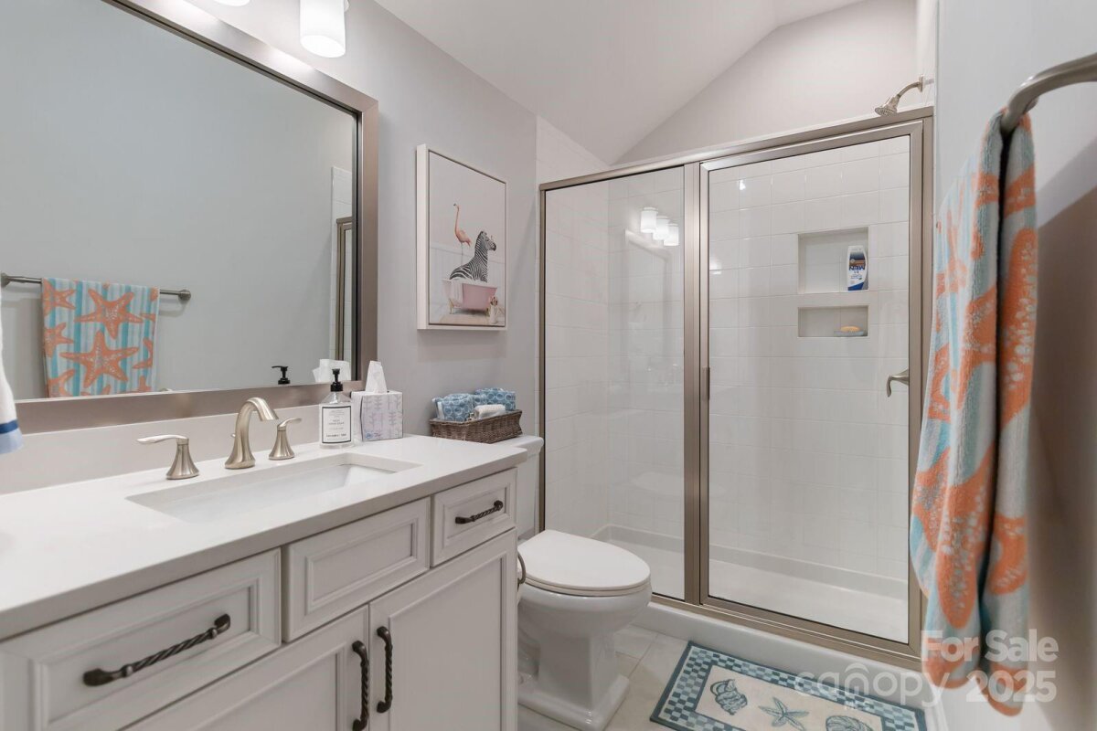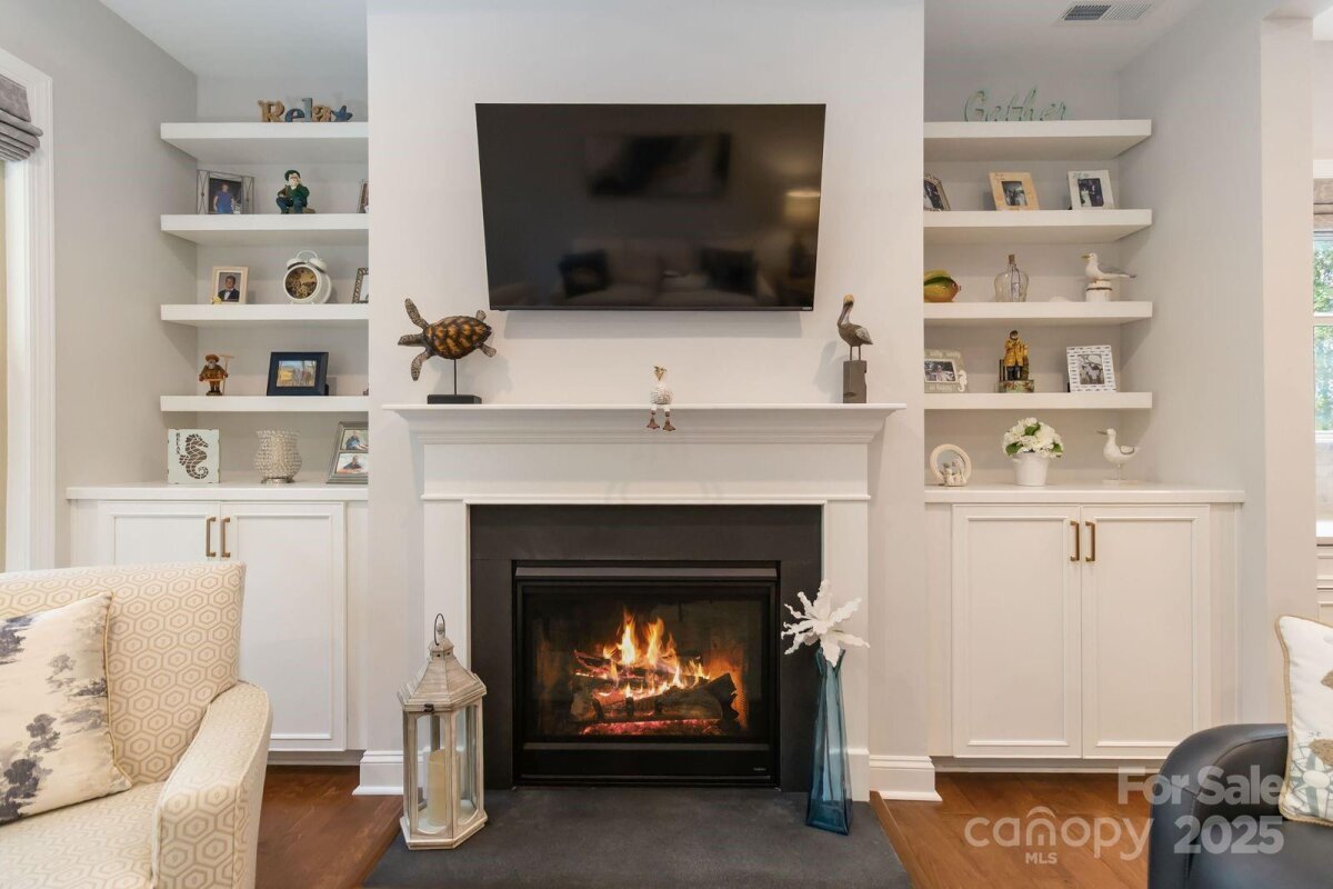 Beautifully situated on a private cul-de-sac lot, this home offers luxury, comfort, and thoughtful upgrades throughout. Enjoy hardwood floors, upgraded lighting, and elegant trim work. The all-white kitchen features quartz countertops, stone tile backsplash, stainless appliances with gas range, soft-close cabinets with pull-out shelving, wine refrigerator, and remote-controlled Roman shades. The family room boasts a coffered ceiling and gas fireplace. The primary suite includes two custom walk-in closets, a tray ceiling, and an oversized walk-in shower. The guest suite offers a seamless glass shower. Relax or entertain on the vaulted covered stone veranda with wood-plank ceiling, Lion outdoor kitchen, Elementi fire table, and private landscaped backyard. Upstairs provides a large flex space perfect for an office, gym, or hobby area, plus a bedroom, full bath, and two walk-in attic storage areas. Pottery Barn silk window treatments and custom Roman shades remain. Residents enjoy a clubhouse, fitness room, and bocce court, with lawn maintenance included. A perfect blend of elegance, convenience, and low-maintenance living!