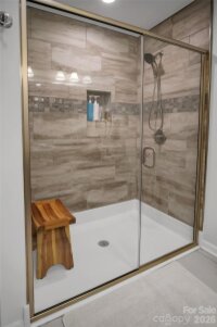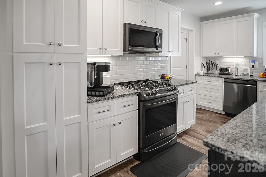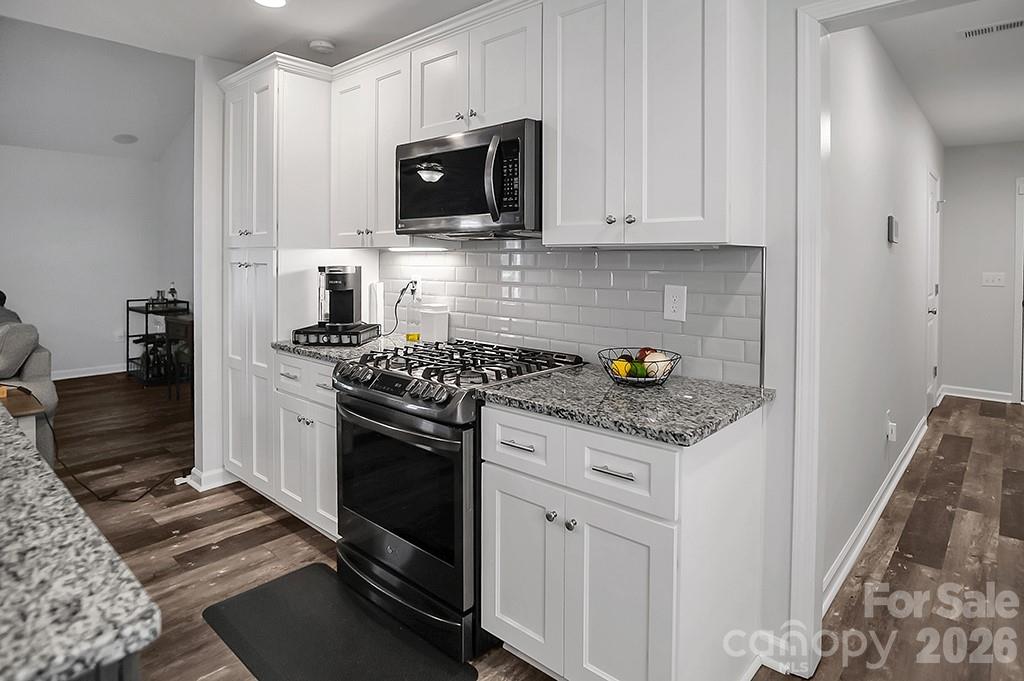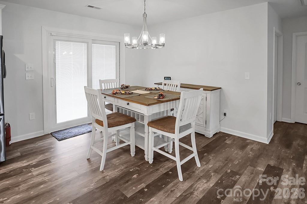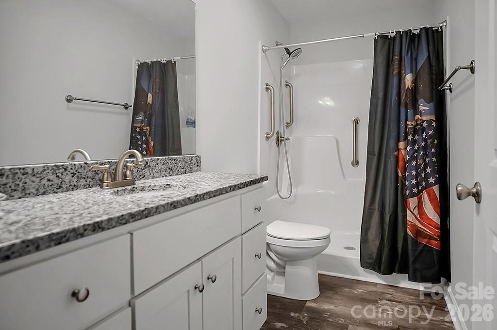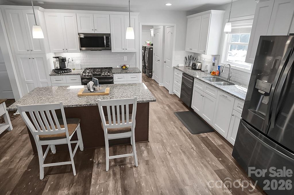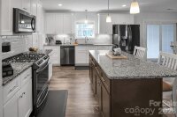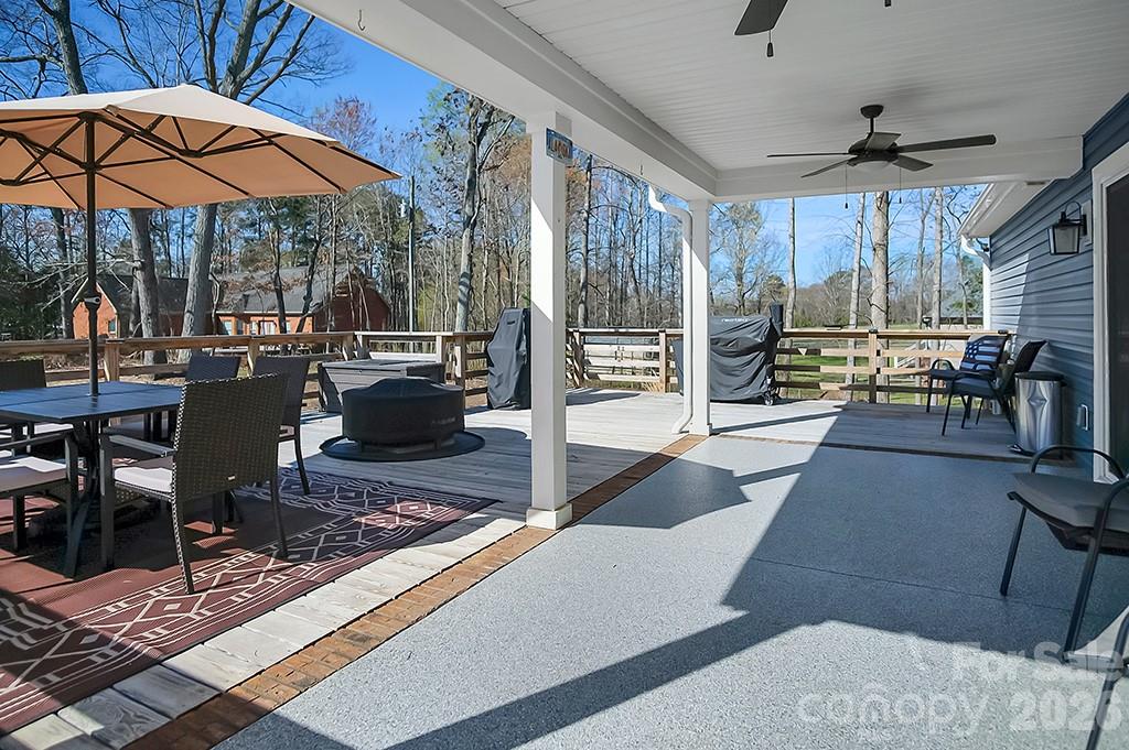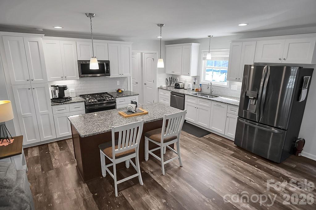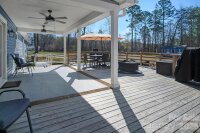Located in a desirable Cherryville neighborhood, this beautifully designed single-level home offers the perfect blend of space, style, and functionality on a generous 1+ acre lot. Featuring a split-bedroom, open-concept layout with 3 bedrooms and 2.5 baths, this home is ideal for both everyday living and entertaining. Enjoy quiet mornings on the rocking chair front porch or unwind out back on the covered patio and attached deck overlooking a spacious yard complete with an outbuilding. A paved slab with RV hookups—including electric, water, and septic—adds incredible versatility. Inside, LVP flooring flows throughout with tile in primary bathroom. The stunning eat-in kitchen showcases white cabinetry, granite countertops, a large island, and stainless steel appliances including a gas range, dishwasher, and mounted microwave. The living room is anchored by a floor-to-ceiling stone fireplace with a wood mantle. A hallway connecting to the 2-car garage includes a convenient laundry area and a half bathroom. The spacious primary suite features a walk-in closet, dual vanity, and a custom tile shower with seamless glass. Two additional bedrooms share a well-appointed full bath with stand-up shower. Home is designed for handicap accessibility. A rare find combining comfort, upgrades, and outdoor amenities!