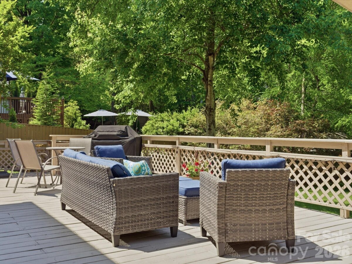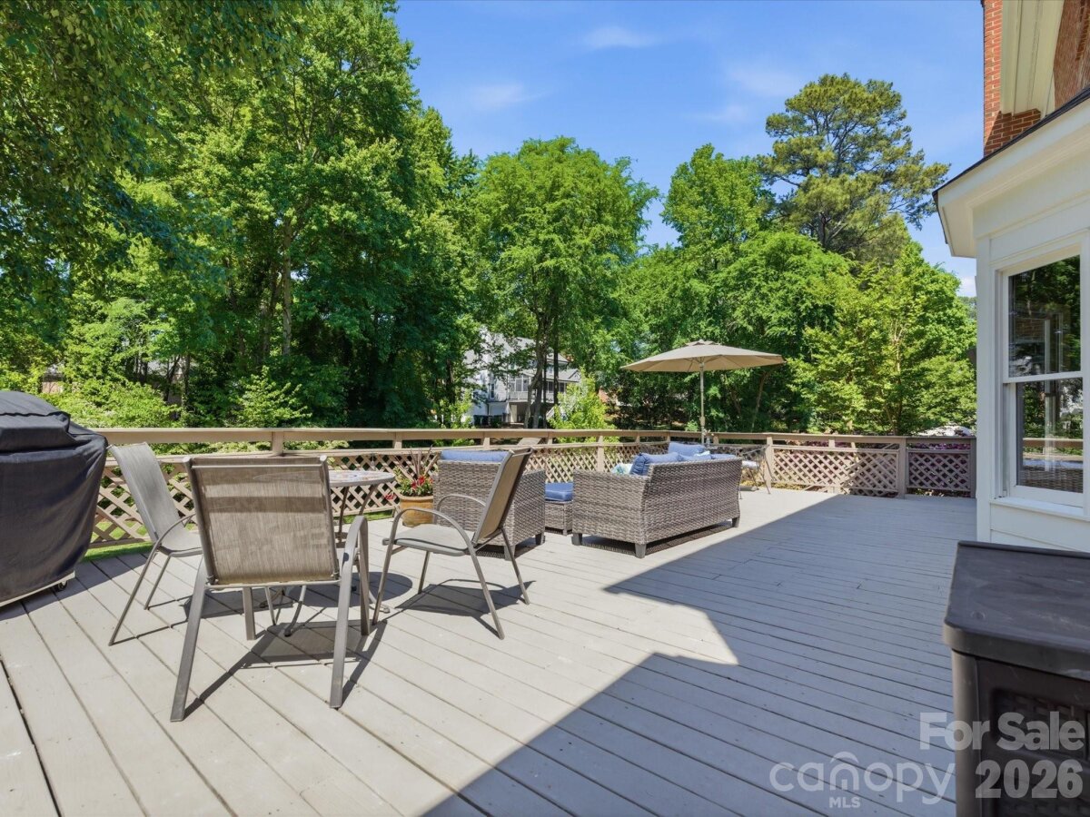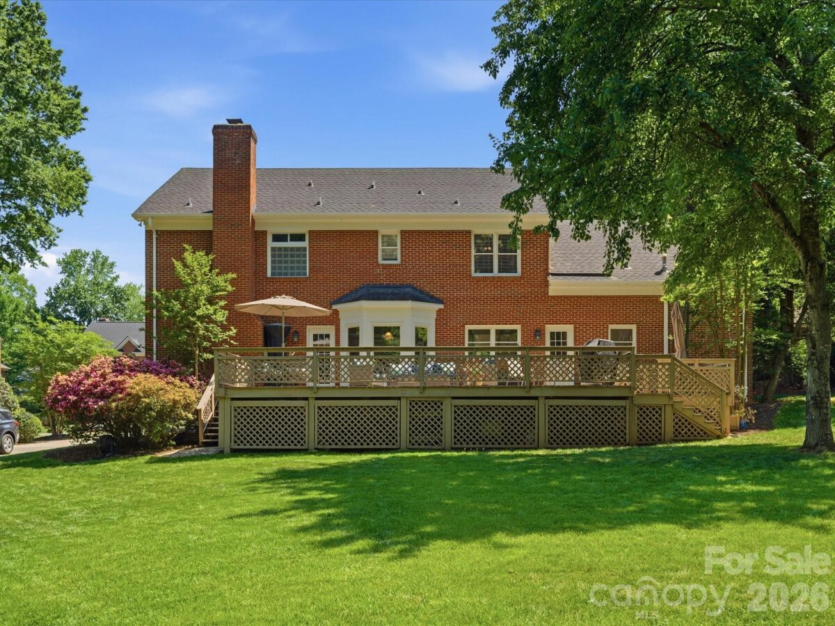 Welcome to 10507 Hollybrook Drive, a classic traditional home in the highly sought-after Berkley community, perfectly positioned in prime South Charlotte. With exceptional curb appeal, this home sits on a beautiful .36-acre lot surrounded by mature trees, lush landscaping, and thoughtfully designed plantings that create a private, serene setting. Designed for both everyday living and entertaining, the expansive backyard deck offers the perfect space for gatherings, grilling, or simply relaxing outdoors. Inside, this spacious 4-bedroom home with a 5th bedroom/bonus room and 3 full and 1 half baths offers approximately 2,845 square feet of well-appointed living space. The main level features a versatile formal living room (ideal as a home office), formal dining room, and a welcoming family room with fireplace. The kitchen includes a separate breakfast area and is complemented by a large walk-in pantry, computer/desk niche and generously sized laundry room. Upstairs, the owner’s suite provides a private retreat, while additional bedrooms offer flexibility for family, guests, or workspace needs. Storage is truly exceptional throughout the home—an increasingly rare and valuable feature. Located in the desirable Providence High School district, this home offers unbeatable convenience to some of South Charlotte’s most popular destinations, including Waverly, The Promenade, and The Arboretum, with an abundance of shopping, dining, and entertainment options just minutes away. Enjoy easy access to I-485, a quick commute to Uptown Charlotte, and convenient travel to Charlotte Douglas International Airport. This is a rare opportunity to own a beautifully maintained home in one of South Charlotte’s most established and desirable neighborhoods.