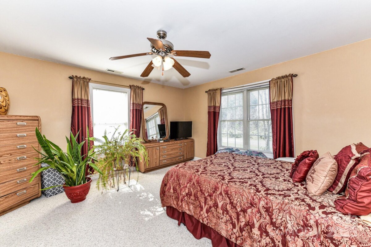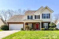 Step into this captivating property located in the highly sought-after Bent Creek neighborhood! This charming home features 4 spacious bedrooms, 2.5 modern bathrooms, and a roomy 2-car garage, conveniently situated near I-485 for easy commuting, and a variety of shopping options to explore. The generous layout of this property provides ample living space for you and your loved ones to create lasting memories. Gleaming hardwood floors grace the interiors, exuding warmth and timeless elegance, while plush carpeting adds coziness to the living areas. The convenience of a main floor laundry room enhances your daily routines. Indulge in the luxury of a primary bedroom retreat boasting tray ceilings and a lavish garden tub, offering a perfect sanctuary to unwind and rejuvenate at the end of each day in style and comfort.