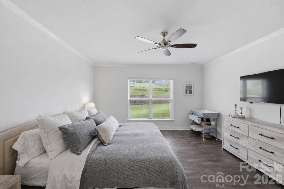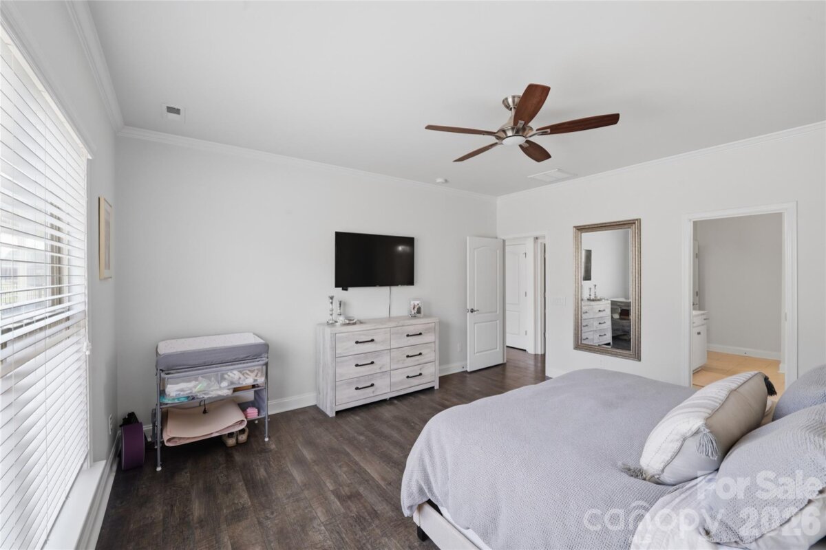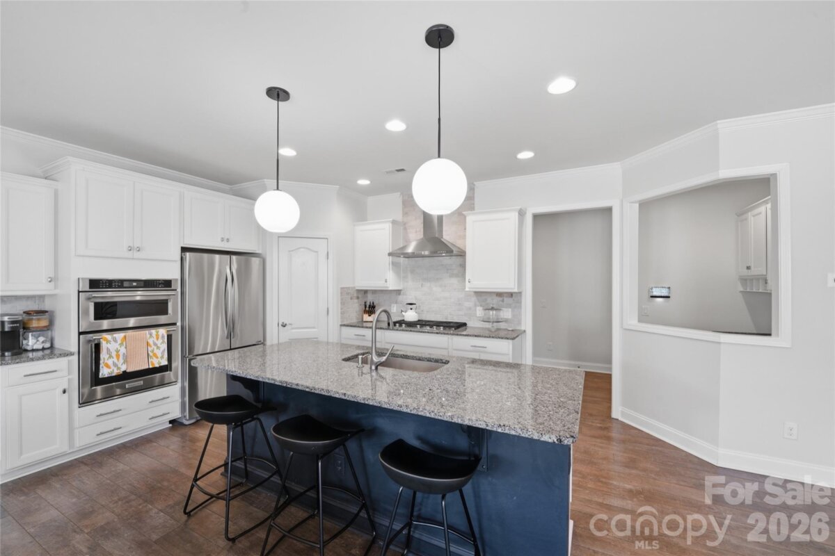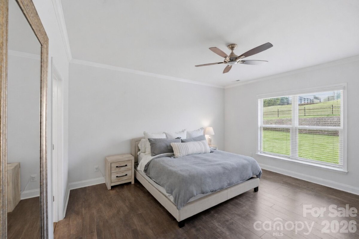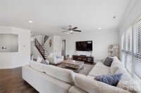 Welcome home to this beautifully maintained home in the Chapel Cove community, where timeless curb appeal meets modern comfort and energy efficiency. A charming rocking-chair front porch sets the tone, inviting you into a bright, open interior filled with natural light and thoughtfully designed living spaces. This versatile 4-bedroom, 2.5-bath floor plan offers flexibility on both levels to suit your lifestyle. The spacious front room can easily function as a home office (current use), formal dining area, or playroom. The heart of the home features a well-appointed kitchen and breakfast area with stainless steel appliances, granite countertops, and a stylish backsplash, all seamlessly connected to the main living spaces for effortless entertaining. A highly functional drop zone, computer niche, and laundry area create an ideal everyday command center just off the kitchen and garage. The primary suite, conveniently located on the main level, offers a private retreat with generous space and comfort. Upstairs, you’ll find three additional bedrooms—all with walk-in closets—along with a spacious loft perfect for a media room, second living area, or workspace. Contemporary open stair railings add a modern architectural touch that enhances the home’s overall design. Step outside to enjoy a well-maintained, fenced backyard with a covered patio—perfect for relaxing or hosting gatherings year-round. As an added bonus, solar roof panels help significantly reduce energy costs, offering both sustainability and savings. Chapel Cove residents enjoy resort-style amenities including a clubhouse, pool, pickleball and tennis courts, sport court, playground, walking trails, fitness center, and a paddlesport launch area. With convenient access to Lake Wylie and nearby dry and wet dock storage, plus an easy commute to Uptown Charlotte and under 25 minutes to Charlotte Douglas International Airport, this home offers the perfect blend of lifestyle and location.