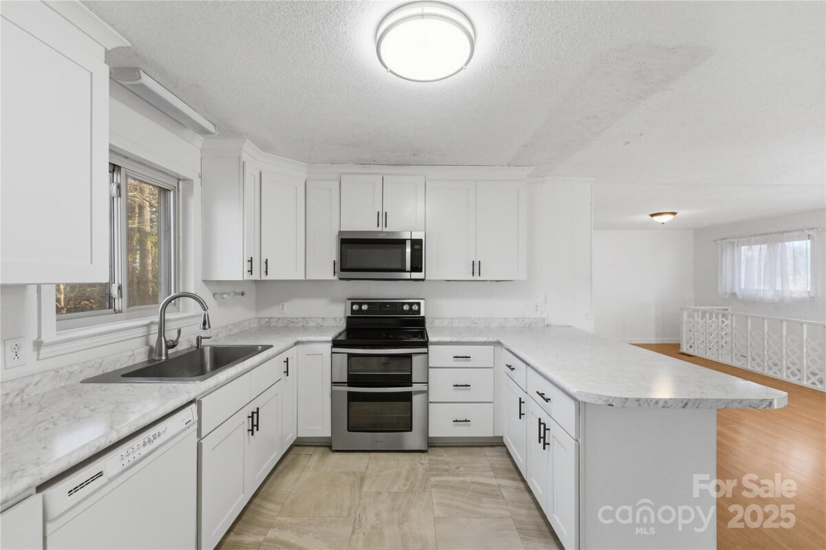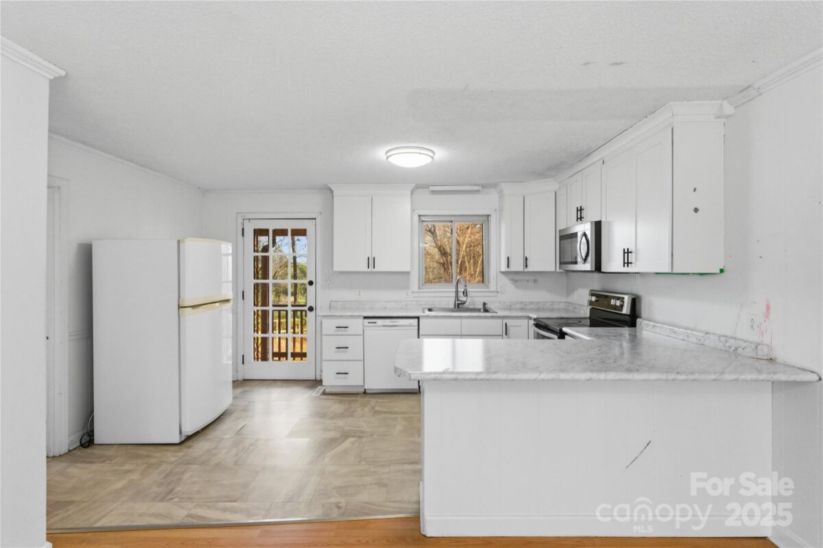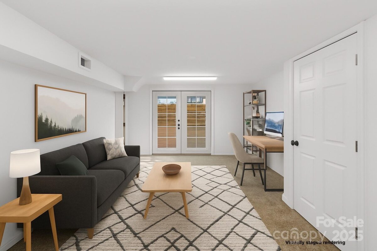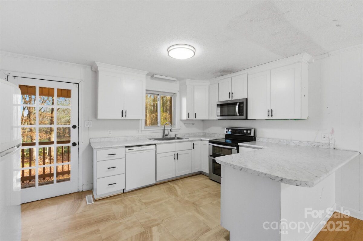 This 4 bedroom, 2.5 bath, all brick home on 1.24 acres in Concord offers rare privacy with no HOA or city taxes! Surrounded by mature foliage and natural landscaping, the property lives like a private preserve, yet remains minutes from shopping, dining and daily conveniences. The main level features three bedrooms (all with brand new carpet), including the primary suite with a half bath featuring a newer vanity (2023). The kitchen opens to the living room with a fireplace and also flows into the dining room with views of the lush backyard. Kitchen renovation (2023) includes new cabinetry and countertops, oven (2020), microwave (2020) and refrigerator conveys. The main level, full bathroom, features a dual vanity and shower/ tub combo. The lower level includes a fourth bedroom with en-suite bath and a spacious flex space with direct walkout access to a spacious covered patio, formerly a two-car carport, ideal for outdoor living or entertaining. Additional upgrades include a refinished basement floor (2023), roof (2021), HVAC (2020), 200 Amp electrical upgrade (2020), whole-house fan and a fenced backyard with three gated entries. Washer, dryer and basement refrigerator convey. Served by well and septic systems.