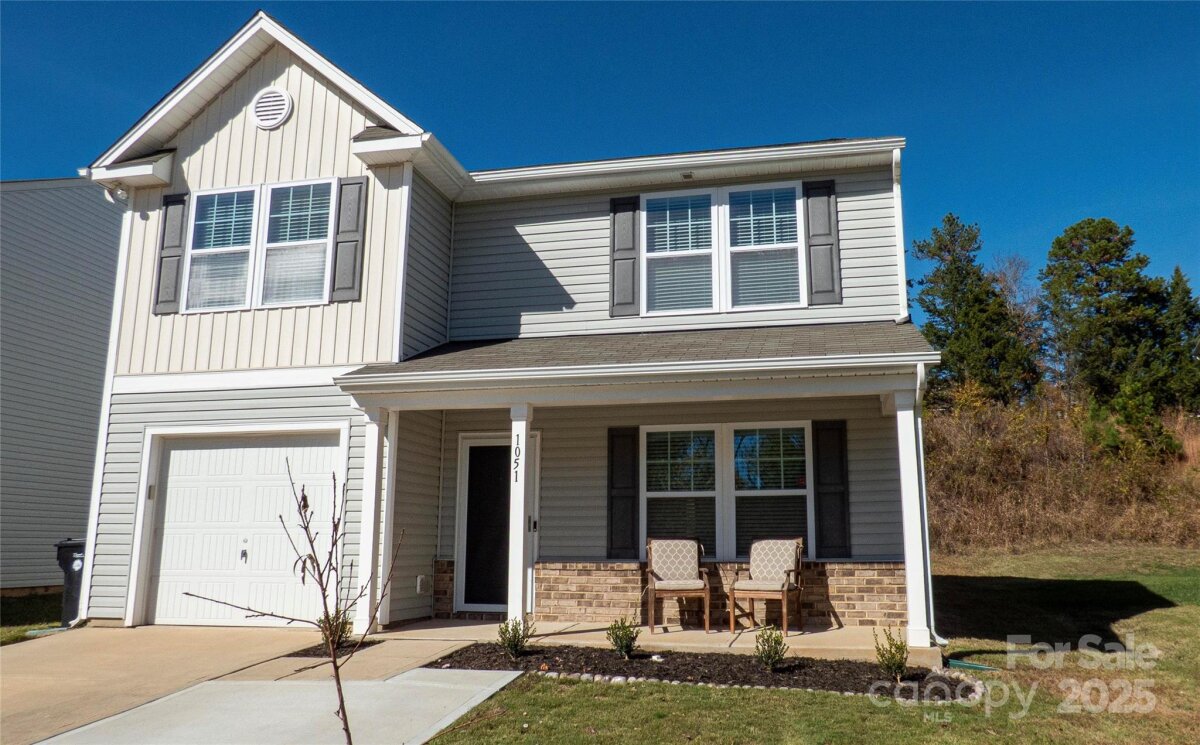 Welcome to this beautifully maintained, spacious, move-in ready home! From the inviting covered front porch to the quaint backyard with extended concrete patio, the views from the front and back of this cut-de-sac home are of natural areas owned by the HOA! Leave the front door open and welcome in fresh air through the screen door as natural light shines on the vinyl plank flooring that extends throughout the main level. These floors are scratch and water resistant making for easy care with a modern feel. An office with French doors provides a quiet space for work or study, and a large drop zone provides a dedicated space for everyday needs. The spacious kitchen features granite countertops, tile backsplash, abundant cabinetry, a center island, and all major appliances—including a refrigerator, microwave, glass top electric range, and dishwasher. The kitchen flows effortlessly to the large living room through one of the many arched openings featured throughout this home. The dining room is located off the kitchen and features updated lighting and room for a crowd. Upstairs, enjoy brand-new carpet throughout the thoughtfully designed layout. The oversized primary suite features a ceiling fan, three large windows overlooking the private backyard, a generous walk-in closet, and full bath ensuite with a duel sink vanity. Two additional large secondary bedrooms—one with its own walk-in closet—share a full hall bath with a linen closet. Additional conveniences include a laundry room with Whirlpool washer and dryer, zoned HVAC for multi-level comfort, and a utility closet for easy access to system components. The single-car garage offers extra storage, and the extended driveway provides side-by-side parking. Enhanced by a security system with cameras, this home combines peace of mind with practical comforts. With its fresh updates, functional floor plan, and premium features, this home is truly ready for you to move right in!
