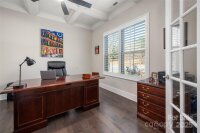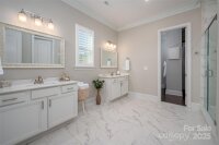 Welcome home to this luxury 5-bedroom, 4.5-bath residence located in the gated community of Highclere, one of Marvin’s premier neighborhoods. Offering nearly 5,000 square feet of refined living space, a 3-car side-load garage, and abundance of custom details, this home blends elegance with exceptional functionality. A grand foyer welcomes you with soaring two-story ceilings, setting the tone for the sophistication found throughout. The main level features 10-foot ceilings, while the upper level offers 9-foot ceilings, all accented with crown molding and custom trim details. The white chef’s kitchen boasts stacked cabinetry, a gas cooktop with wall oven, and an oversized center island ideal for additional seating. Overlooking the dining area and stunning family room, the kitchen creates an exceptional flow for entertaining. A formal dining room connects to the kitchen through a beautifully appointed butler’s pantry, complete with a wine refrigerator and ice maker. The family room showcases a coffered ceiling, custom built-ins flanking a striking stone fireplace, and abundant natural light. A second primary suite on the main level offers a private ensuite bath—ideal for guests or multigenerational living. A home office tucked just off the foyer provides a quiet and functional workspace. Upstairs, the primary suite is a true retreat, featuring an oversized bedroom with a tray ceiling, his-and-hers walk-in closets, and a spa-like ensuite bath with a spacious walk-in shower and freestanding soaking tub. A highly sought-after bonus room offers flexible additional living space, perfect for a media room, playroom, or lounge. A private guest suite includes its own bath and large closet, while the Jack-and-Jill bedrooms offer generous room sizes. Hardwood floors extend throughout the main level, staircase, upper hallway, and primary suite, enhancing continuity and warmth. Every bedroom features walk-in custom closets. Bring the outdoors in with a 9-foot telescoping door that opens to a covered patio with a built-in outdoor grilling area, overlooking a nearly half-acre of lush, level yard—providing endless opportunities to create your ideal outdoor oasis.