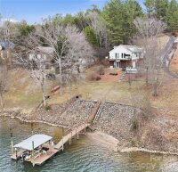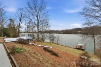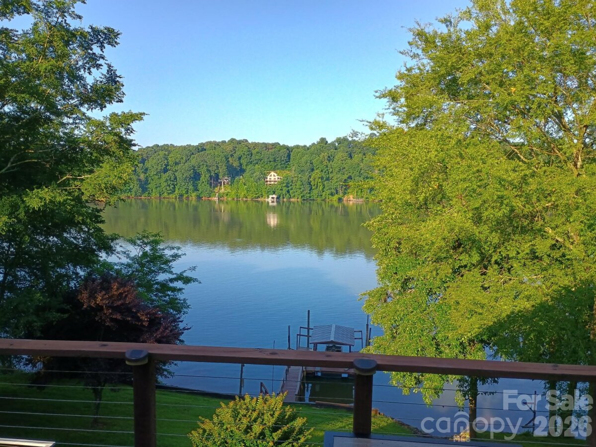 It’s never too early to start planning your lake life! Located in the gated Riverwalk community on Lake Lookout Shoals, this property offers the rare feel of living on a quiet, secluded lake. Situated on approximately 1.2 acres of waterfront this home perfectly positioned to capture gorgeous southwest lake views and unforgettable western sunsets. The spacious living room and eat-in kitchen both open directly to a large, elevated lake-view deck featuring composite decking and cable railing. Crown moldings in all main level living areas. Additional outdoor living spaces include a ground-level patio beneath the deck and a separate yard-level deck, all enjoying serene water views. The primary bedroom features a walk-in closet and an ensuite bathroom with walk-in shower and linen closet. The guest bedroom also includes a walk-in closet. A full, unfinished basement with 10-foot ceilings offers excellent potential for a game room or additional living space and includes built-in storage shelving. The oversized one-car garage is equipped with a workbench and a bathroom with shower, making lake days especially convenient. On-property lake access includes a beach area, boardwalk, and a floating boat dock with metal roof and boat lift. Several lake toys convey with the property, including a canoe, float tubes, and a bass boat with trailer (boat motor needs minor repair, it starts). Recent updates include new windows in 2024, a new roof in 2023, and new kitchen countertops in 2025. The property is served by a private well and septic system. The Riverwalk community offers gated roads, a private beach, picnic pavilion, boat launch ramp, day dock, and a locked boat storage lot. Conveniently located near golf, hiking, fishing, and easy day trips to Charlotte, Asheville, Boone, Blowing Rock, Statesville, and more. Property is located on a gated street and shown by appointment only.