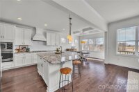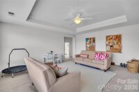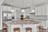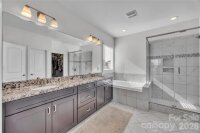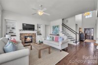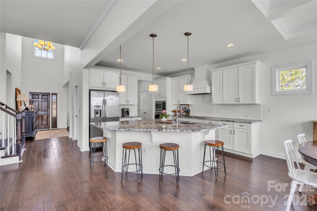 Built in 2014 and beautifully enhanced since, this exceptional home blends timeless architecture with bright, open living spaces and high-end finishes throughout. From the moment you arrive, the striking Hardie plank exterior with stone accents and expansive covered front porch create a warm, welcoming presence. Step inside to an impressive two-story foyer filled with natural light from the dramatic second-story window, perfectly showcasing an elegant statement fixture. To the left, a spacious formal dining room with tray ceiling connects to a true Butler’s pantry featuring cabinetry, shelving, and a full two-door pantry — ideal for entertaining and everyday functionality. The heart of the home is the stunning open-concept kitchen, breakfast area, and great room. Designed for gathering, this space features rich dark-stained wide-plank hardwood floors, abundant windows, and custom built-ins flanking the fireplace. The chef’s kitchen offers granite countertops, a massive island with seating, smooth-top 5-burner cooktop with decorative hood, built-in microwave, wall oven with convection and conventional baking, and extensive cabinetry. The breakfast area, highlighted by a coffered ceiling and surrounded by windows, enjoys serene views and exceptional natural light. A convenient main-level half bath serves guests, while thoughtful storage solutions — including custom cabinetry added in 2016 in the laundry room and drop zone — reflect the home’s quality and attention to detail. The spacious primary suite provides a true retreat with room for a sitting area, a huge walk-in closet, and a well-appointed bath featuring dual sink vanity, attractive cabinetry, a garden tub, separate tiled shower and private water closet. Secondary bedrooms are generously sized and served by two full baths — one ensuite and one Jack-and-Jill — both with tub/shower combinations. Tall ceilings continue upstairs, enhancing the open feel throughout. A versatile loft offers flexible living space for a media area, office or playroom, with the option to enclose it with French doors for added privacy. Additional attic storage is accessible through a half door in one of the bedrooms. Interior updates include interior painting in 2021 and exterior painting in 2023, creating a fresh, move-in-ready presentation. Hardwood and tile flooring span the main level, with tile baths and plush carpet upstairs. Handsome wood stair treads add warmth and architectural character. This thoughtfully designed home offers elegance, comfort, and functionality in every space — ready for its next owners to enjoy from the moment they arrive.