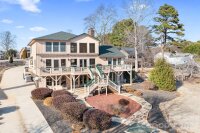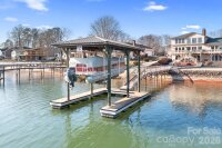 *Extraordinary Lodge-Style Craftsmanship Meets Unrivaled Lakefront Living with PRIVATE BOAT RAMP, Covered Dock with Lift.* Set along the water’s edge with sweeping lake views, this extraordinary lakefront home offers a rare combination of luxury, privacy, and premier lake access. Featuring a RARE PRIVATE BOAT RAMP, covered floating dock with lift, and thoughtfully designed indoor-outdoor living spaces, this three-bedroom, four-and-a-half-bath retreat blends custom craftsmanship with effortless waterfront living. From its custom rich wood interior and stone fireplaces to its expansive deck and flagstone patio, every detail invites you to relax, entertain, and fully embrace life on the lake. Inside, you’ll find an amazing custom wood interior that delivers warmth, character, and true lodge-style charm throughout. Enter into the 2-story living room and enjoy the dramatic wall of windows overlooking the lake as well as the floor to ceiling stone fireplace. The well-appointed kitchen includes granite counters, all stainless-steel appliances, including refrigerator, range, microwave, dishwasher, and trash compactor. Washer and dryer convey. The home’s lower level is ideal for entertaining or relaxing, featuring a spacious family room with a stunning stone fireplace and a separate wet bar pub area (think Bourbon or Cigar Bar)—perfect for hosting friends and family. The beautiful pool table in the family room conveys, adding to the home’s turnkey appeal. Outdoor living is exceptional with a composite floor deck and dual power retractable awnings for those hot summer afternoons overlooking the water and a flagstone patio, ideal for dining, entertaining, or simply enjoying the peaceful lake setting. Lake-fed irrigation keeps the grounds lush while maintaining the home’s natural surroundings. Practical features abound with loads of storage, an attached two-car garage, and peace of mind provided by a new roof installed in 2025 and 1 year Home Warranty INCLUDED. A rare opportunity to own a true waterfront property combining privacy, lodge-style craftsmanship, and premier lake access, perfect as a primary residence, vacation home, or legacy retreat. 2010 Berkshire 24 Foot Pontoon with 115hp Yamaha Outboard available
