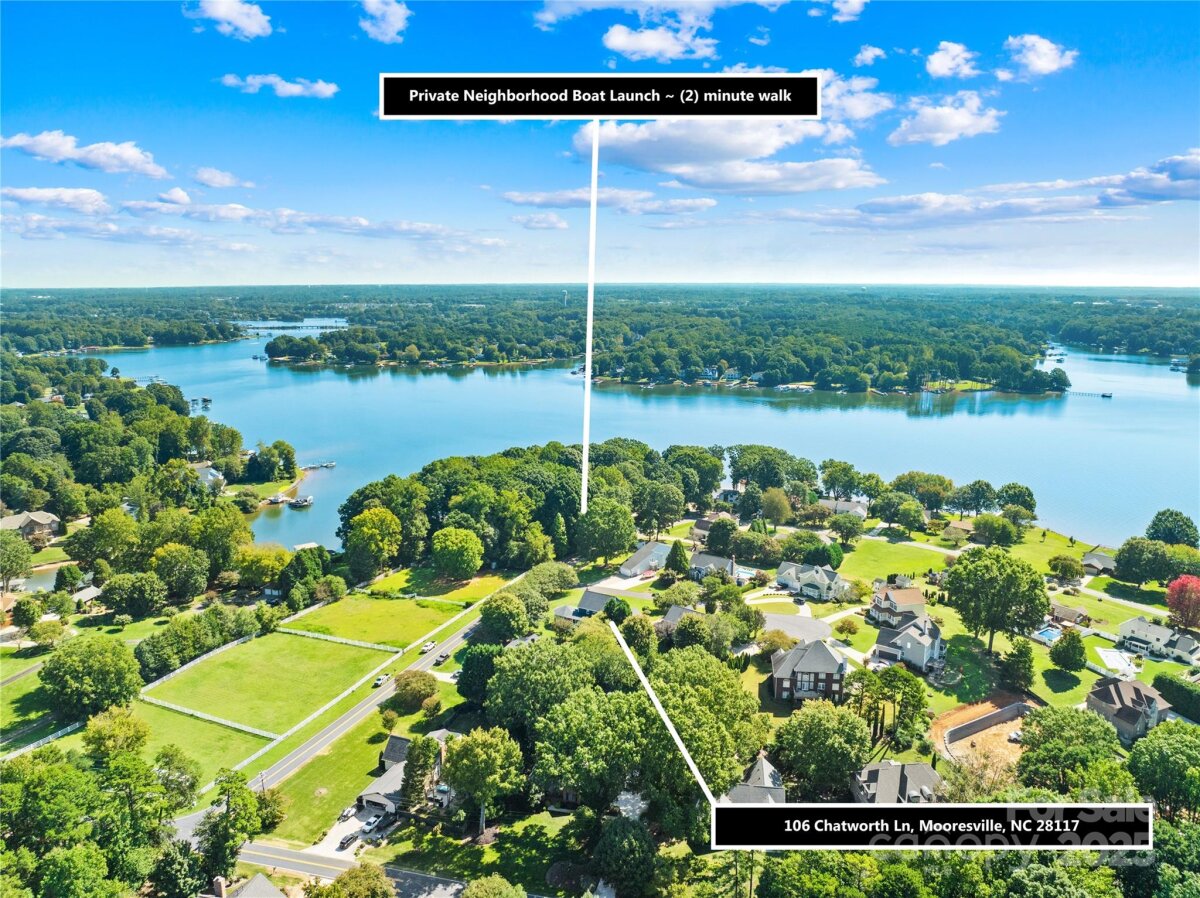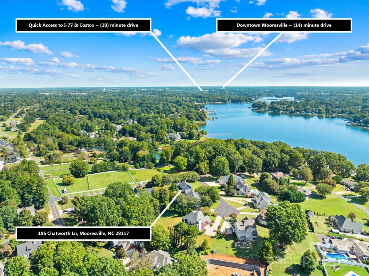 Lake Norman living at a fraction of the cost! Welcome to 106 Chatworth, a spacious corner-lot home on a quiet cul-de-sac with horse pastures across the street and your very own lake access just steps away. Whether you’re boating, fishing, or simply enjoying the water, this rare opportunity offers big-water access without the big price tag. With Voluntary HOA fees that include lake access—and no other restrictions—you’ll enjoy freedom to park your boat in the driveway when not in use. Plus, this property is eligible as a vacation rental, giving you options for personal enjoyment or investment potential. Curb appeal leads into over 3,000 SF of living space. The main level features a private office, formal living and dining rooms, and a spacious den with hardwood floors, fireplace, soaring ceilings, and an abundance of natural light. The kitchen boasts granite countertops and a cozy breakfast nook. Upstairs, you’ll find three large bedrooms, including a primary suite with a spa-like bath featuring a walk-in shower and a separate heater for those chilly mornings. Step outside to a covered back deck and a private backyard with a firepit—perfect for relaxing evenings. Septic pumped 8/2025 , exterior painted 2023, New A/C 2021, and most kitchen appliances replaced in 2024 - See featured list. Home is also under termite bond, and a 1 year home warranty included!