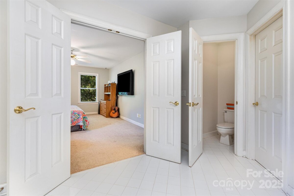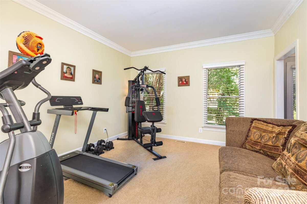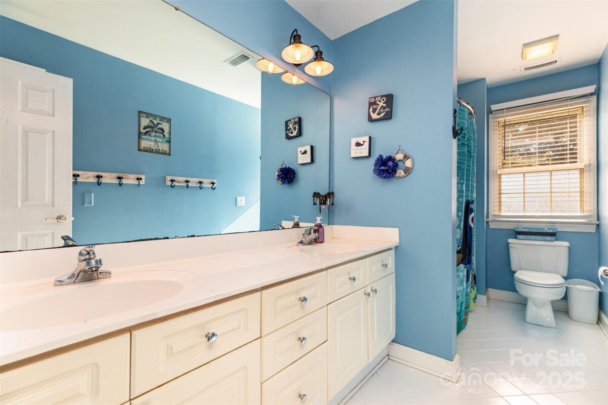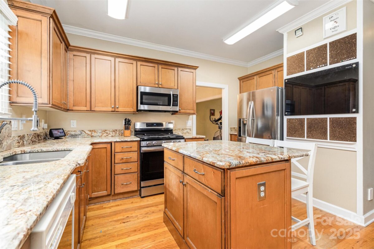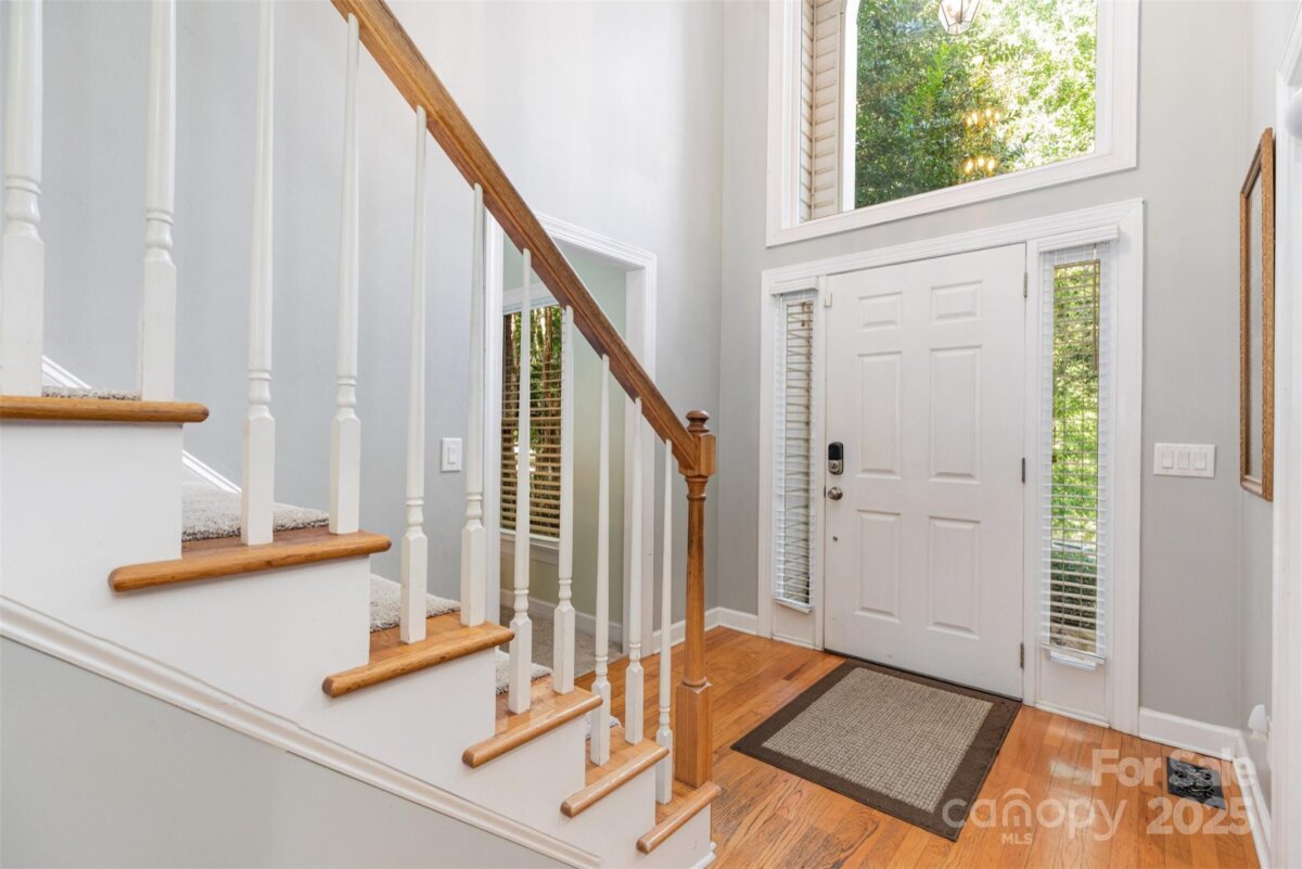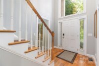 Full brick home on a ½ acre lot in the desirable Mooresville Graded School District with no HOA! This property offers a private, tree-filled setting and a covered back deck to enjoy the outdoors. Inside, the open floor plan flows from the kitchen to the family room, making it great for both everyday living and entertaining. The kitchen features granite countertops, an undermount sink, ample counter and storage space, plus an information station. A dedicated office provides flexible use as a den, reading room, or learning area. Upstairs, all bedrooms are generously sized with great closets. The spacious primary suite includes a large bathroom that feels like a retreat with its garden tub and picture window. Convenient location just minutes to shopping, dining, Downtown Mooresville, and easy access to nearby Lake Norman and Charlotte. Smart Home features - Smart lights throughout are controlled by Alexa devices that will convey. Whole house water filtration system, Moen Flo Smart Water Monitor & Shutoff Installed. Remote controlled shade over front door (controlled by Alexa). Pull down attic with even more storage space! EV compatible outlet in garage. The EV charging cord does not convey. Refrigerator, washer, dryer convey. Trampoline is negotiable.