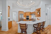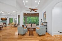 Situated on 1.3 acres in The Point’s prestigious Sturbridge Village, this two level waterfront estate offers views of Lake Norman and Trump National’s 13th fairway. Recently updated with NEW lighting, interior paint, flooring and more, this home exudes refined elegance. Designed with five beautifully appointed bedroom spaces (permitted for four per septic) and over 6,300 SF of luxury finishes. Experience true open concept living as soon as you step inside. Custom curved floor to ceiling windows frame the exquisite views while vaulted ceilings on both levels give the home a light, airy feel. A true chef’s kitchen features Cambria quartz countertops, Thermador professional appliances, and a custom pantry with built-in wine cooler and bar cabinet. The main-level primary suite includes a spa-inspired bath, dual closets and private balcony access. Two additional bedrooms with ensuite baths and a private office are located on the main level. The lower lake level provides an opportunity for second living quarters with kitchen, theatre room, recreation area and two bedroom suites. Outdoor living shines with expansive covered terraces, outdoor kitchen, stone fire pit, private dock with deep-water access and room for a pool. Additional features include a full home instant hot water system, oversized 3-car garage with plenty of guest parking, newer HVAC systems, and walk-in storage areas. Enjoy world-class amenities at Trump National Golf Club—golf, tennis, dining, fitness, social activities. NEW pickleball courts located right across the street.