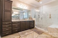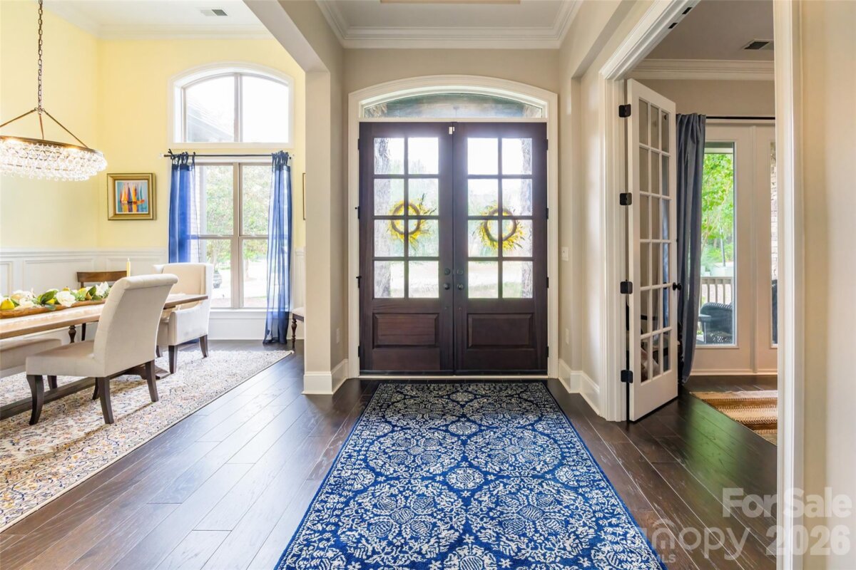 Experience unparalleled elegance in this exquisite brick ranch home by Shea Homes, featuring the Custom Sullivan plan. Enter through the charming covered front porch into a bright, open layout enhanced by transom windows & wood floors. The dining room exudes sophistication w/its elegant wainscoting. The kitchen boasts granite countertops, SS appliances & a double oven, seamlessly flowing into the great room, where impressive cathedral ceilings & a gas log fireplace await. The butler’s pantry has been transformed into a wet bar, perfect for entertaining. Retreat to the primary bdrm, complete w/walk-in closet & wood beam accents, leading to a ensuite BR w/an oversized shower & garden tub. Step outside to the back porch w/ wood floors overlooking a custom concrete saltwater pool & fenced backyard. Additional highlights: steam humidification system, outdoor irrigation, 11.4 KW solar panels & all within the coveted Fort Mill school district! Come check out this immaculately maintained home!