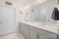 This spacious and popular Bristol floor plan features an inviting wide entry hallway with wainscoting and 9ft ceilings throughout. The open concept design seamlessly connects the living room with a cozy gas fireplace to the expansive kitchen and dining area - perfect for everyday living and entertaining. The kitchen boasts a large island, quartz countertops and ample cabinet/pantry space. The primary bedroom is generously sized and offers double vanities, large walk-in tiled shower with built in bench and an expansive closet. Additionally the main living areas are completed with LVP flooring, tile in baths and carpet in bedrooms and upstairs bonus room. On the main floor you'll find an additional bedroom, office (that could be used as a bedroom) and a hallway bathroom. Upstairs you'll find a large bonus room with lots of natural light, a bedroom and full bath. The backyard has a lovely covered porch perfect for dining or relaxing. In demand gas water heater, built-in drop zone, 2 large storage closets in upstairs bonus room, large closets throughout. The home is located in close proximity to downtown Troutman - dining, entertainment, shopping and easy access to Lake Norman State Park and lots of outdoor activities. This like new home is a must see. Refrigerator, washer, dryer will Convey.