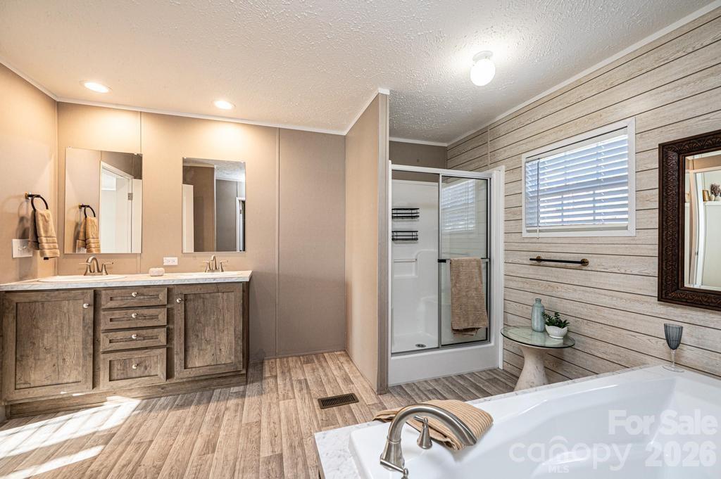 Welcome home to this spacious, open-concept design featuring a large living room that flows seamlessly into the eat-in area and kitchen, complete with a center island perfect for gathering and everyday living. Brand new side by side fridge with icemaker in door. Brand new electric range. The primary suite is thoughtfully positioned on one side of the home and offers a private bath with a relaxing soaking tub, double sinks, separate shower with seat, and a walk-in closet. On the opposite side, you’ll find another bathroom with two additional bedrooms—each with walk-in closets—providing comfort and separation of space. In addition, there is a generously sized study/media room that offers flexibility for a home office, playroom, or entertainment space, along with a spacious laundry room for added convenience. Situated on over one acre, this double-wide manufactured home features vinyl flooring throughout the main living areas, with carpet in the bedrooms and media room. Plenty of space inside and out to make this one your own! Don't forget the workshop situated on a slab for all your projects. A few minutes drive to shops and restaurants and just minutes away from the main intersection at Hwy 321 and 64