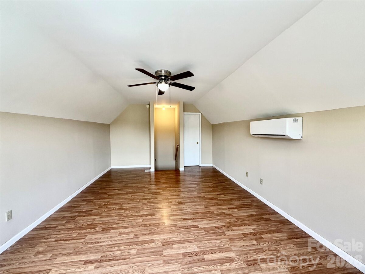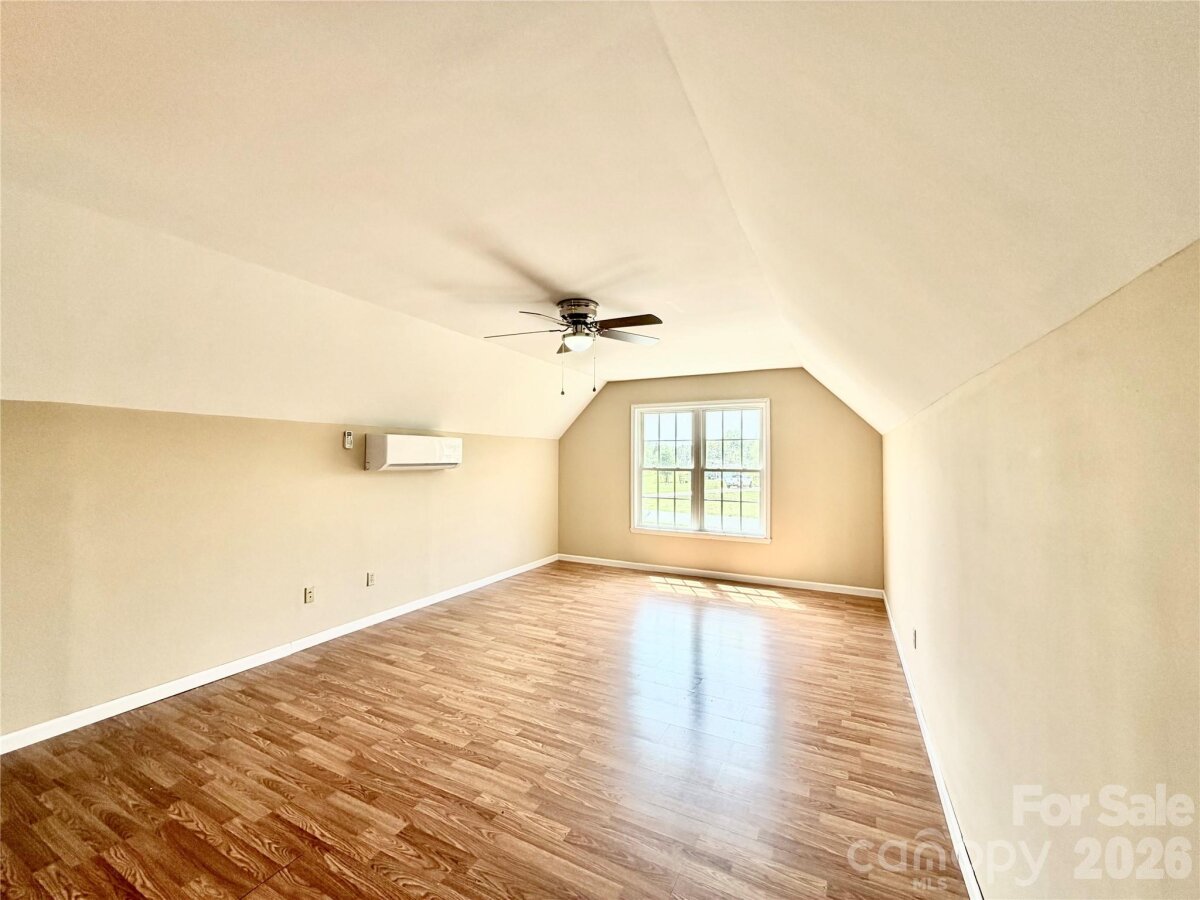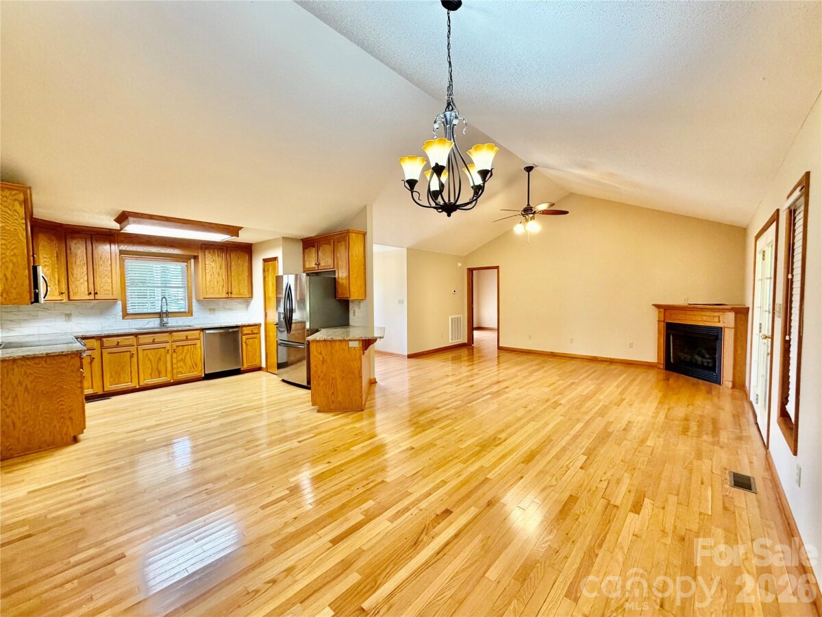 Beautifully updated 3-bedroom, 2-bath home featuring an open-concept layout, vaulted ceilings in the living and dining area, and a split-bedroom design for added privacy. Spacious living, dining, and kitchen areas flow seamlessly, complemented by hardwood floors throughout the main living areas and bedrooms. The primary bedroom offers a very large walk-in closet, while the secondary bedroom also features a good-sized walk-in closet, providing excellent storage throughout. Includes a large upstairs bonus room over the garage, ideal for an office, media room, or guest space, with its own door for added privacy. Enjoy a bright screened-in covered back porch-perfect for morning coffee and overlooking the fenced backyard. A nicely landscaped front yard enhances curb appeal. Recent updates include fresh paint, new toilet, microwave, and two new ceiling fans. Major Improvements include a garage door motor (April 2020), HVAC system (May 2020), roof replacement (2024), and garage door hinges replaced (December 2025).