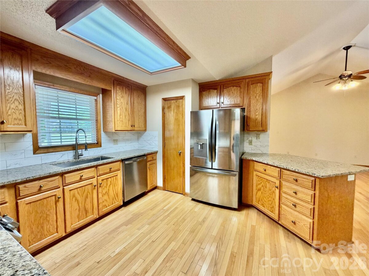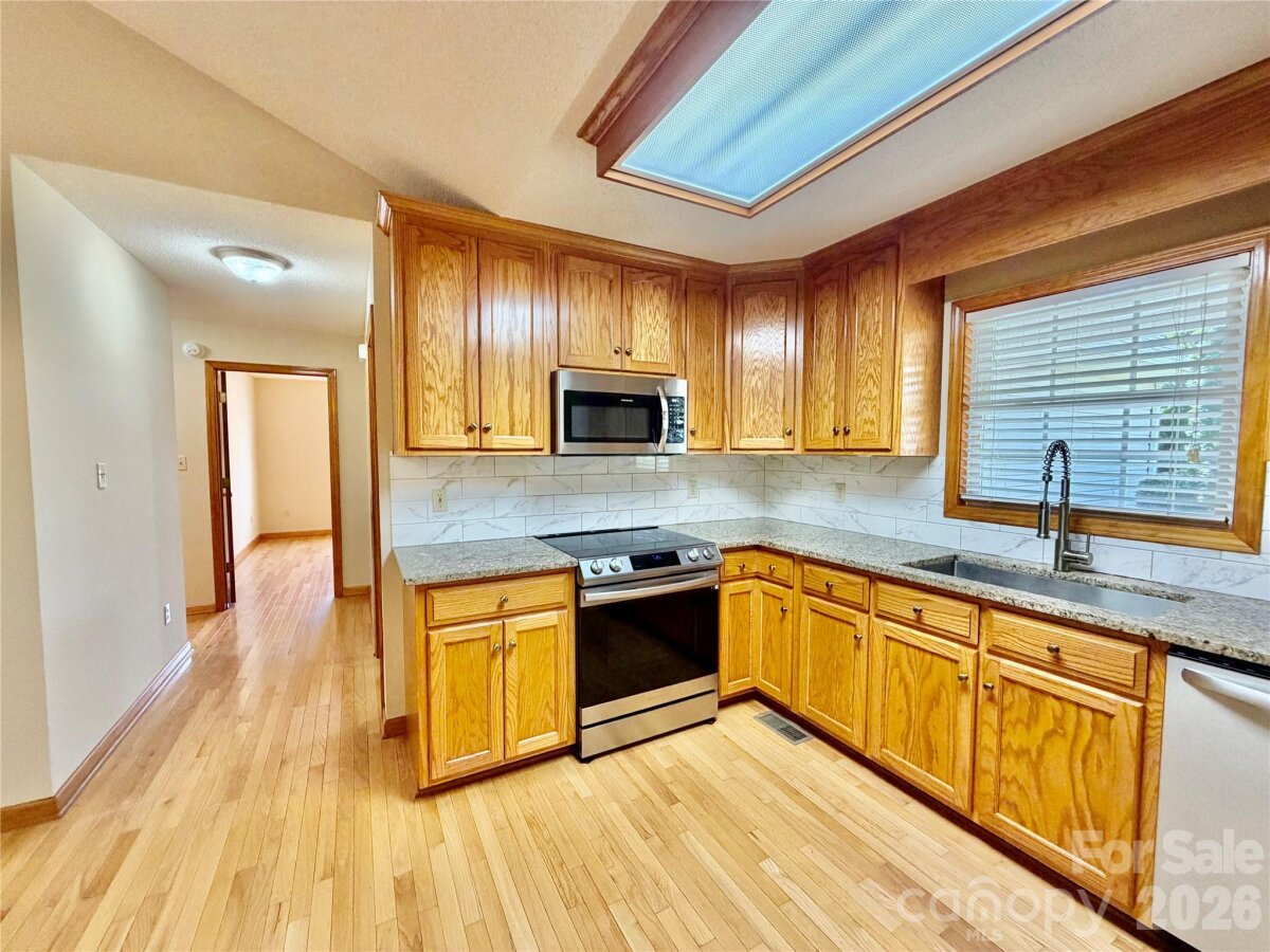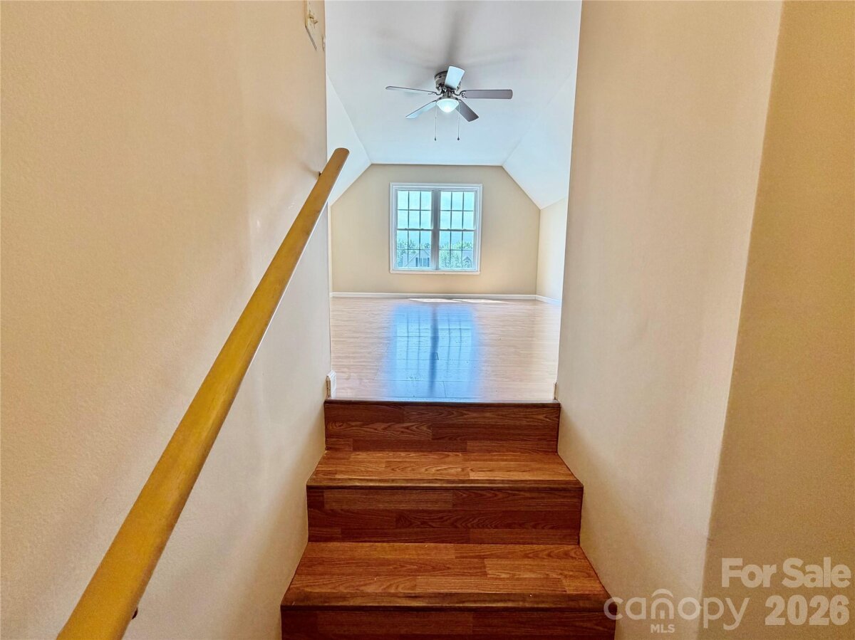 Beautifully updated 3-bedroom, 2-bath home featuring an open-concept layout, vaulted ceilings in the living and dining area, and a split-bedroom design for added privacy. Spacious living, dining, and kitchen areas flow seamlessly, complemented by hardwood floors throughout the main living areas and bedrooms. The primary bedroom offers a very large walk-in closet, while the secondary bedroom also features a good-sized walk-in closet, providing excellent storage throughout. Includes a large upstairs bonus room over the garage, ideal for an office, media room, or guest space, with its own door for added privacy. Enjoy a bright screened-in covered back porch-perfect for morning coffee and overlooking the fenced backyard. A nicely landscaped front yard enhances curb appeal. Recent updates include fresh paint, new toilet, microwave, and two new ceiling fans. Major Improvements include a garage door motor (April 2020), HVAC system (May 2020), roof replacement (2024), and garage door hinges replaced (December 2025).
