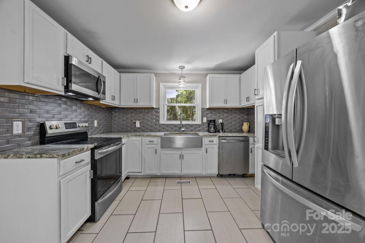 Charming 3BD/2BA brick ranch on a peaceful 0.46-acre lot just minutes from Ballantyne! Recently upgraded with a stylish kitchen featuring stainless steel appliances, granite-look countertops, and sleek subway tile backsplash. Spacious primary suite with a large bathroom and dual vanity. Brand-new HVAC system and air handling lines for comfort and efficiency. Enjoy serene views from the private back deck, perfect for outdoor living. NO HOA and zoned for top-rated SC schools. With mature trees and a quiet setting, this home blends location, upgrades, and lifestyle. Move-in ready and packed with value!