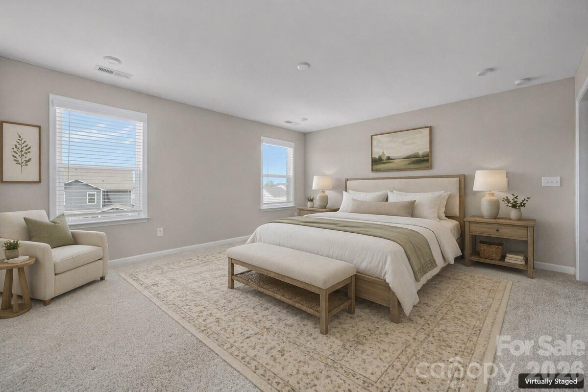 Set in the McCullough community, this 2022-built Pulte Waterstone offers a thoughtful 2-story layout with 5 beds, 4.5 baths, and over 3,300 sq ft of living space , beginning with a welcoming front porch that opens to a light-filled foyer flanked by a formal dining room and a flexible living space or office; the main level flows easily into an open kitchen anchored by an oversized island, gas cooktop, wall oven, and walk-in pantry, all overlooking a spacious great room with gas fireplace and a wall of windows that bring in natural light, while a drop zone and laundry room add everyday function; a main-level guest suite offers privacy with its own full bath; upstairs, the primary suite is set apart with a generous bedroom, large walk-in closet, and a well-appointed bath featuring dual vanities and a glass-enclosed shower, complemented by a loft-style bonus space and three additional bedrooms with en-suite full baths. Outside, a fully fenced backyard with patio creates a clean, usable outdoor setting, and the attached 2-car garage, all positioned on a level, private lot with access to neighborhood amenities including pool, clubhouse, tennis/pickleball courts, and fitness center.