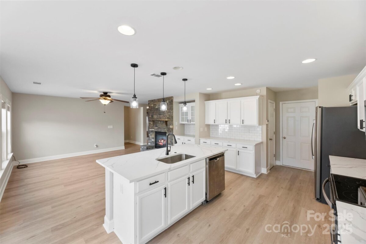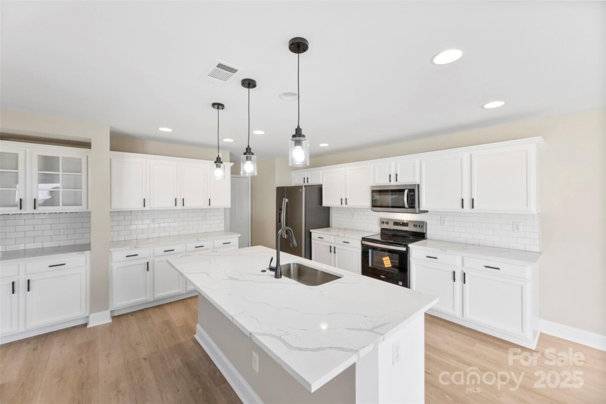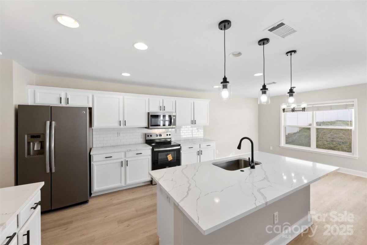 Check this Amazing Home out in the Waterlynn neighborhood. 5 Bedrooms plus a bonus room. Main level has a open floor plan with a living room, family room with stone fireplace/cabinetry or you could use as a dining area that flows into this fabulous kitchen with SS appliances and refrigerator included, white cabinets, backsplash, pendent lights, quartz countertops, kitchen island and breakfast area. Bedroom/office and half bath. Neutral paint throughout and tons of windows for natural light Second level has a bonus room, 4 bedrooms and laundry. Huge master with tray ceiling, walk in closet plus the masterbath has a garden tub with sep shower. Backyard has a great patio for cooking or entertainment and a fenced in back yard. Neighborhood amenities has a outdoor pool, sidewalks, street lights plus this home is convenient to Lake Norman. Location, Location. HVAC 2025