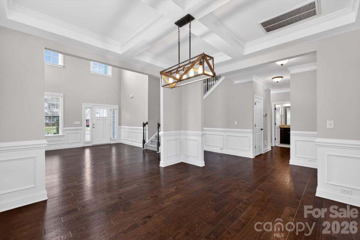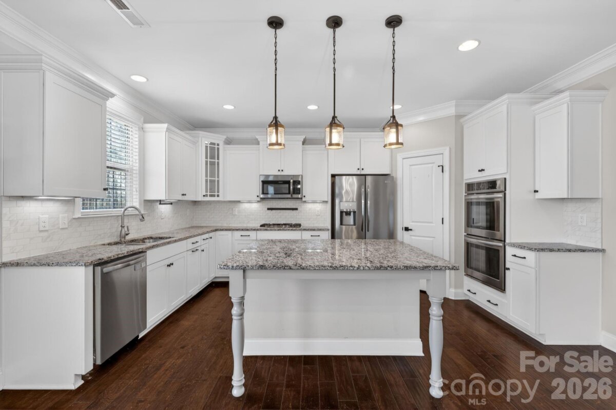 Spacious and beautifully appointed, this 5-bedroom, 4-bath home offers a versatile layout designed for both everyday living and elevated entertaining. Rich hardwood floors and abundant natural light highlight the open main level, featuring formal dining, expansive living areas, and a well-equipped kitchen with generous cabinetry, ample counter space, and a large island that anchors the heart of the home. A main-level guest suite adds flexibility, while upstairs you’ll find a generous primary retreat with a spa-inspired en-suite bath, along with additional bedrooms and well-designed secondary baths. The backyard provides plenty of room to relax, play, or host gatherings, completing a home that balances space, comfort, and modern functionality.