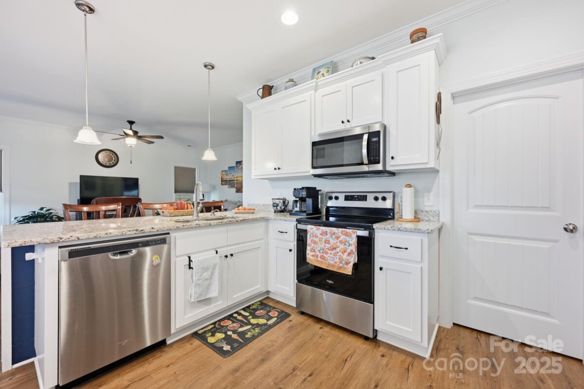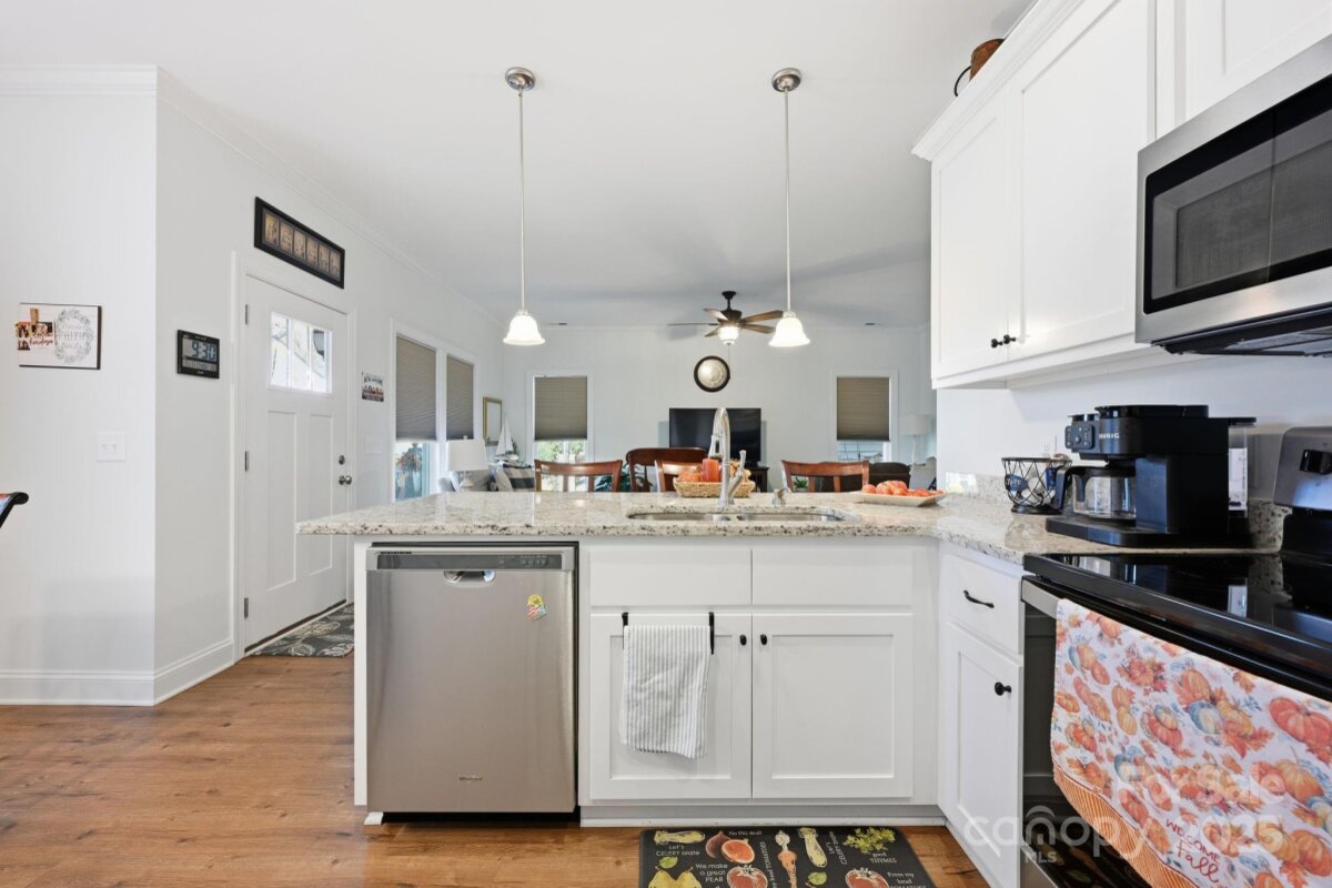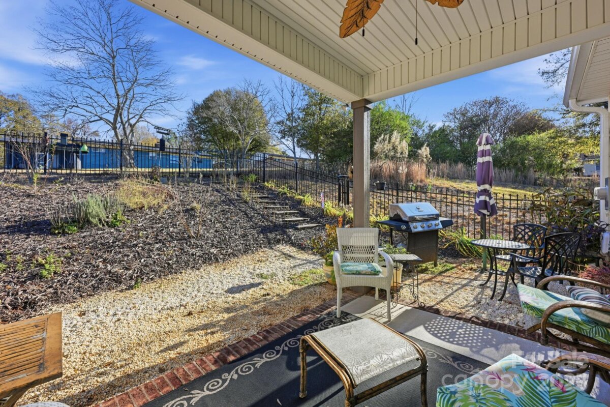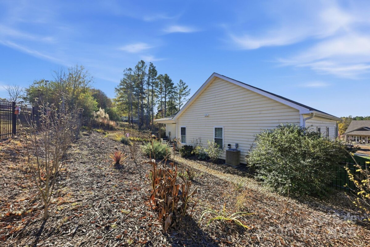 Welcome to Charleston Place, a 55+ community that offers convenient access to all the Locust has to offer with a low maintenance, quiet and peaceful setting. This home was built in 2022 and has been gently lived in and meticulously maintained since it was originally purchased in November 2022. If you are looking for a new construction feel, without the wait, this home is a perfect fit. The master bedroom includes a large walk-in closet, has direct access to the master bathroom as well as direct access to the back covered porch area and fenced in back yard. The master bathroom was thoughtfully built with dual vanities and includes granite counter tops that are also located throughout the home. The home has a very open concept, 9-foot ceilings, a dedicated laundry room that also leads to a large 2 car attached garage. The kitchen offers soft close cabinets, and stainless-steel appliances. The home has both covered front and back porch areas great for sitting and enjoying the day. Book your showing today!
