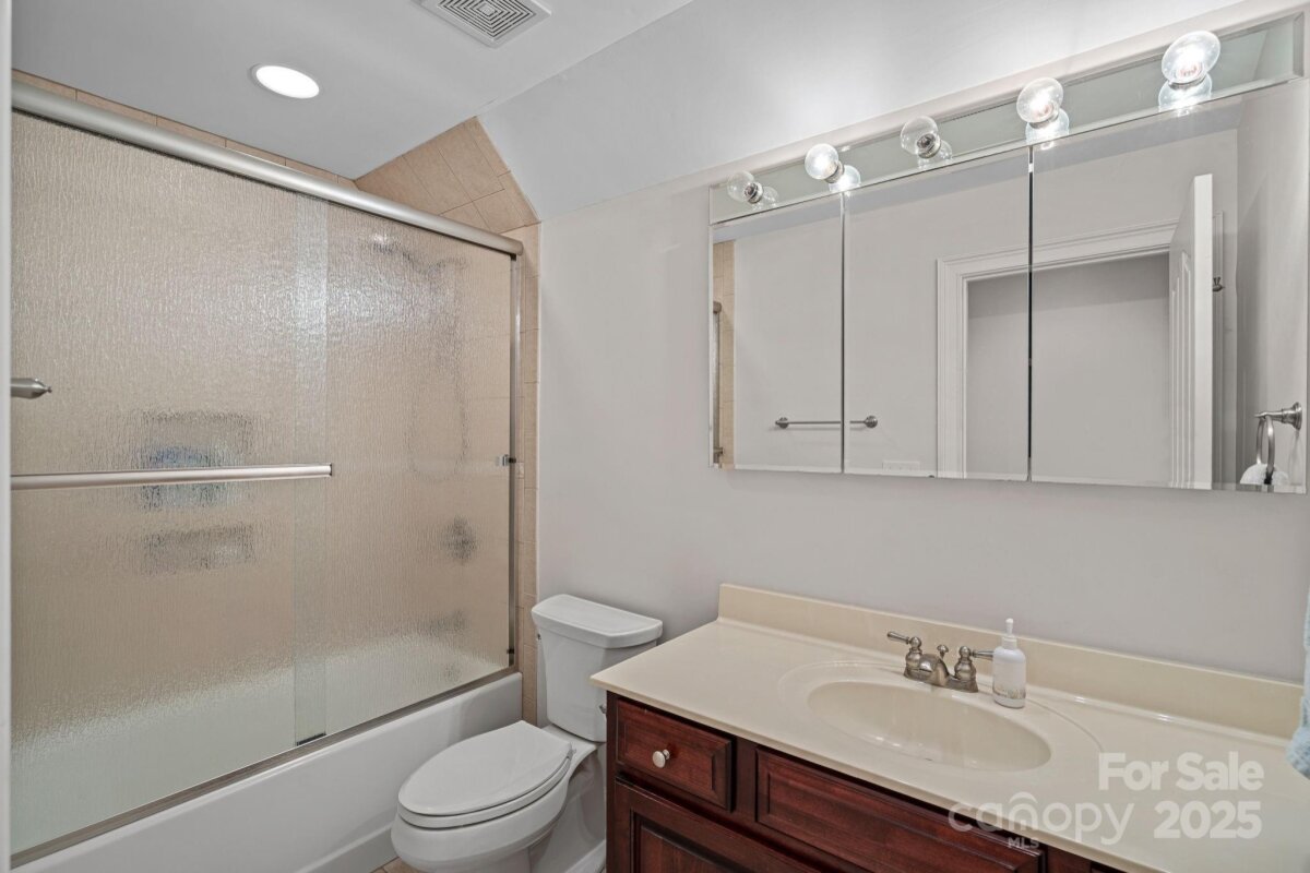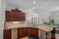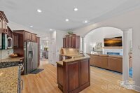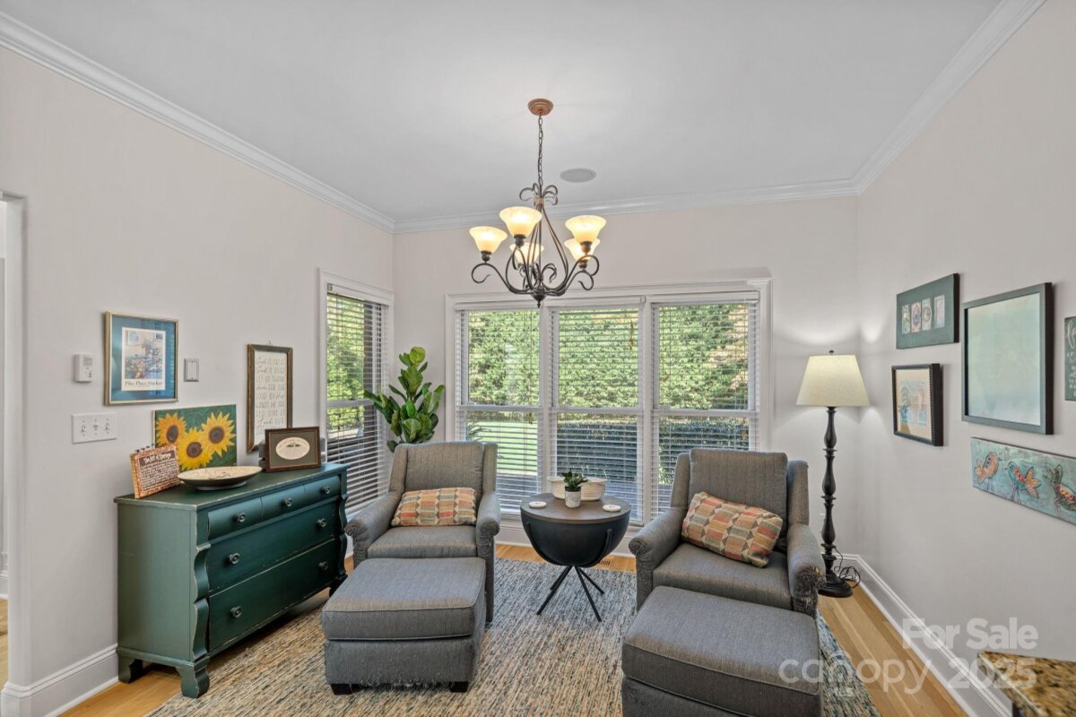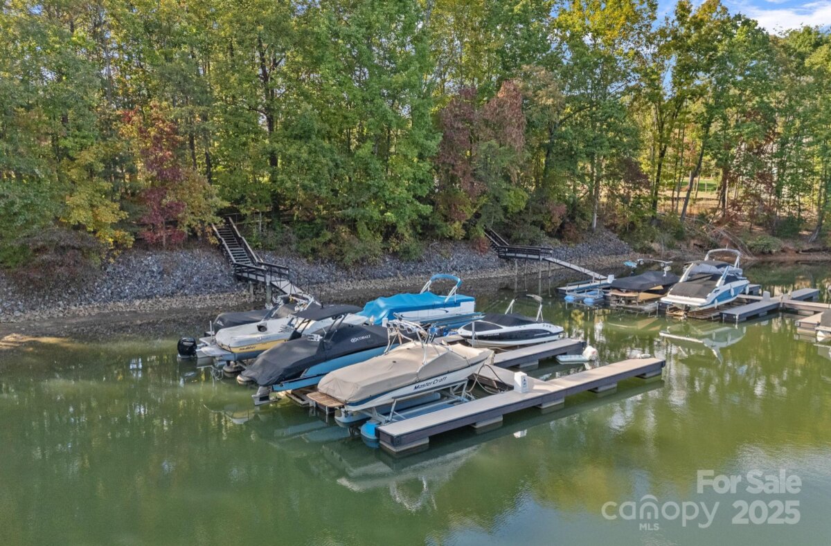 Welcome to this elegant, full-brick estate, nestled in a serene, park-like setting within the desirable Wildwood Cove community. This retreat offers the best of both worlds: peacefully situated between Mooresville and Troutman, yet just minutes from vibrant shopping and dining options. Step inside the bright, open entry foyer, where abundant natural light and soaring ceilings create an immediate sense of grandeur. Discover a ophisticated design characterized by trey ceilings and a practical split-bedroom floor plan on the main level. The expansive primary bedroom is a true sanctuary, featuring a large en-suite bath for ultimate relaxation and peaceful views of the nearly 1-acre backyard. Main-level convenience is key, with a large laundry room, a private office, and two additional bedrooms sharing a full bathroom. The heart of the home is the gourmet kitchen, boasting granite countertops and rich cabinetry. A charming breakfast or sitting area sits just off the kitchen, offering continuous, peaceful views of the lush, park-like backyard. Step outside to the covered back patio, the perfect venue for outdoor entertaining or quiet relaxation amid the meticulously maintained grounds. The upper level expands the living space dramatically. It includes a media room, a full bathroom, and two large bonus rooms, offering endless possibilities as a home gym, hobby space, or secondary living areas. A fantastic bonus for water enthusiasts: a deeded boat slip is just a short walk or drive away, providing easy access to the lake. This home beautifully balances sophistication, comfort, and the alluring lakeside lifestyle.