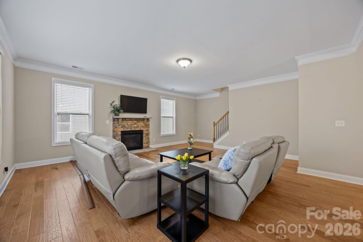 Beautifully maintained 4-bedroom, 3.5-bath home offering roughly 3,000 square feet of thoughtfully designed living space in a desirable Charlotte location. Step inside to an open and inviting floor plan with spacious living areas ideal for everyday living and entertaining. The chef-inspired kitchen features granite countertops, custom tile backsplash, dual ovens, ample cabinetry, and under-cabinet lighting for a warm, elegant touch. A bright sunroom provides the perfect spot to relax with morning coffee, read, or enjoy peaceful views year-round. Flexible living spaces throughout the home offer room for guests, work, or recreation. Outside, enjoy a private fenced backyard perfect for gatherings or quiet evenings outdoors. Located in the Berewick community, residents enjoy outstanding amenities including a clubhouse, resort-style pool, fitness center, playgrounds, walking trails, and sports courts. Convenient to shopping, dining, major highways, and the airport. Move-in ready and refreshed, ready for you to make it your own.