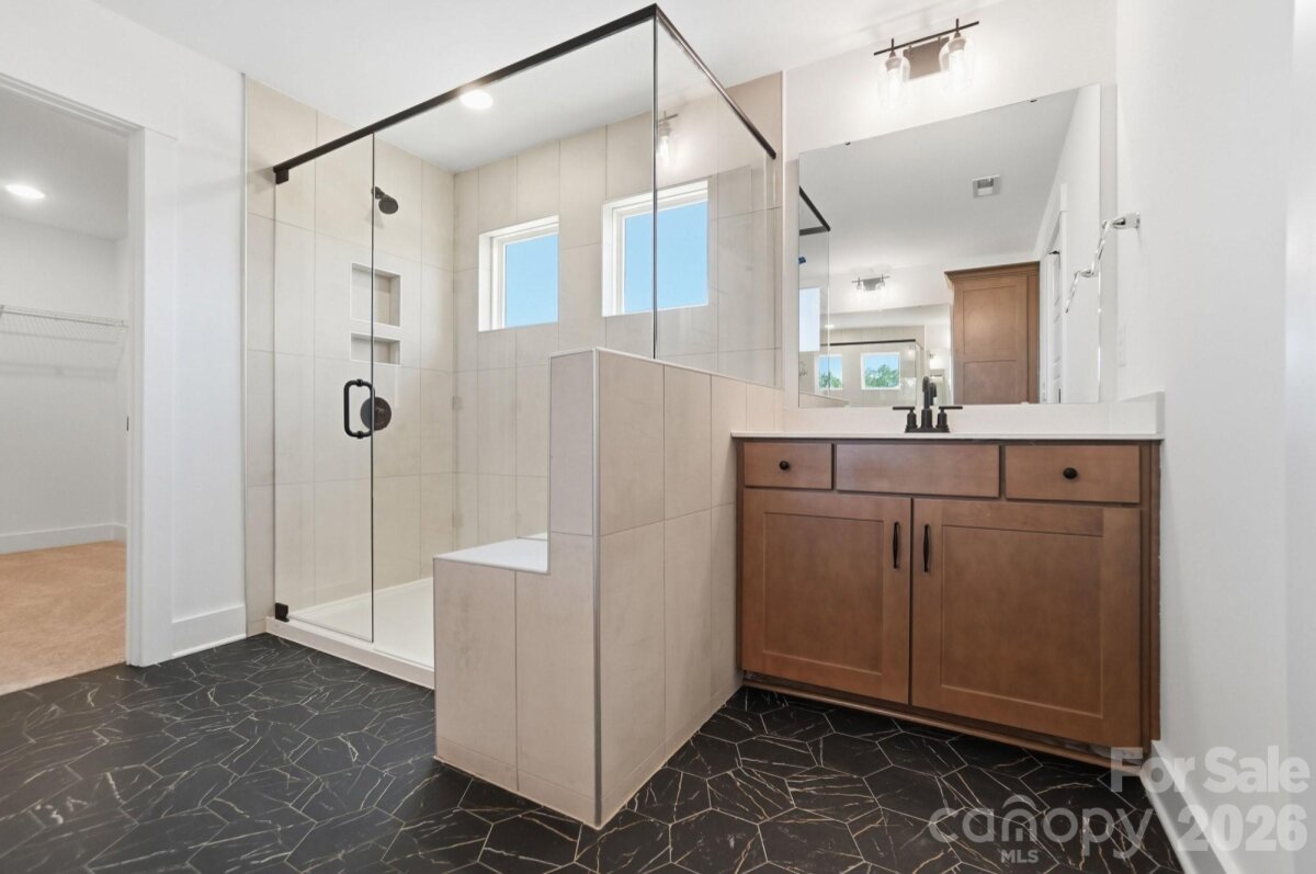 Tranquility plus convenience equals your new home in Mint Hill! This beautiful community features large homesites with easy interstate access. Homesite 55 features a 3-story Davidson plan with 4 bedrooms, 3 full baths, a 3-car garage, and more than 3,400 square feet of living space on a 1-acre lot. The main floor features a family room with an Allusion electric fireplace surrounded by a shiplap feature wall with wooden mantel. The designer kitchen has white cabinets with a contrasting-color island, quartz counters, a tile backsplash, and stainless appliances, including a range hood and electric cooktop. The kitchen is connected to the dining room with a butler pantry that has upper and lower white cabinets & quartz counters to match the kitchen decor. The main floor also has a guest bedroom, a full bath with a tiled, 4-ft shower, and mud room with a beadboard drop zone. The second level includes a loft, two secondary bedrooms, a full bath with tub/shower combo, and the primary suite with a tiled, luxury shower with bench seat & semi-frameless door. The third floor has a large bonus room with 375 square feet. Enjoy the outdoors on the rear covered porch or the paver patio with firepit & seating wall. Visit today and find out more!