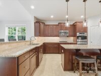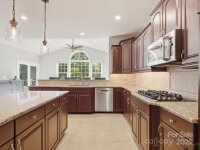 Welcome to 10834 Stone Bunker Drive, where timeless design, comfort, and a beautiful golf course setting come together in the Olde Sycamore community. Located in the Mint Hill area, this home offers a Charlotte address while being situated in Union County, providing lower county taxes and access to Union County Public Schools. From the moment you arrive, the curb appeal stands out — featuring a wide covered front porch with ceiling fans, ideal for relaxing and enjoying the view of the tree-lined street. Step inside to a bright and open floor plan designed for both everyday living and entertaining. The chef’s kitchen is the heart of the home, showcasing a large island, dual wall ovens, a gas cooktop, touch faucet, and a walk-in pantry. It flows seamlessly into the two-story great room, where large windows fill the space with natural light and a gas fireplace adds warmth and charm. Adjacent to the kitchen, a sunroom provides the perfect spot for casual dining or morning coffee overlooking the golf course. The main level also includes a formal dining room, a front living room that can easily function as a home office, and a flex room currently used as a home gym but perfect for guests or hobbies. Upstairs, the primary suite offers a spacious retreat complete with a sitting area, dual closets (one walk-in), and a spa-like bath featuring dual vanities, a soaking tub, and a separate shower. Two additional bedrooms, a full bath, a large bonus/bedroom, and a convenient laundry room with a sink connection complete the upper level. Outdoor living is a highlight of this home. Enjoy panoramic golf course views from the cedar deck overlooking the 12th fairway, or host gatherings by the stone fireplace on the stamped concrete patio below. The peaceful, landscaped yard provides privacy while still offering beautiful views of Olde Sycamore’s greens and fairways. This home combines classic style, practical design, and the relaxed charm of golf course living. With new carpet, move-in-ready condition, and a highly maintained interior and exterior, 10834 Stone Bunker Drive offers comfort, convenience, and the best of life in Union County — just minutes from Mint Hill and South Charlotte amenities.