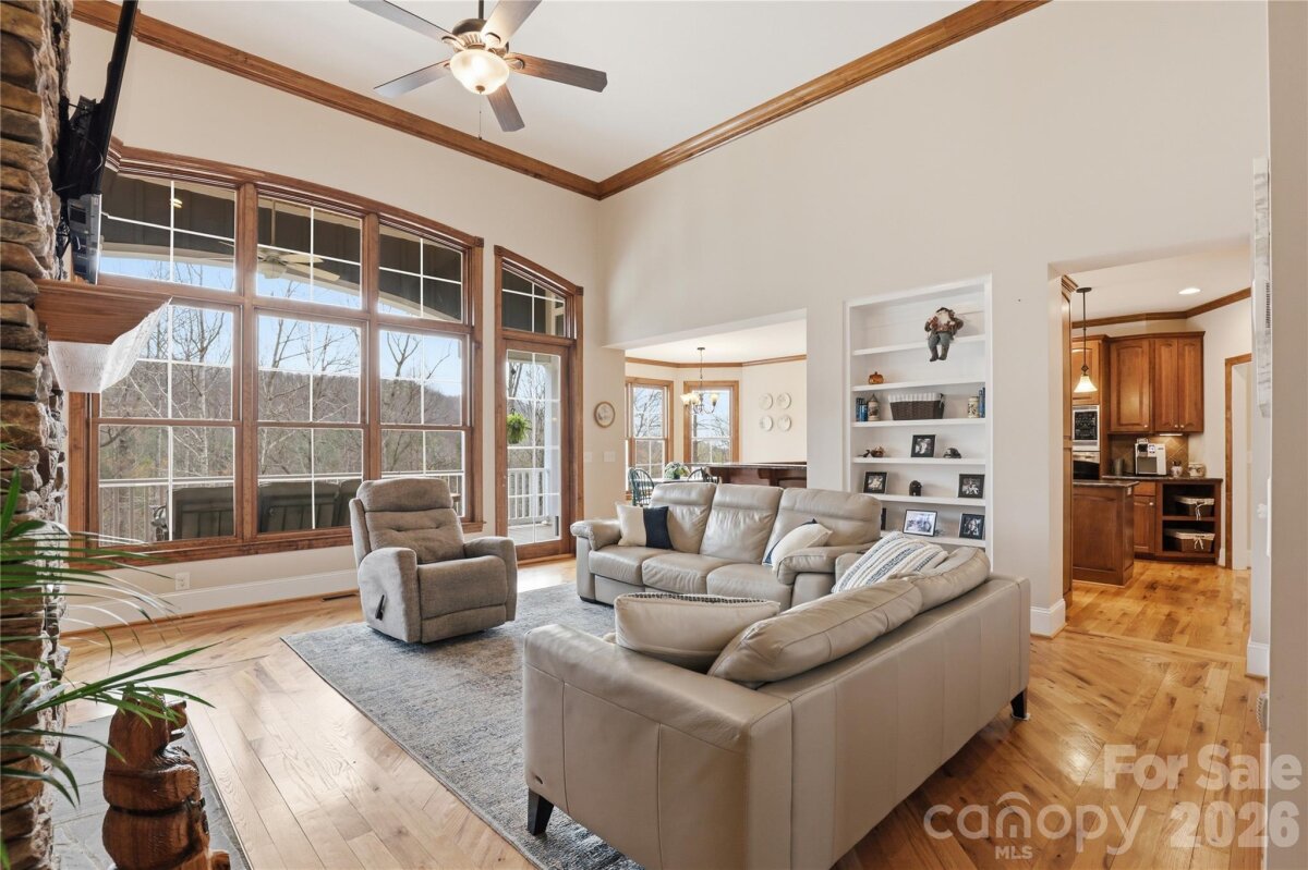 Tucked away in the serene beauty of Moravian Falls, this property is a rare mountain retreat offering unmatched privacy, natural surroundings, and over 22 acres across two parcels. With more than 3,000 square feet of heated living area spanning three levels, this home blends refined craftsmanship with the tranquility of nature. Step inside the main level, where soaring 16-foot ceilings and expansive windows flood the home with natural light. Rich red oak hardwood floors lead you through an open, inviting layout featuring a spacious living room anchored by a stunning stone fireplace with vented gas logs. The kitchen is thoughtfully designed with cherry cabinetry, granite countertops, a breakfast bar, and a charming bay window nook overlooking the landscape. The main-level primary suite offers comfort and elegance with trey ceilings, and a bathroom with dual closets and a soaking tub. A main level dedicated office and convenient half bath add flexibility for work or guests. Upstairs, a finished room over the garage provides additional living space perfect for a bonus room, studio, or guest retreat. The walk-out lower level features 10-foot ceilings, two additional bedrooms, and two full bathrooms, along with the option for a second primary suite—ideal for multi-generational living or extended stays. Step outside to the patio and immerse yourself in the peaceful surroundings. Enjoy mountain views from the covered rear deck, or unwind in the picturesque meadow complete with a fire pit and covered RV storage. The home features an attached 2 car garage as well as a detached 34'x 20.5' garage/workshop. The basement features an additional 856 SQFT of unfinished workspace or storage. Abundant wildlife and underground utilities enhance the sense of seclusion without sacrificing modern convenience—including fiber optic internet and a location just 15 minutes from town. This one-of-a-kind property offers the perfect balance of luxury, privacy, and natural beauty—an extraordinary place to call home.