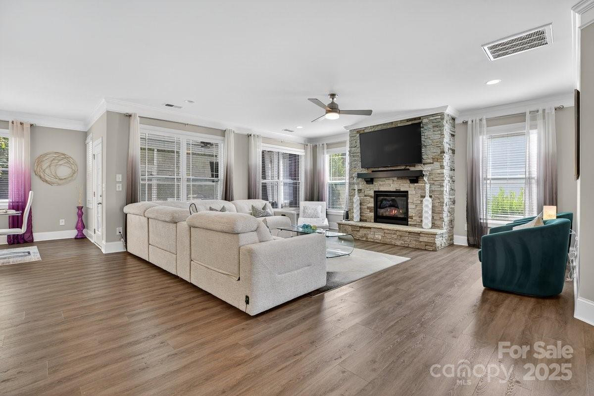 Welcome home! This luxurious floor plan offers gracious style and flexible space w/ a spacious kitchen at the heart of the main living area featuring an oversized island open to the family room. Family Room accented by a stone surround raised hearth fireplace. Owners Suite, Bedroom 2 and Flex Space provides the ever popular “ranch style†living with the convenience of Bedroom 3, Bonus Room & fitness room on upper level. Owners suite luxury bath highlights a lovely tile surround shower w/seat & a large, deck mounted tub! The large screened porch easily expands your living space outdoors every day! Incredible “Come and check out this Luxurious Home!â€