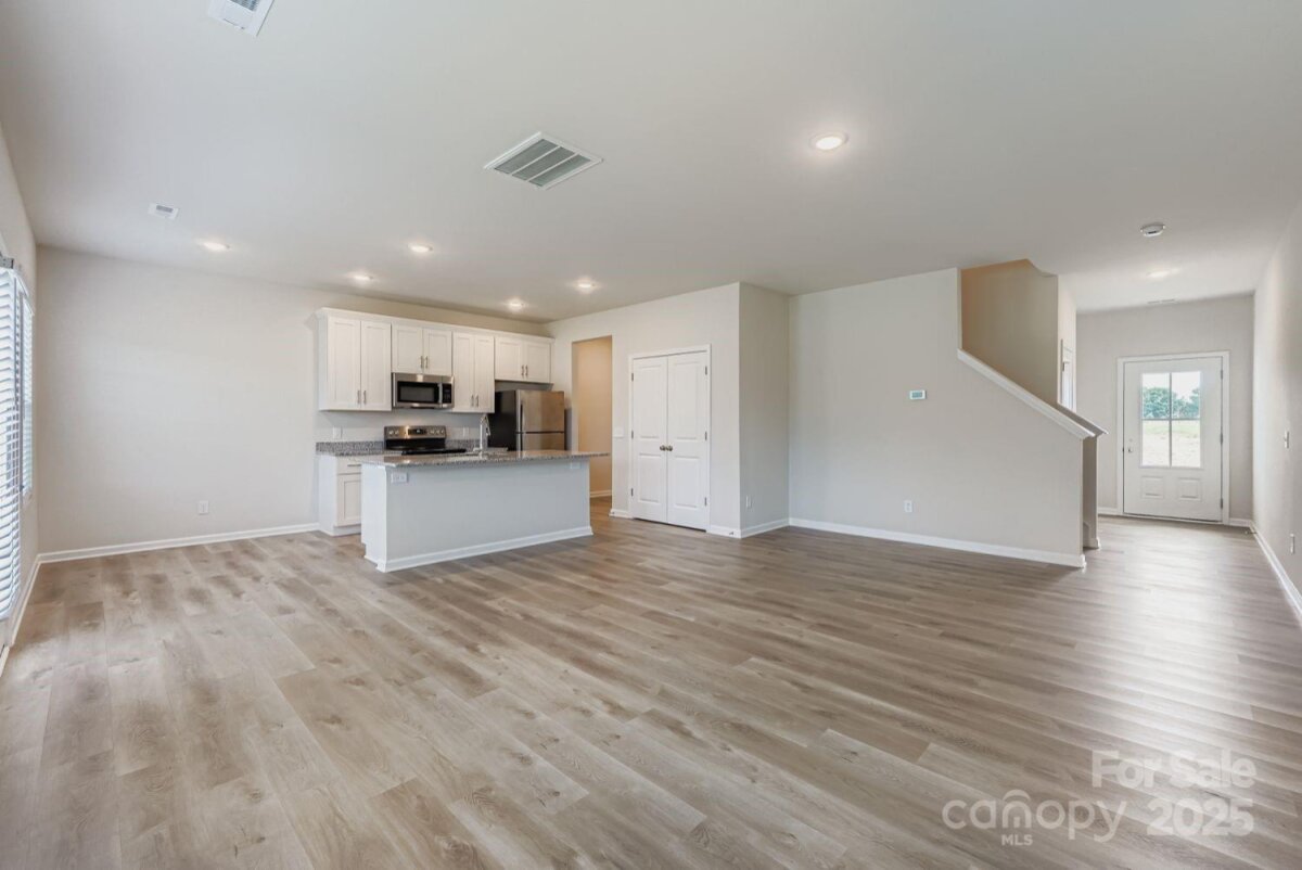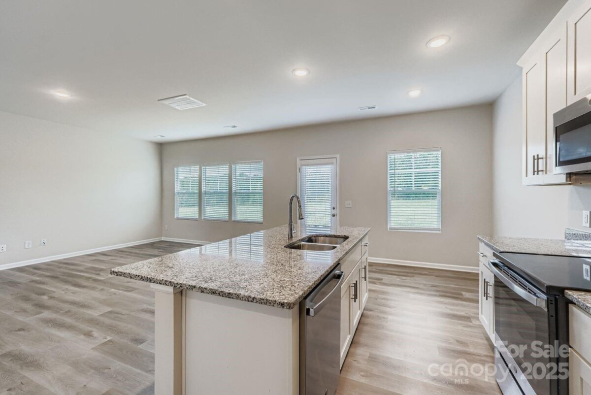 Your New Home Awaits! Built in 2023, this inviting two-story home offers modern design, practical living spaces, and quality finishes—perfect for first-time buyers ready to put down roots. Situated on a 0.52-acre lot, you’ll enjoy extra outdoor space without feeling crowded by neighbors. Step inside to a welcoming foyer that flows into a bright, sun-filled great room—ideal for both everyday living and entertaining. The open kitchen boasts white cabinets, granite countertops, a large island, a pantry, stainless steel appliances, a breakfast bar, and a cozy breakfast area overlooking the backyard. Upstairs, the primary suite is a true retreat, featuring two walk-in closets and a private bath with white cabinetry, granite counters, dual sinks, and a tub/shower combo. Two additional bedrooms share a full bath with matching finishes. With no carpet anywhere and vinyl plank flooring throughout, the home is both stylish and easy to maintain. Additional highlights include a 2-car garage with an opener and Convenient access to I-40 for easy commuting. Move-in ready and worry-free, this home combines the advantages of newer construction with a functional layout designed for comfort and convenience.