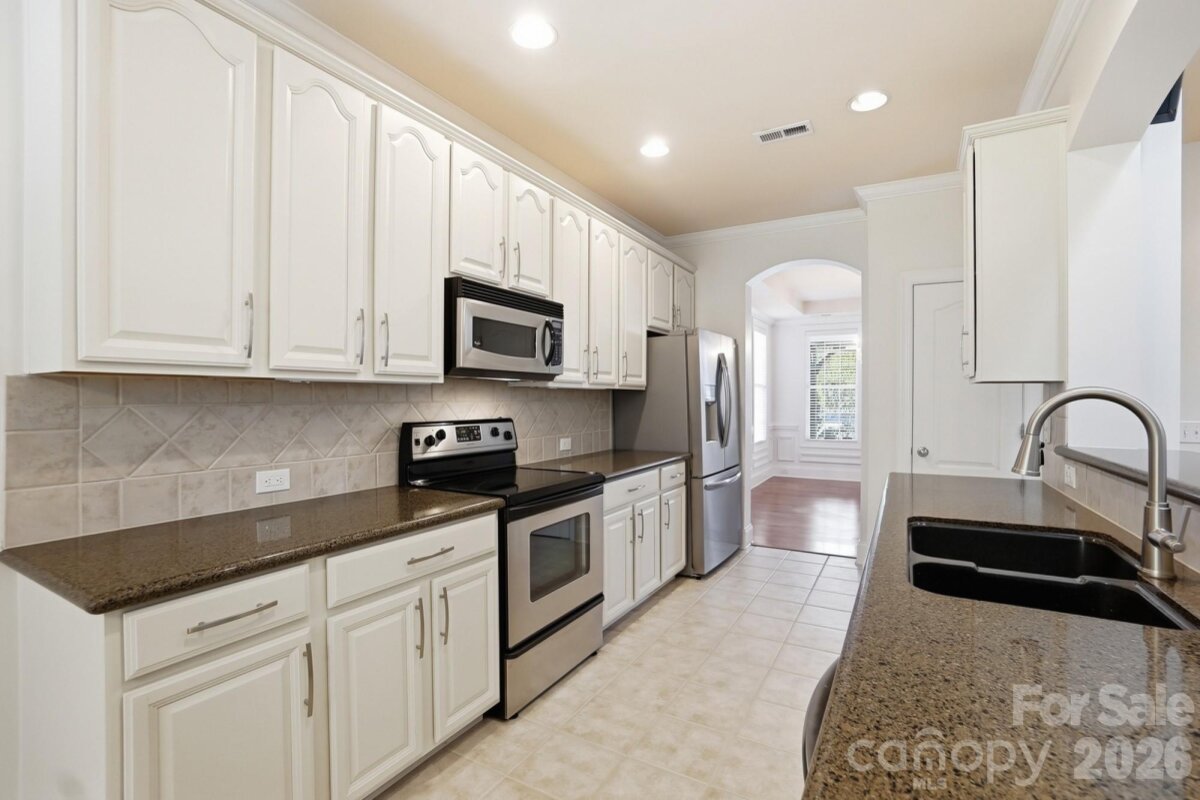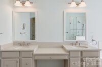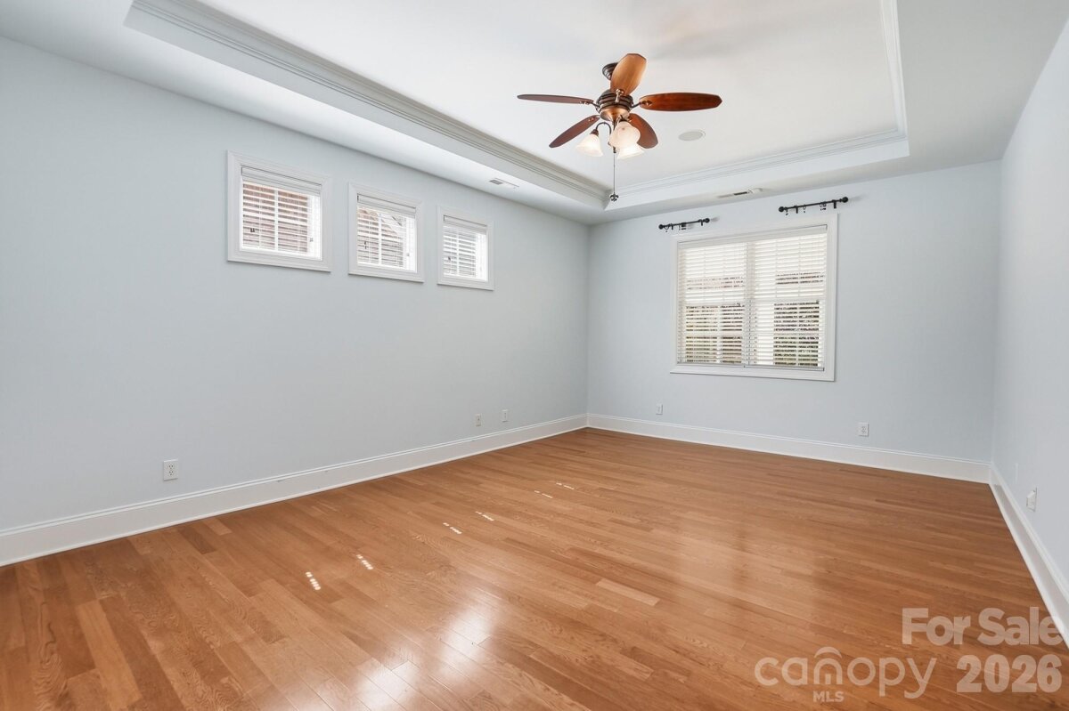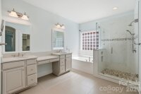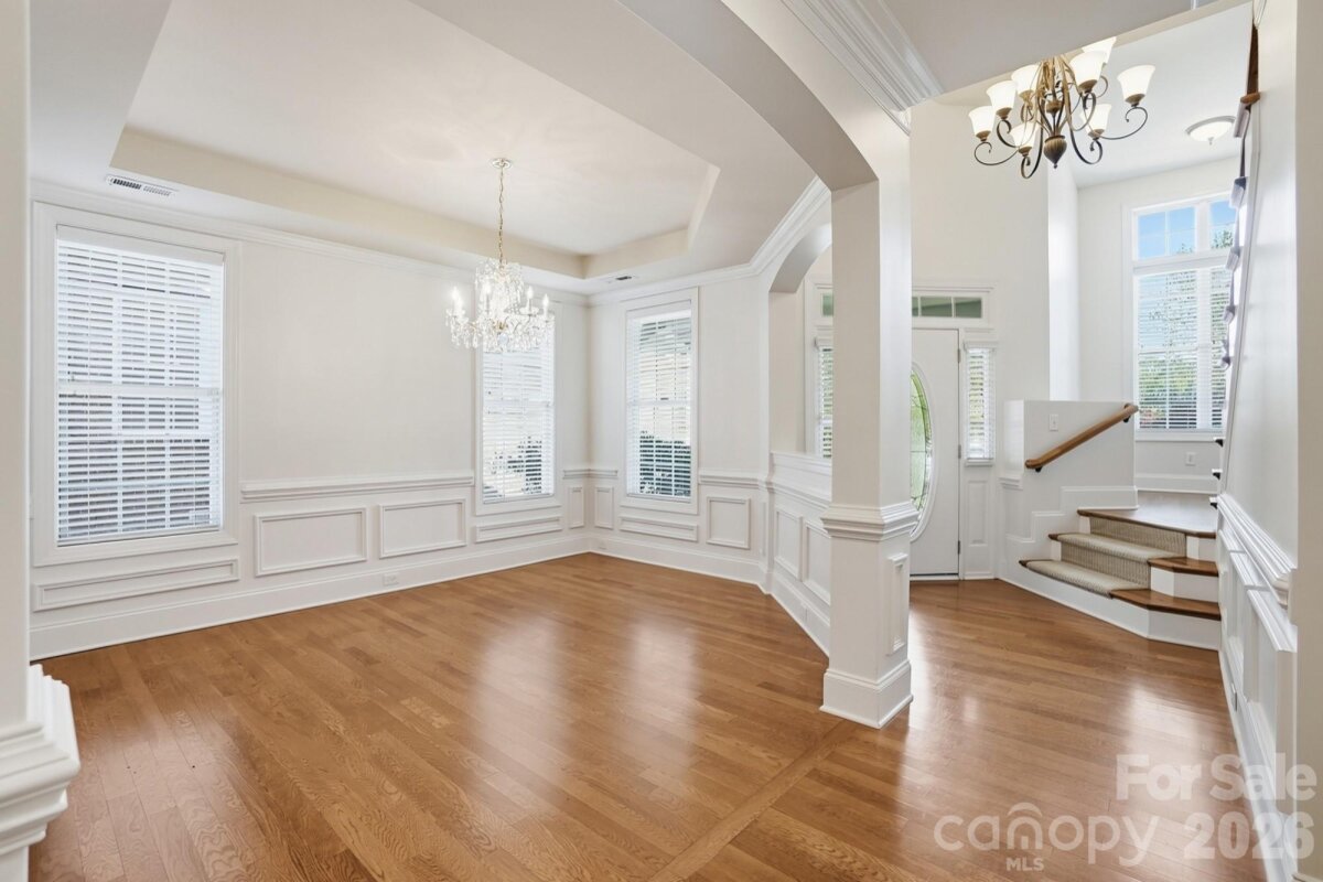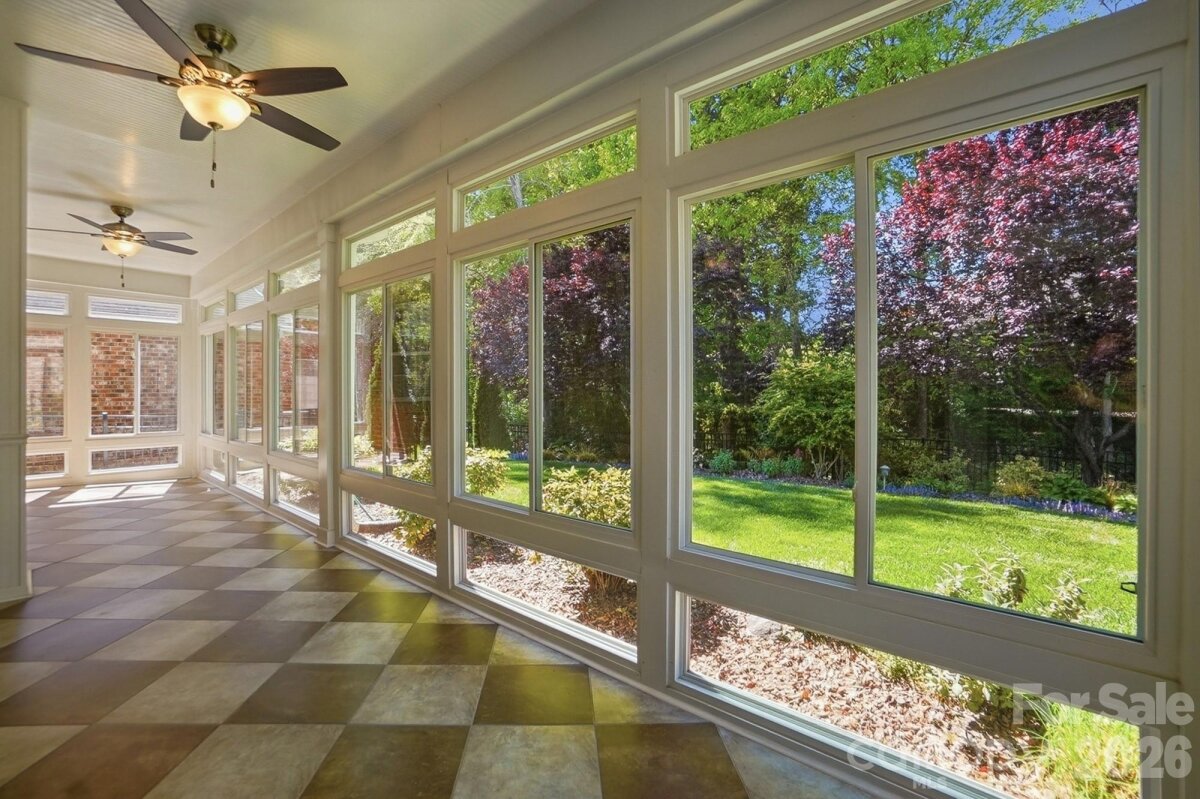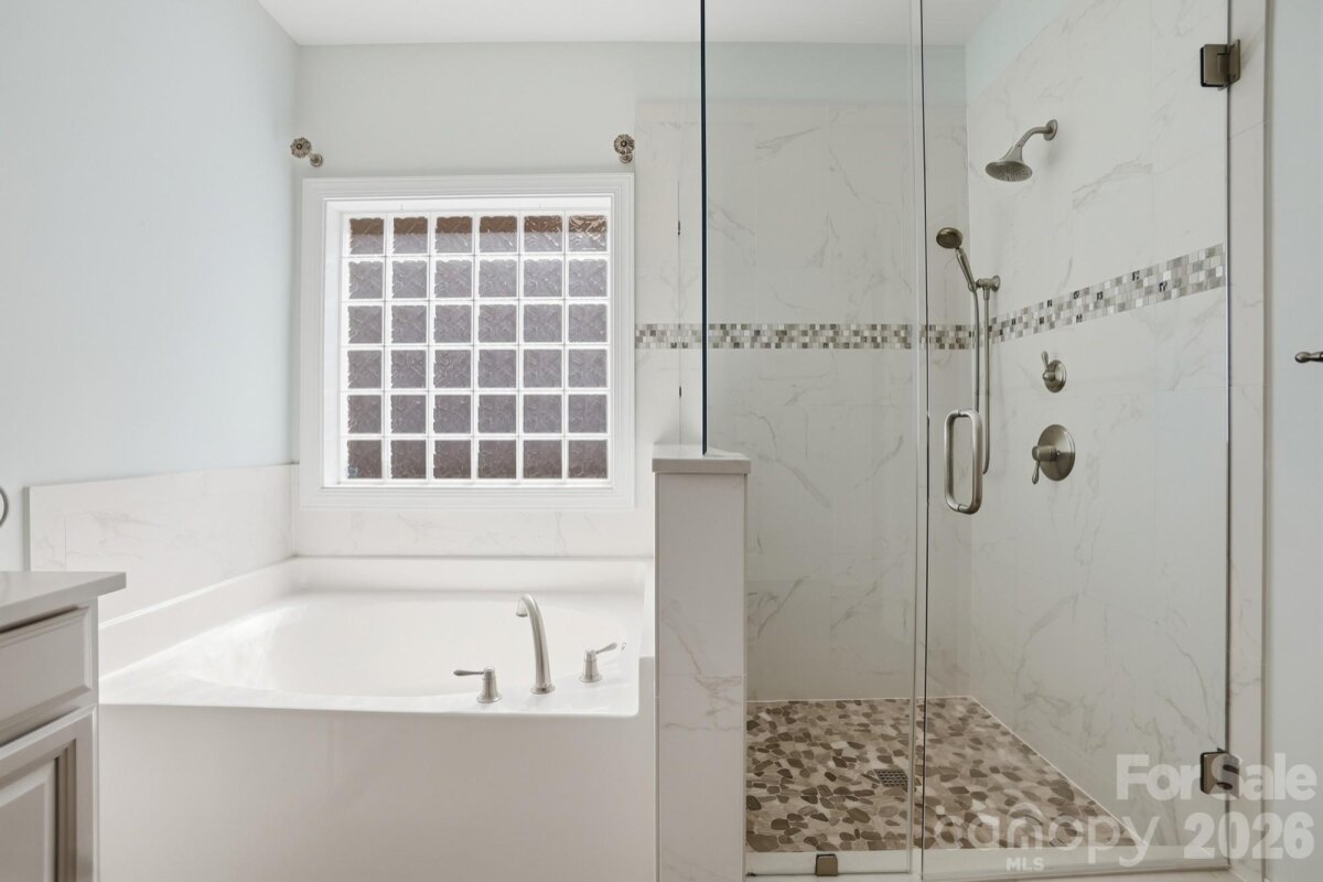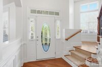 WE ARE BACK WITH A FRESH NEW LOOK! Sherwin Williams SW9583 Sanctuary warm neutral paint now applied to this fabulously upgraded full brick/stone home in the premier Saddlebrook Community of Stone Creek Ranch. Great curb appeal with lush landscaping, a flagstone front patio, and a beautiful leaded-glass entry door. Step inside to a dramatic two-story foyer with hardwood stairs, runner, wrought iron balusters, and lots of hardwoods. Enjoy a formal dining room with tray ceiling, a cozy great room with fireplace, powder room, and a functional laundry/mudroom with storage. The kitchen offers generous workspace and style with Silestone counters, stainless steel appliances, smooth-top range, 42†cabinetry, deep sink, and excellent pantry space. Fantastic owner’s suite (with more hardwoods) includes an updated/remodeled bath with dual vanities plus makeup area, soaking tub, a large frameless-glass walk-in shower, custom tile, and a walk-in closet with organizers. Upstairs, you’ll find a spacious landing with hardwoods, large secondary bedrooms with walk-in closets, a hall bath with double sinks, and exceptional storage. Beautiful 285 sq ft tiled sunroom with ceiling fans plus a travertine patio overlook a fenced, manicured backyard backing to a wooded common area for privacy. Insulated garage door & irrigation. Roof (2020); HVAC and water heater (2022). HOA covers yard maintenance, shrubs & pine straw. Stone Creek Ranch amenities include a clubhouse, pool, and playground, all minutes to I-485 and the shops/dining/entertainment of Stonecrest, Rea Farms, Waverly, and Blakeney. Must see!