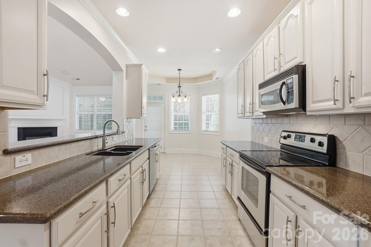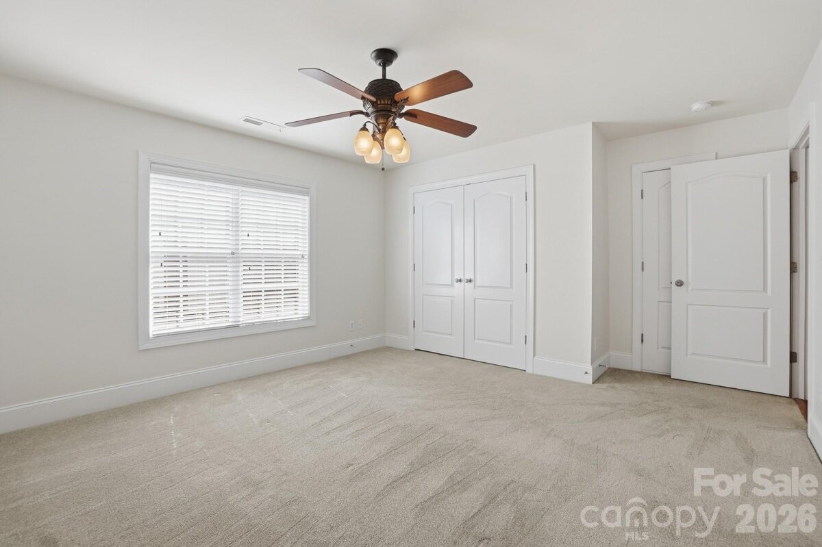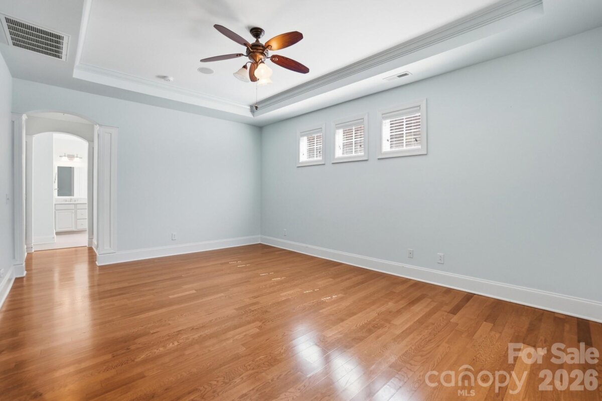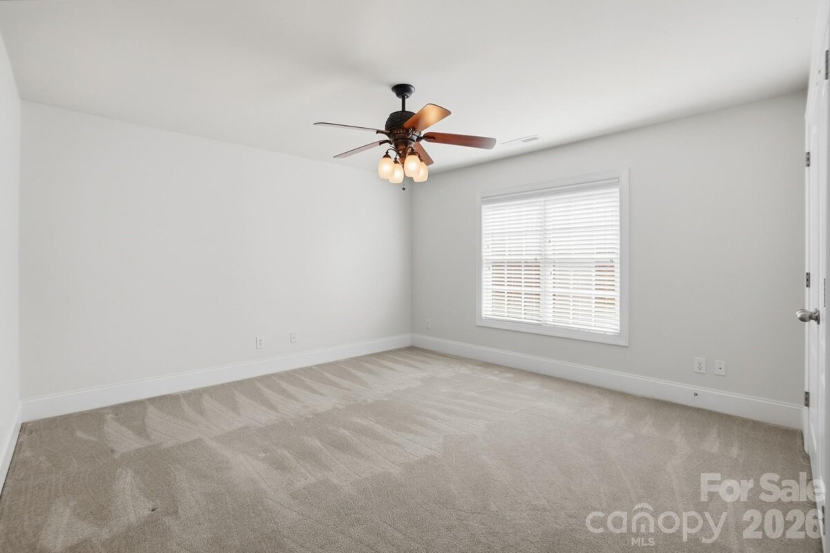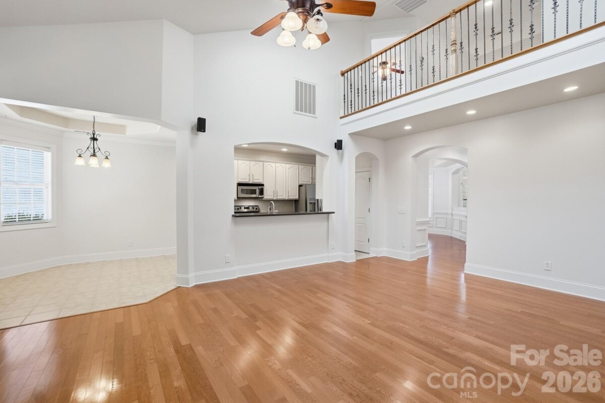 WE ARE BACK WITH A FRESH NEW LOOK! Sherwin Williams SW9583 Sanctuary warm neutral paint now applied to this fabulously upgraded full brick/stone home in the premier Saddlebrook Community of Stone Creek Ranch. Great curb appeal with lush landscaping, a flagstone front patio, and a beautiful leaded-glass entry door. Step inside to a dramatic two-story foyer with hardwood stairs, runner, wrought iron balusters, and lots of hardwoods. Enjoy a formal dining room with tray ceiling, a cozy great room with fireplace, powder room, and a functional laundry/mudroom with storage. The kitchen offers generous workspace and style with Silestone counters, stainless steel appliances, smooth-top range, 42†cabinetry, deep sink, and excellent pantry space. Fantastic owner’s suite (with more hardwoods) includes an updated/remodeled bath with dual vanities plus makeup area, soaking tub, a large frameless-glass walk-in shower, custom tile, and a walk-in closet with organizers. Upstairs, you’ll find a spacious landing with hardwoods, large secondary bedrooms with walk-in closets, a hall bath with double sinks, and exceptional storage. Beautiful 285 sq ft tiled sunroom with ceiling fans plus a travertine patio overlook a fenced, manicured backyard backing to a wooded common area for privacy. Insulated garage door & irrigation. Roof (2020); HVAC and water heater (2022). HOA covers yard maintenance, shrubs & pine straw. Stone Creek Ranch amenities include a clubhouse, pool, and playground, all minutes to I-485 and the shops/dining/entertainment of Stonecrest, Rea Farms, Waverly, and Blakeney. Must see!