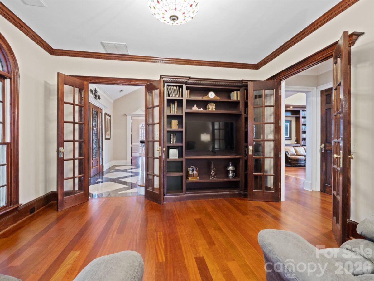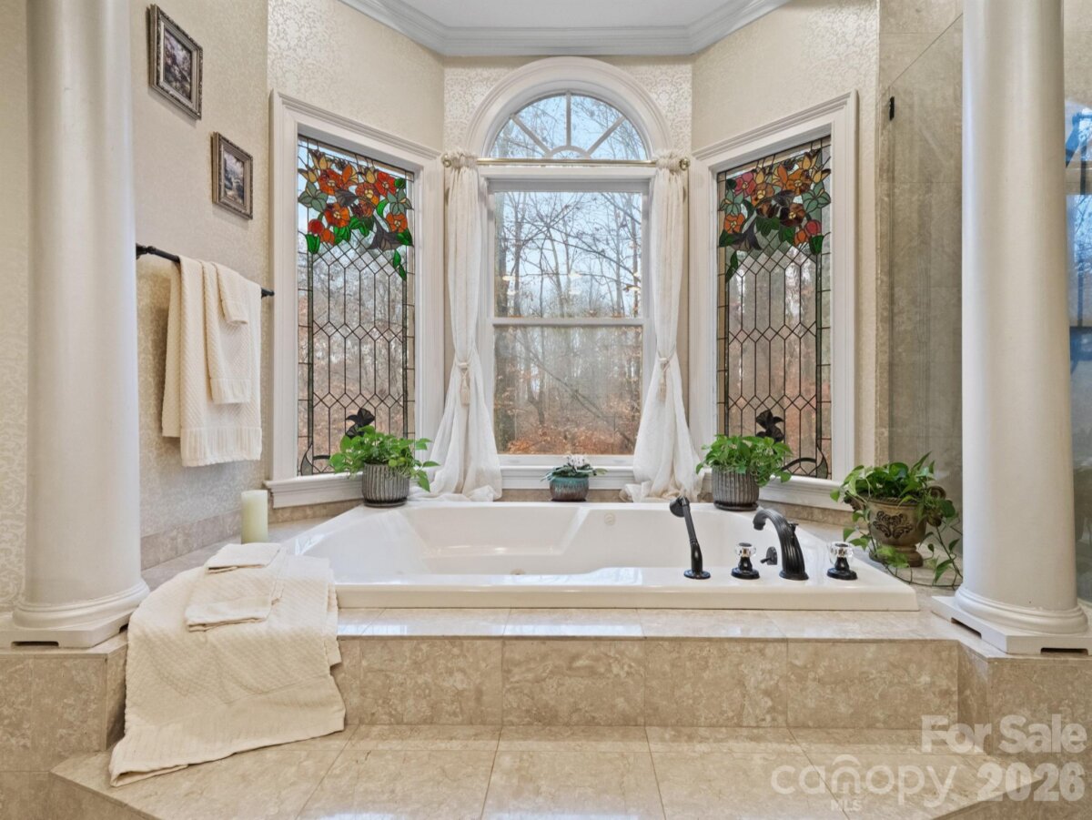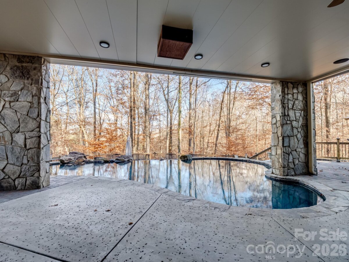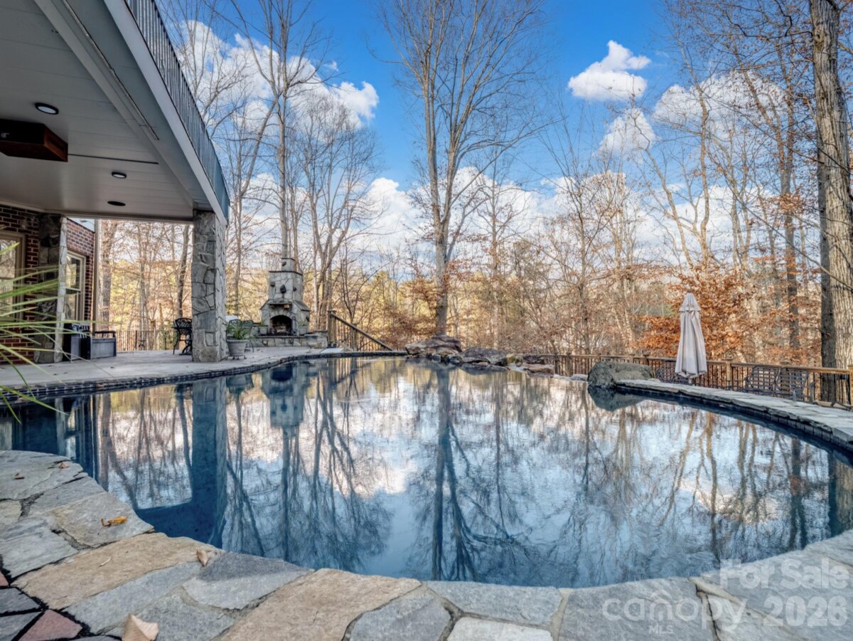 A rare opportunity awaits to own this gated 26-acre estate, seven springs on Lake Norman, complete with a private boat dock. The property showcases exceptional features, including a 2-acre spring-fed pond, a spacious 1,678 sq. ft. detached garage/workshop adaptable for multiple uses, former horse stalls, and a charming potting shed or she-shed. Ideally situated just outside the Long Island Airport strip, this remarkable estate offers endless possibilities and areas to explore. Additional amenities include state-of-the-art surround sound, a whole-home generator, an electric vehicle charging station in the garage, fruit trees, a full home theater in the basement with a 3D projector, and solid mahogany doors throughout. The outdoor living area is truly extraordinary, featuring a resort-style saltwater pool with waterfall and spa, a built-in grill, an outdoor fireplace, and a projector with screen. Multiple tiers of outdoor entertaining spaces create an unmatched setting for gatherings and relaxation. Inside, the great room is highlighted by an exquisite mirror imported from England, adding a sophisticated and timeless touch. The home boasts multiple fireplaces, rich Brazilian hardwood floors, dual grand staircases, and elegant marble flooring. The gourmet chef’s kitchen features double ovens, a gas cooktop, and sweeping views of the property from nearly every room. This exceptional estate is truly one-of-a-kind—an unparalleled offering that must be experienced in person to be fully appreciated.