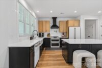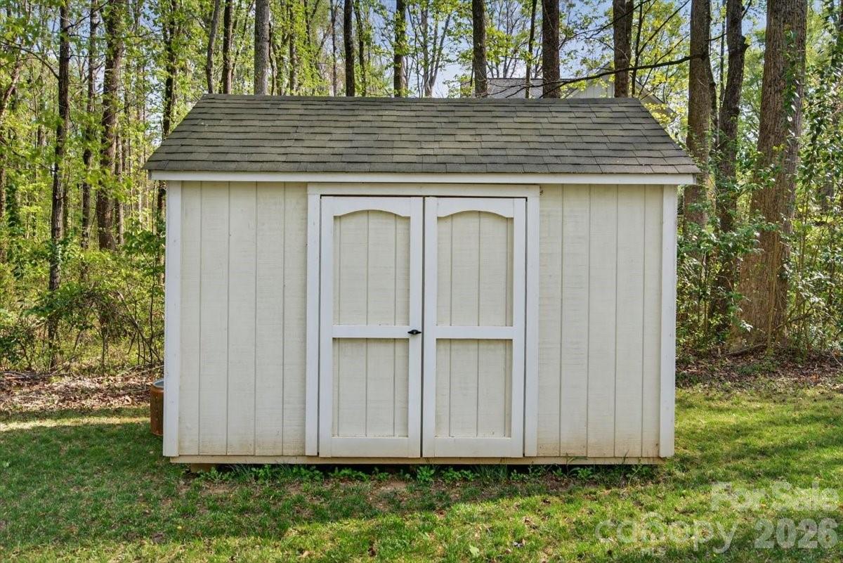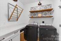 Enjoy the serenity of nearly half an acre and fall in love with this open, light-filled home. The spacious living and dining area showcases a vaulted shiplap ceiling and a sleek linear electric fireplace, creating a warm yet modern gathering space. The standout kitchen features quartz countertops, a herringbone subway tile backsplash, two-tone soft-close cabinetry, and stunning GE Café white appliances with champagne bronze pulls. The Primary Retreat is a true escape, complete with a geometric accent wall, dual closets, and a luxurious ensuite bath. Two additional bedrooms share a beautifully appointed hall bath. The bedroom just off the living area offers double-door entry and eye-catching herringbone wood detailing—perfect for a home office, den, or flex space. A functional and inviting laundry room includes cabinetry, a folding shelf, and upgraded Maytag washer and dryer. Thoughtful upgrades continue with a whole-house water softener system and an under-counter reverse osmosis system featuring a dedicated spout for alkaline drinking water. Luxury vinyl plank flooring runs throughout, and a site-built storage shed matches the home’s design. This property truly checks every box—style, comfort, and quality in every detail.