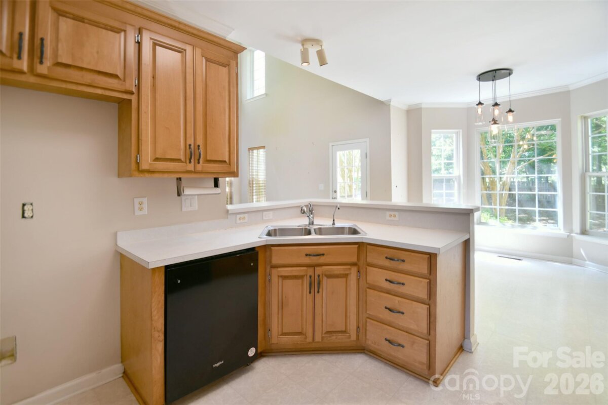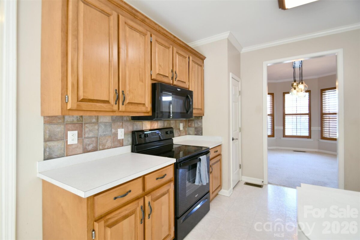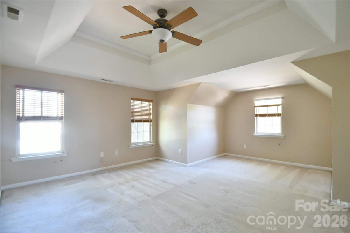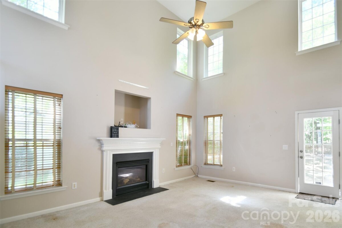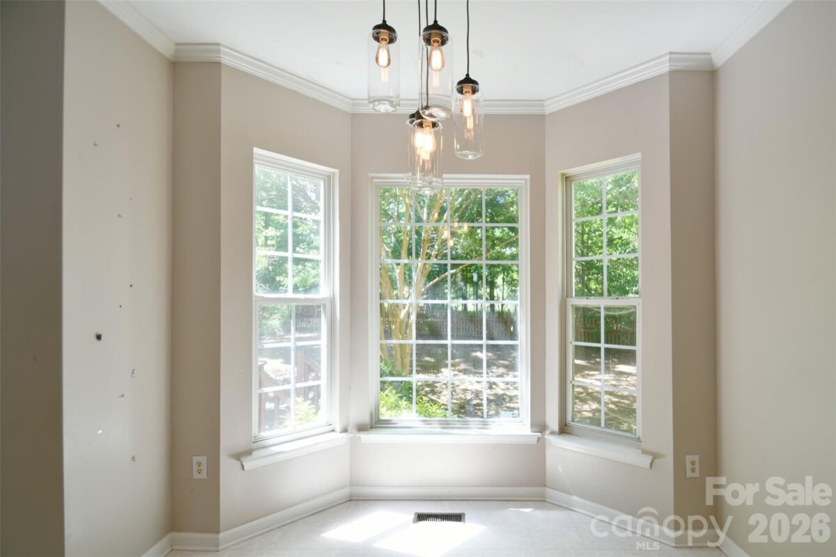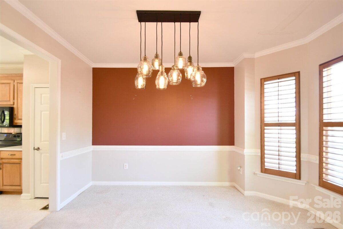 Welcome to a fantastic opportunity in a highly desirable neighborhood! This charming brick-front home features beautiful bay windows and a spacious, fully fenced backyard. Inside, the two-story great room brings in abundant natural light, includes a fireplace and opens up to the kitchen and breakfast area. The main level also features a dining room, half bath and a laundry/utility room just off the garage. Upstairs, the primary bedroom includes a tray ceiling, a sitting or office nook, and an ensuite bathroom with a garden tub. Plantation shutters are installed throughout the home. Conveniently located with easy access to I-485, the University area, and Concord Mills for shopping, dining, and entertainment. The home has so much potential, and the seller is providing $10,000 in concessions for flooring or repairs, giving you the flexibility to make updates right away!