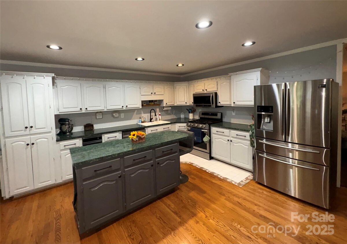 Welcome Home! Beautiful 3-bedroom, 2-bath split-level home on a private 1.33-acre lot in Dallas, NC. Step inside to an inviting foyer with a split staircase leading to spacious main living areas. Enjoy an open-concept design with a large living room, dining area, ceiling fans, and wood flooring. The kitchen features breakfast area, stainless-steel appliances, a large island, built-in desk, bay window, and an adjacent sunroom/office. The primary suite offers two walk-in closets, a sitting area, and an en-suite bath with double vanity. The lower level includes a large versatile room with a cozy fireplace, an additional bedroom, office, storage and laundry area, tankless water heater, water filtration system and access to the attached 2-car garage. Relax or entertain on the large deck overlooking a private, park-like yard with mature trees, a greenhouse, and a 1,500+ sq. ft. detached garage/workshop. Don’t miss the opportunity to make this beautiful property your next home!