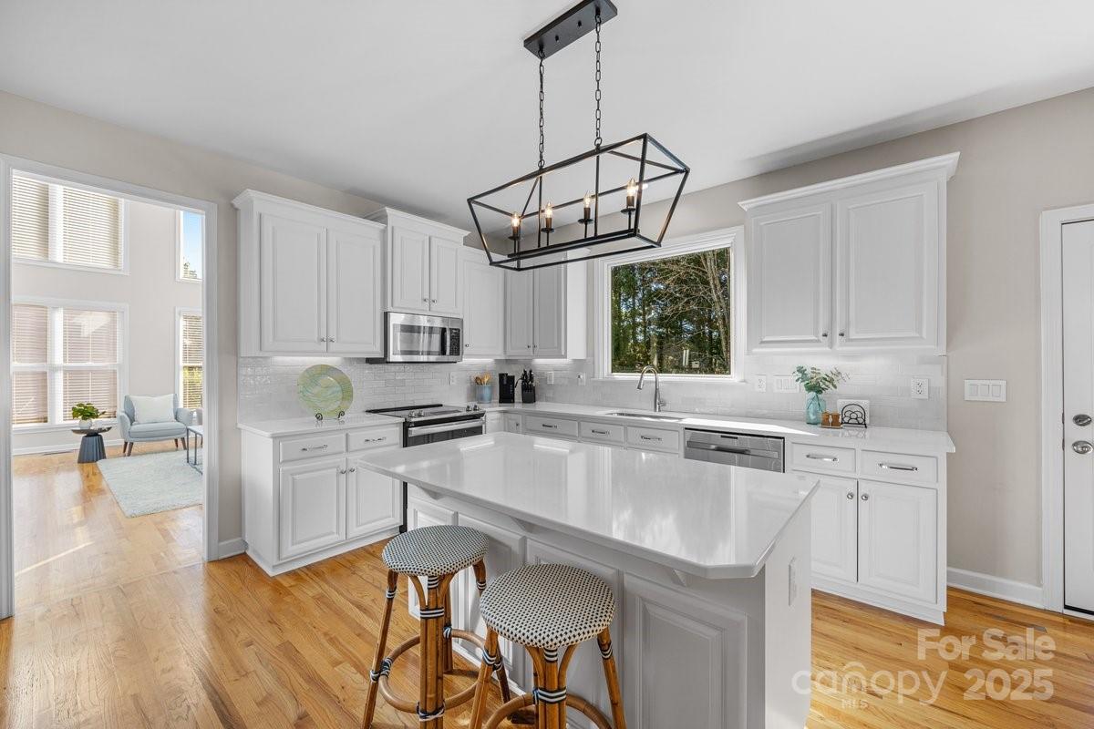 Welcome to this immaculate brick home, beautifully updated and move-in ready. Step inside to find hardwood floors throughout and fresh neutral paint that complements every room. The breathtaking two-story great room impresses with coffered ceilings and floor-to-ceiling windows that fill the space with natural light. The stunning, updated kitchen features a large island perfect for gathering, a walk-in pantry, and opens seamlessly into the breakfast nook and cozy family room. The traditional floor plan also offers a formal dining room, living room, and convenient main-level laundry room. Upstairs, you’ll find four spacious bedrooms, including a gorgeous primary suite with a beautifully updated bathroom, walk-in closet, and Anderson picture windows overlooking the expansive backyard. The second bedroom includes an en suite bath, while two additional bedrooms share another full bathroom. Step outside onto the deck overlooking the flat, fully fenced backyard — ideal for play, pets, and outdoor entertaining.The neighborhood offers exceptional amenities and a convenient location just minutes from restaurants, grocery stores, shops, and fitness centers. Located within highly sought-after school district. Don’t miss this rare opportunity to own a stunning home that truly has it all!