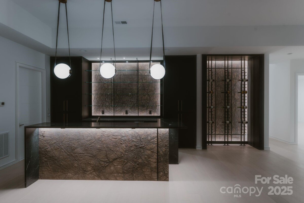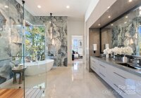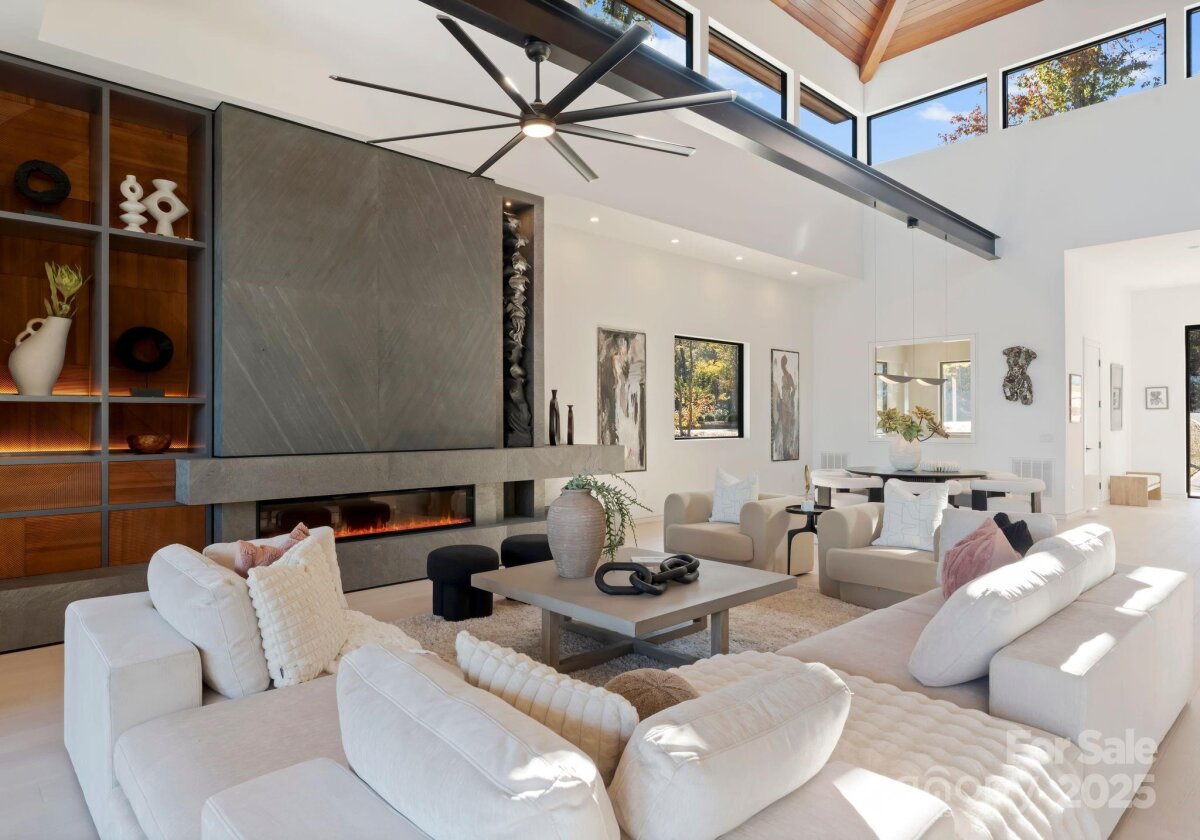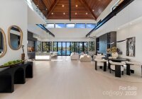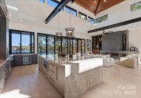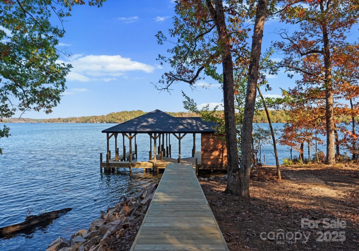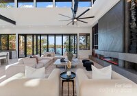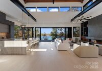 Exquisite Waterfront Masterpiece on Lake Tillery – Discover an architectural work of art on the shores of Lake Tillery. Designed and built by Artistic Contractors, one of Charlotte’s premier design/build firms, this 7,940 sq ft modern lakefront retreat embodies warmth, innovation, and serenity. Set on nearly an acre of gently sloping land beneath mature trees, this property blends natural materials with bold geometry to create one of the most extraordinary residences in the Carolinas. Homes in the sought-after Edgewater community have consistently sold above $600 per sq ft since 2022, with a neighboring property closing in August 2025 at $672 per sq ft. Priced at only ~$660 per sq ft, this fully loaded lakefront showpiece offers unmatched design and luxury—an exceptional value for a home of this caliber. Step through the monumental 10’ x 10’ pivot door and into the breathtaking 1,400 sq ft atrium great room—a soaring, light-filled space combining living, kitchen, and dining under a 28-foot pyramidal clerestory ceiling clad in rich imported Peruvian Cumaru wood. Supported by striking exposed steel beams, the atrium provides a grand opening through a 24-foot folding glass wall to covered terraces. This room stands among the largest and most architecturally striking private spaces in the Carolinas. Throughout the 6-bedroom, 5.2-bath residence, form and function meet effortlessly. The chef’s kitchen features a 10’ x 6’ waterfall island, professional Monogram appliances, Miele induction cooktop, and concealed scullery. The great room’s Dimplex 74†linear fireplace anchors a dramatic wall of book-matched soft stone and carved wood panels. The floating mono-stringer staircase with glass railing and 3†white oak treads rises like a sculpture. The primary suite is a sanctuary of peace with floor-to-ceiling glass windows offering panoramic lake views. The spa-inspired bath features a freestanding tub, 24†rain shower over a Cumaru deck floor, and spacious his-and-hers closets with custom cabinetry and ambient LED lighting. Outdoor living exceeds expectation: over 1,700 sq ft of covered decks and terraces finished with Cumaru ceilings and imported Indonesian white Palimanan Limestone floors. Glass railings, ceiling fans, built-in speakers, and motorized screens differentiate the outdoor living from any competition. A resort-style saltwater infinity pool and spa clad in Indonesian Sukabumi stone glows in deep lagoon hues, surrounded by matching stone planters and Palimanan limestone decking. The outdoor kitchen includes a Coyote 42†grill, Cumaru hood, sink, and cabinetry for effortless entertaining. The property’s private 1,200 sq ft dock offers two covered boat slips and a covered entertainment area overlooking the long-range views of Lake Tillery. Additional features include all-aluminum thermally broken windows and doors with Low-E argon-filled glass, open-cell foam insulation, tankless hot water, smart surveillance and lighting systems, 200+ LED recessed can lights, and an EV-ready three-car garage. An underground irrigation system pumps directly from the lake to keep the landscape lush year-round. Every element—wood, steel, stone, and glass—was selected for beauty, durability, and emotional resonance. This is not just a house; it’s a sanctuary designed to inspire joy, peace, and creativity. Experience the art of living at 109 Tidewater Court—an extraordinary waterfront retreat where design and nature meet.