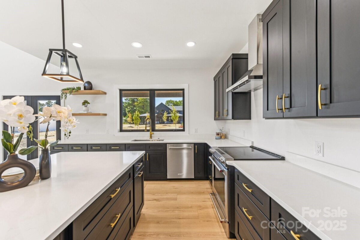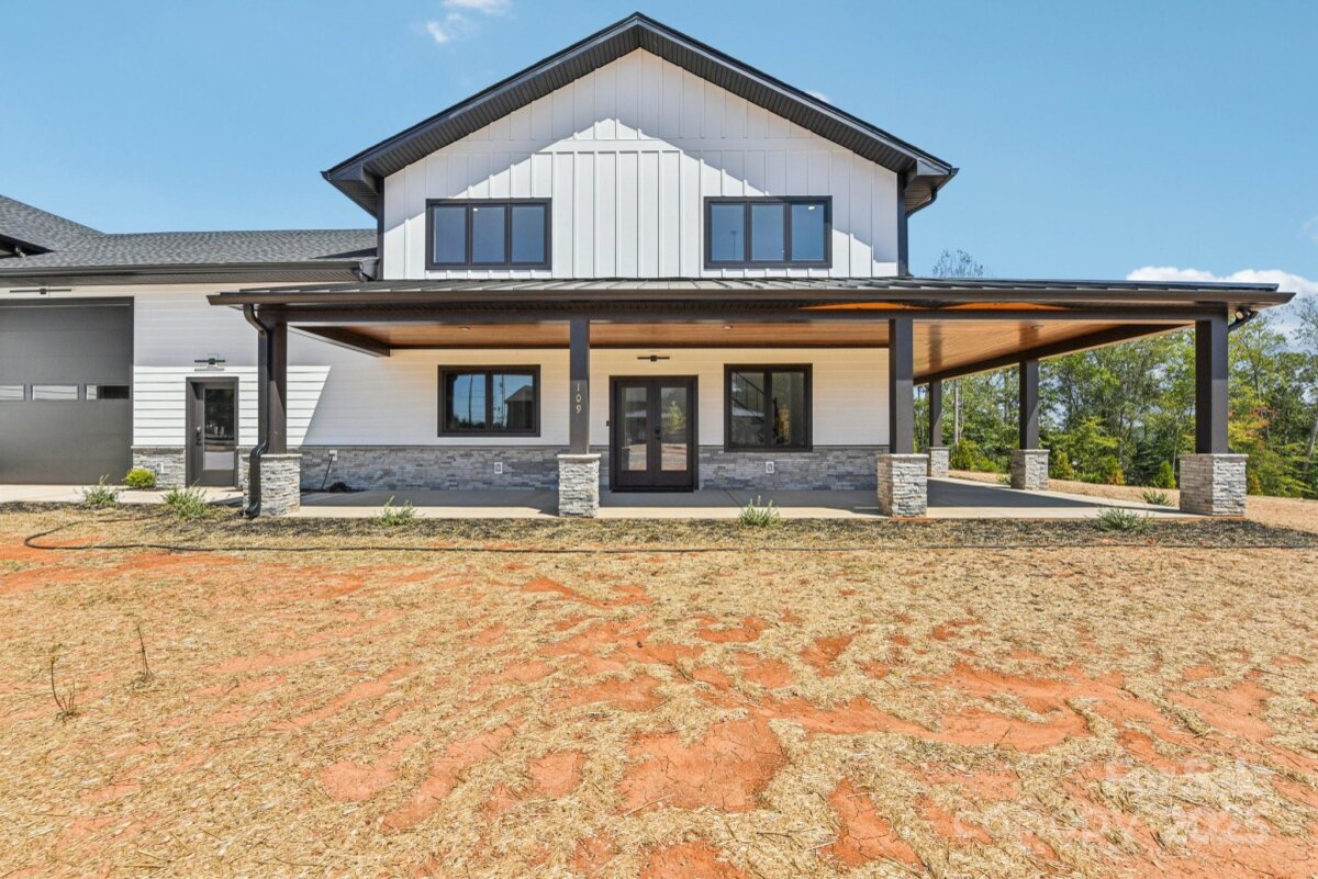Welcome to Honeyman Estates, an exclusive gated enclave featuring just five luxury barndominiums—a rare opportunity to own one of the most innovative and desirable styles of homes in today’s market. More than just a residence, this property represents a new way of living: blending modern luxury with true practicality, designed for those whose lifestyle is as expansive as their vision. The garage is a masterpiece of its own, designed for more than just storage. With climate-controlled comfort, soaring 16 to 18-foot ceiling heights, epoxy-coated floors, and a powerful 400-amp service panel, this space is fully prepared to house your car collection, provide room for RVs and boats or even your very own indoor pickleball court! Spray foam insulation ensures year-round efficiency, while the impressive volume of the space allows for nearly limitless possibilities. This property offers not only the space but also the freedom to fully embrace your passions. From family living to hobby space, it redefines what home can mean. Step inside to find a stunning great room crowned by soaring vaulted ceilings that draw the eye upward and create an immediate sense of openness and grandeur. Vertical modern cable railing adds a sleek architectural touch, blending contemporary design with the rustic elegance of the barndominium aesthetic. The chef’s kitchen is a true centerpiece, featuring 42†shaker cabinets, quartz countertops, floating shelves, and premium appliances, crafted for both everyday meals and grand entertaining. Luxury vinyl plank flooring flows seamlessly throughout the home, leading to a striking 72†linear fireplace that anchors the living space with warmth and modern sophistication. Outside, the home’s timeless board-and-batten fiber cement siding pairs perfectly with architectural roofing, accented by standing seam metal for the covered porches, to create an aesthetic that is both classic and forward-thinking. Every detail has been considered, from the materials to the craftsmanship, resulting in a property that delivers enduring value and style. This barndominium is not just a home, it is a statement. A practical yet luxurious way of life that merges passion, functionality, and elegance under one roof. Honeyman Estates offers something incredibly rare: exclusivity, sophistication, and space to live life without compromise.