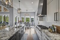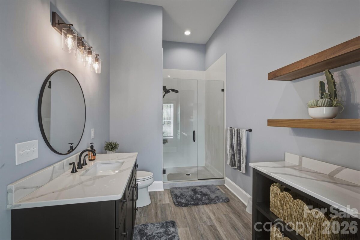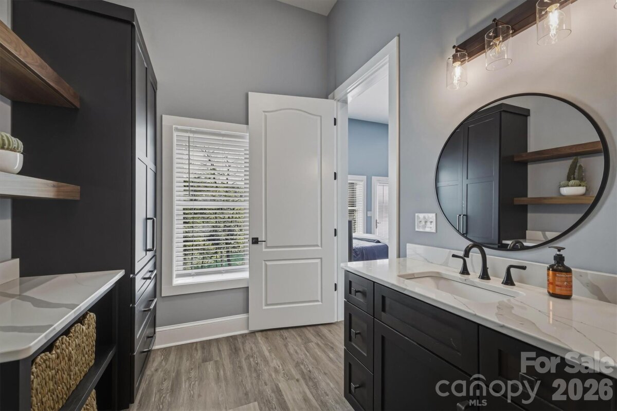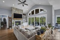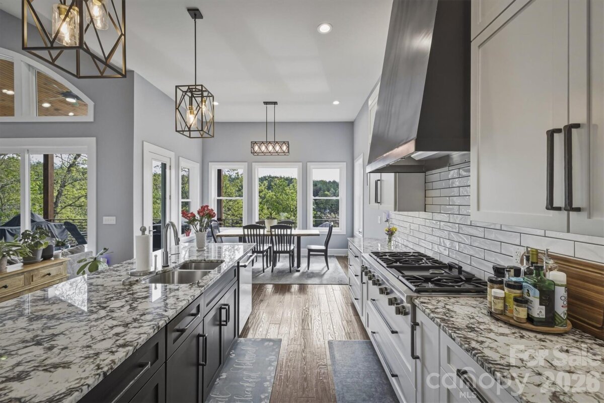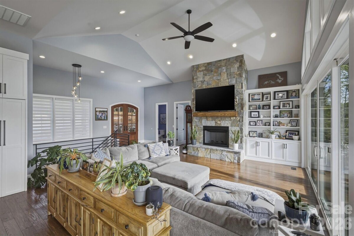 Without a doubt, one of Lake James’ finest and most impeccably crafted custom homes, showcasing an exceptional blend of luxury and design. Situated on a 1.15-acre waterfront lot, the property features a gentle grade with effortless access to approximately 430 feet of pristine shoreline, complete with a private covered dock, golf cart path, waterside gazebo, and firepit area. Upon entry, you’re welcomed by a stunning open-concept design beneath soaring 16-foot ceilings, anchored by a striking stone fireplace and expansive windows that perfectly frame the breathtaking water views. The main level offers a thoughtfully designed split-bedroom floor plan, featuring two primary-style suites, each appointed with high-end ensuite baths and spacious walk-in closets. Designed to impress, the gourmet kitchen showcases beautifully crafted solid wood cabinetry, commercial-grade Thermador appliances, an oversized island, quartz countertops, an open dining area, a handcrafted iron hood, and a hidden butler’s pantry. The main level also includes a conveniently located powder room and a well-appointed laundry room just off the expansive three-car garage. The lower level continues to capture sweeping water views and is designed for both relaxation and entertaining, offering a spacious family room with wet bar and refrigerator, a theatre and game room, an additional bedroom, a children’s play nook, two flexible office spaces, ideal as fourth and fifth bedrooms, three additional bathrooms, a safe room, and a sub-basement. Notable features throughout the home include real hardwood flooring, a tankless water heater, Hardie siding, 9-foot garage doors, 12 to 16 foot ceilings, a water filtration system, custom iron cabinetry hardware and deck railings, a termite bait system, Generac generator, 2x6 framing, spray foam insulation, Superior Walls construction, leaf filtration system, professional landscaping, and a 400-amp electrical service. The exterior is equally impressive, ideally positioned within a quiet cul-de-sac and thoughtfully oriented toward the water. Enhancements include dock and landscape lighting, a golf cart path to the shoreline, and two covered Trex decks along with a spacious patio, creating the perfect setting to enjoy and entertain while making lasting Lake James memories. Broker Open House | April 18th | 11:30 AM to 12:30 PM
