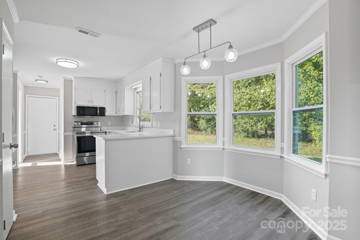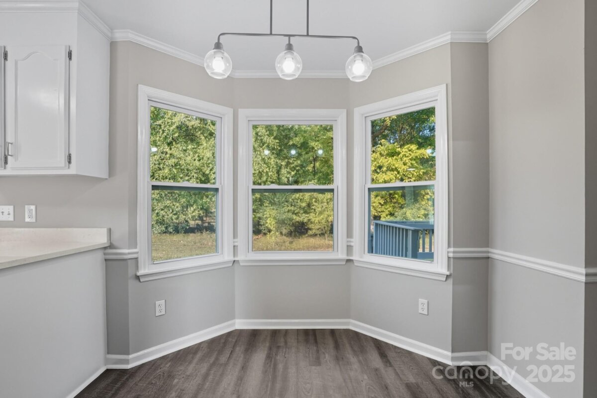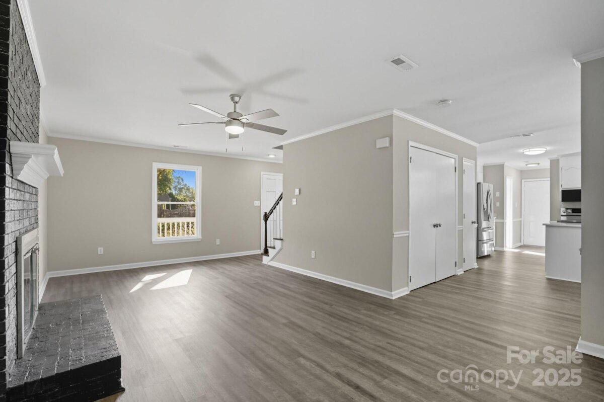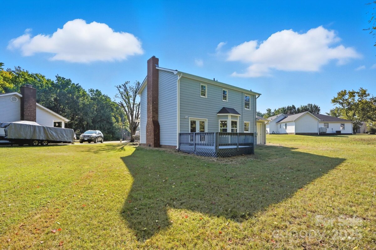 Stunning, Move-In Ready Colonial on a Quiet Cul-de-Sac! This beautifully updated two-story home offers the perfect blend of classic style and modern convenience, all situated on a quiet cul-de-sac lot that ensures low traffic and added privacy. Peace of mind comes standard with a BRAND-NEW ROOF AND GUTTERS! Step inside to discover a bright, open-concept floor plan featuring new LVP flooring and neutral paint throughout. The spacious living room is anchored by a charming fireplace with a modern dark brick surround, creating a cozy focal point. The main level also features a dedicated formal dining room, perfect for holiday gatherings or conversion to an ideal home office. The updated kitchen boasts desirable white shaker cabinetry, stainless steel appliances, and opens seamlessly to a sun-filled breakfast nook framed by beautiful bay windows. Upstairs, find comfortable bedrooms, including one with a dramatic vaulted ceiling, all finished with the same clean, contemporary aesthetic. The main bath features a dual-sink vanity with ample storage. Outside, enjoy the classic covered front porch or retreat to the large back deck overlooking a generous, private, grassy yard—perfect for entertaining, gardening, or play. Located in a tranquil, established area, this home provides a retreat without sacrificing quick access to local shops and amenities. Don't miss the opportunity to own this turnkey gem!